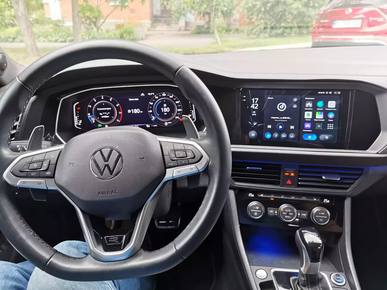 Плюс — чорна рамка під Jetta, обклеєна плівкою під колір панелі.
