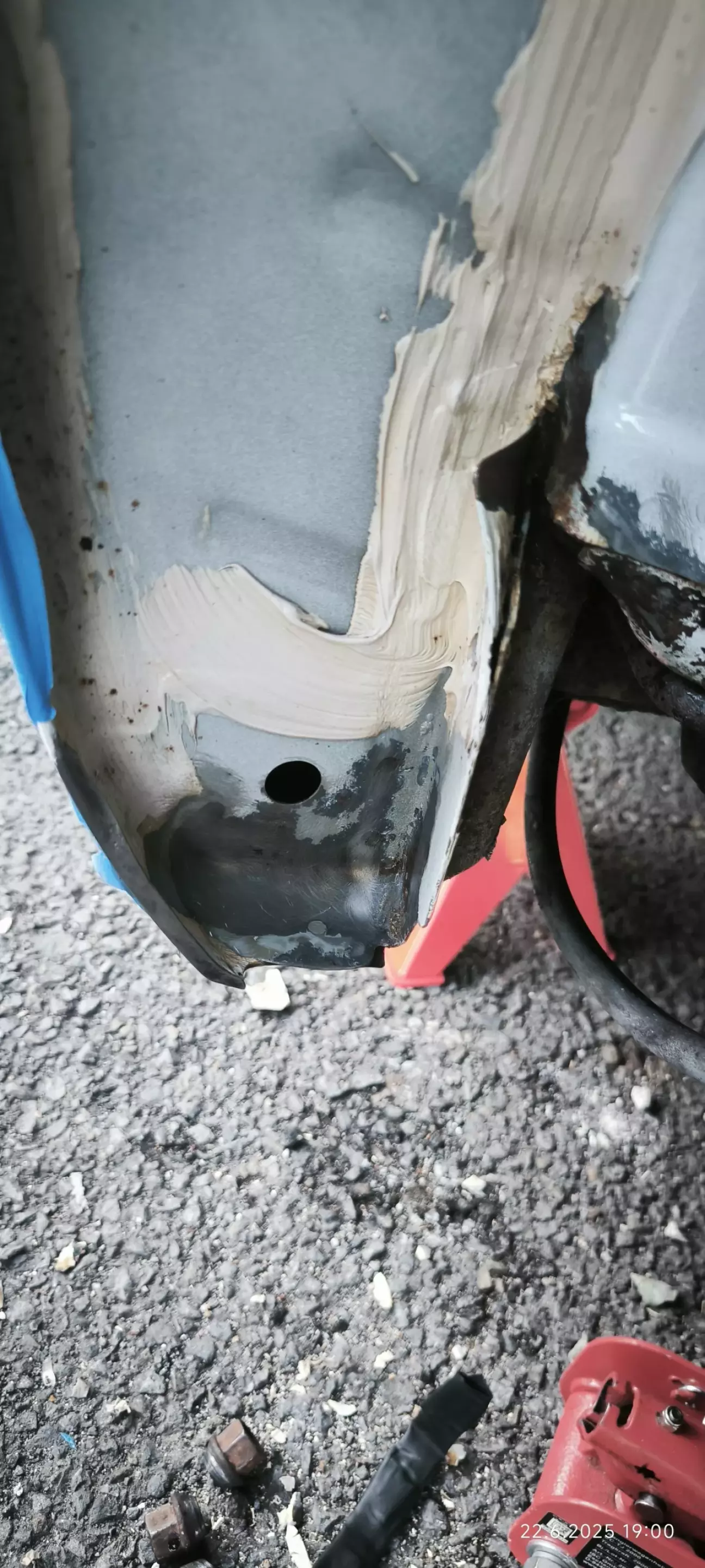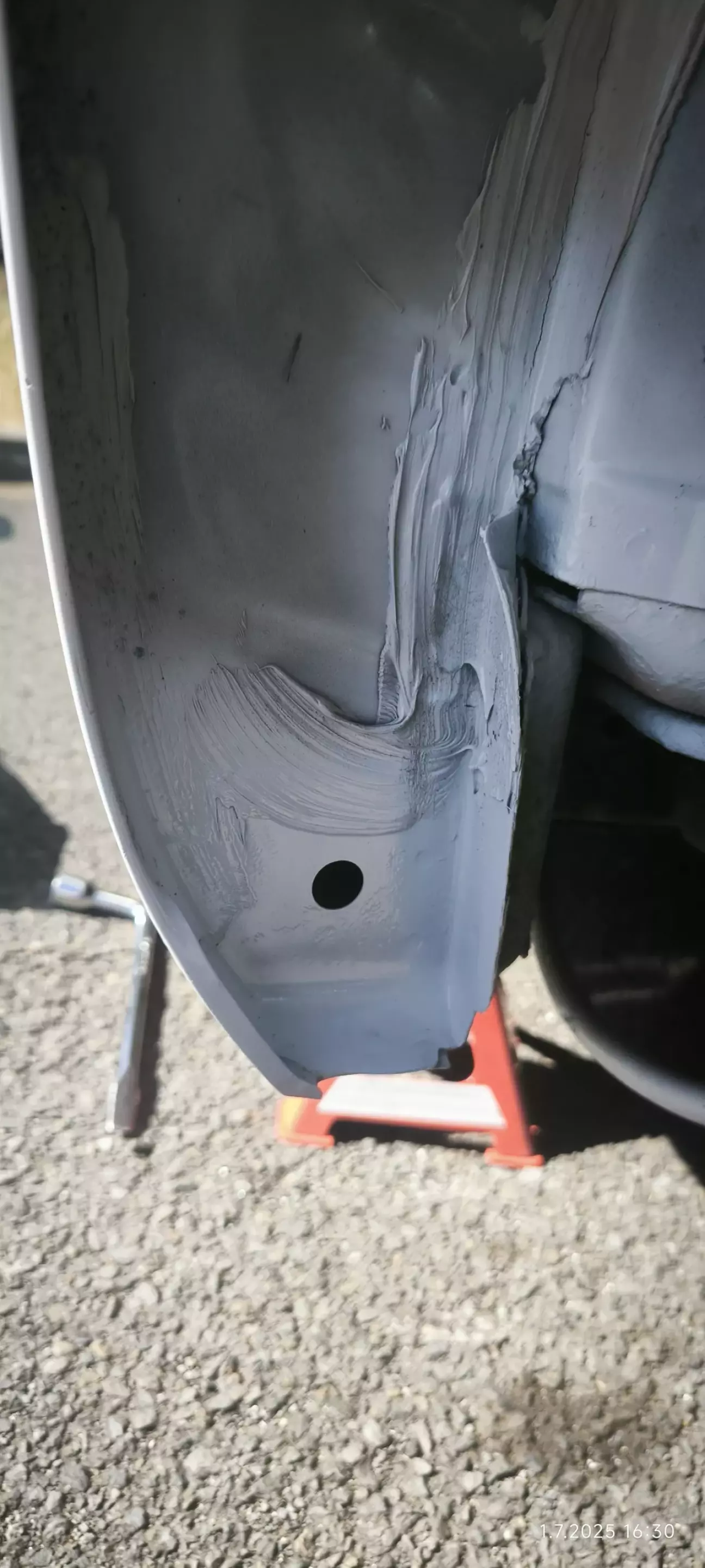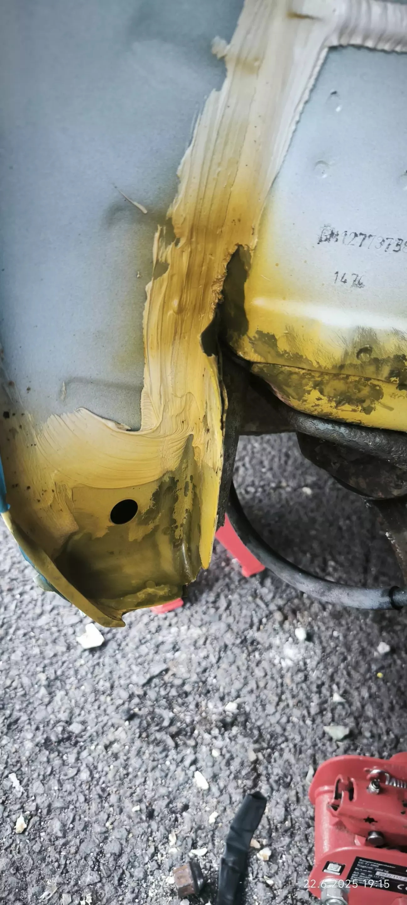 Знімаю шовний герметик, все чистою, витравлюю. Матусю, обезжирюю та грунтую кислотником потім акріл наповнювач та базова фарба