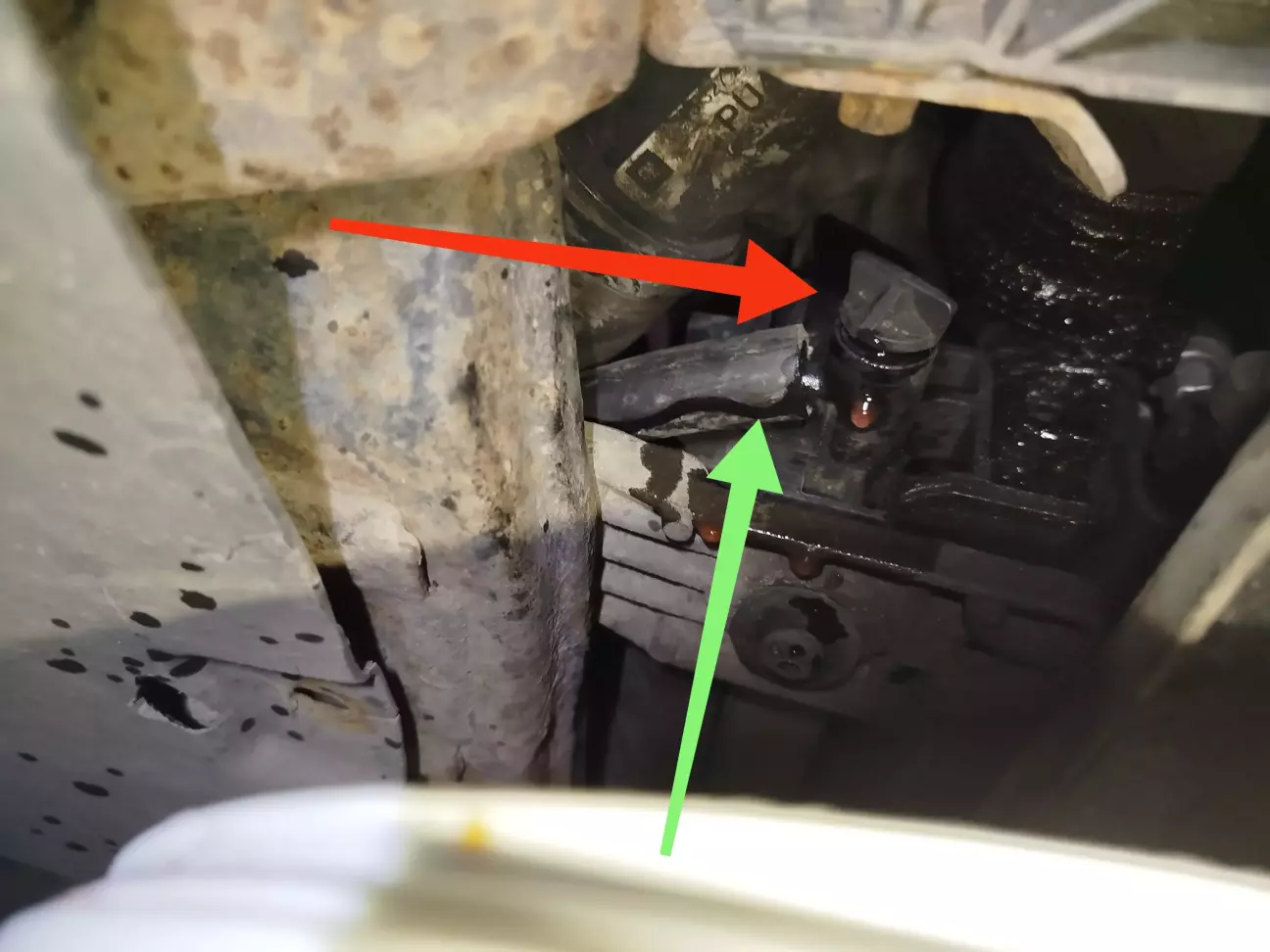 Зелена стрілка - гумовий шланг надітий на трубку, сидів не полотно (не було підходящого діаметру) та й хомута не мав бажання шукати тому додатково поставив під "краник" радіатора відро