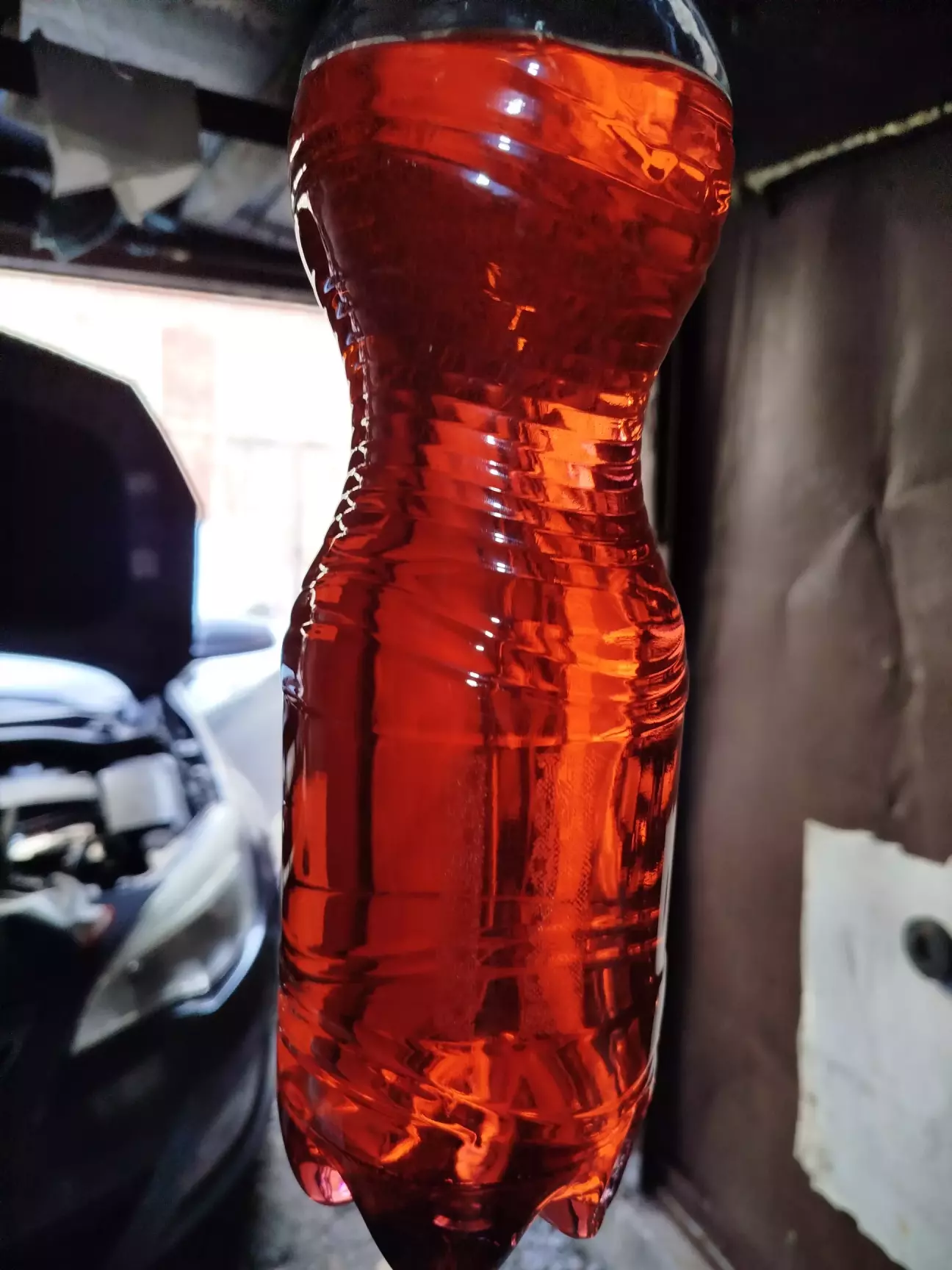 Розбавляв в 2 літровій пляшці, зручніше заливати. Порівняйте по фото злитий і свіжий 👀