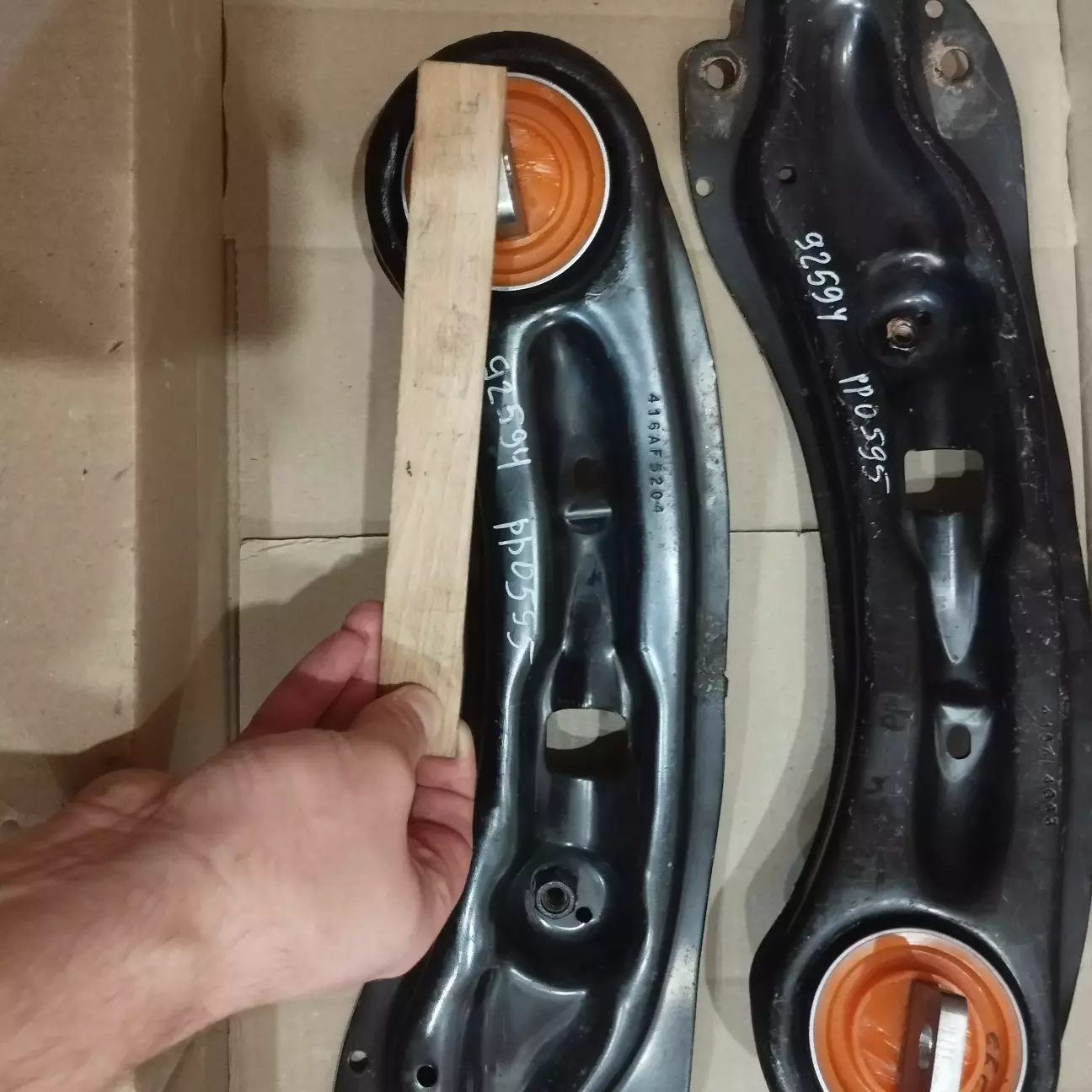 Ввиду того, что качество запчастей на додж полное дерьмо, я уже от безвыходности решил, все, что выйдет из строя в ходовке будем менять, наверное, на полиуретан. Чем я рискую? Да ничем, гарантия какая то на него год дается , стоит чуть даже дешевле резиновых деталей, которые ходят, мягко скажем, не так и долго. На данный момент уже в полиуретановой реконструкции от ПолиПро с Шостки лежат поперечные рычаги задней ходовой, и продольные с сайлентблоками "конфета". Были у меня эти детали после предыдущих ремонтов. Но в одном из продольных рычагов посадочное прослаблено. Пишу производителю полиуретана, сделают ли они мне под мою посадку сайлентблок. Сказали присылай рычаги, сделаем плюс 500 грн. сверху. Отправил. Получил все назад и смущает две вещи. Согласовывали положение сайлента для запресовки относительно рычага, а он стоит не так и в итоге установив его на авто он уже будет в напряжении, и будет рваться. И второе- запресовка не до упора болтшего диаметра по наружной обойме. Беру штангель, линейку и еду на яму мерять и сравнивать. Ох и не удобно это делать на машине.