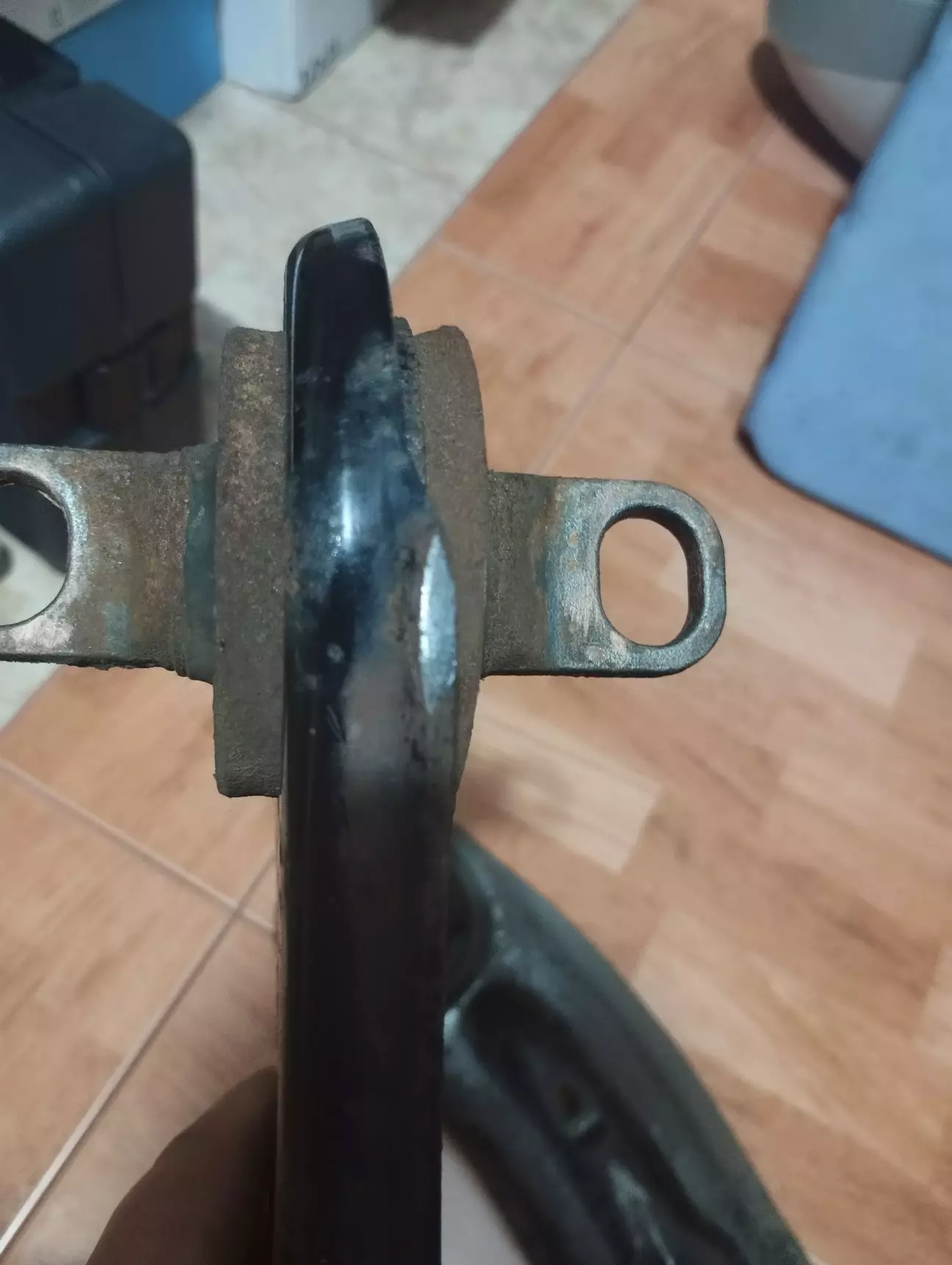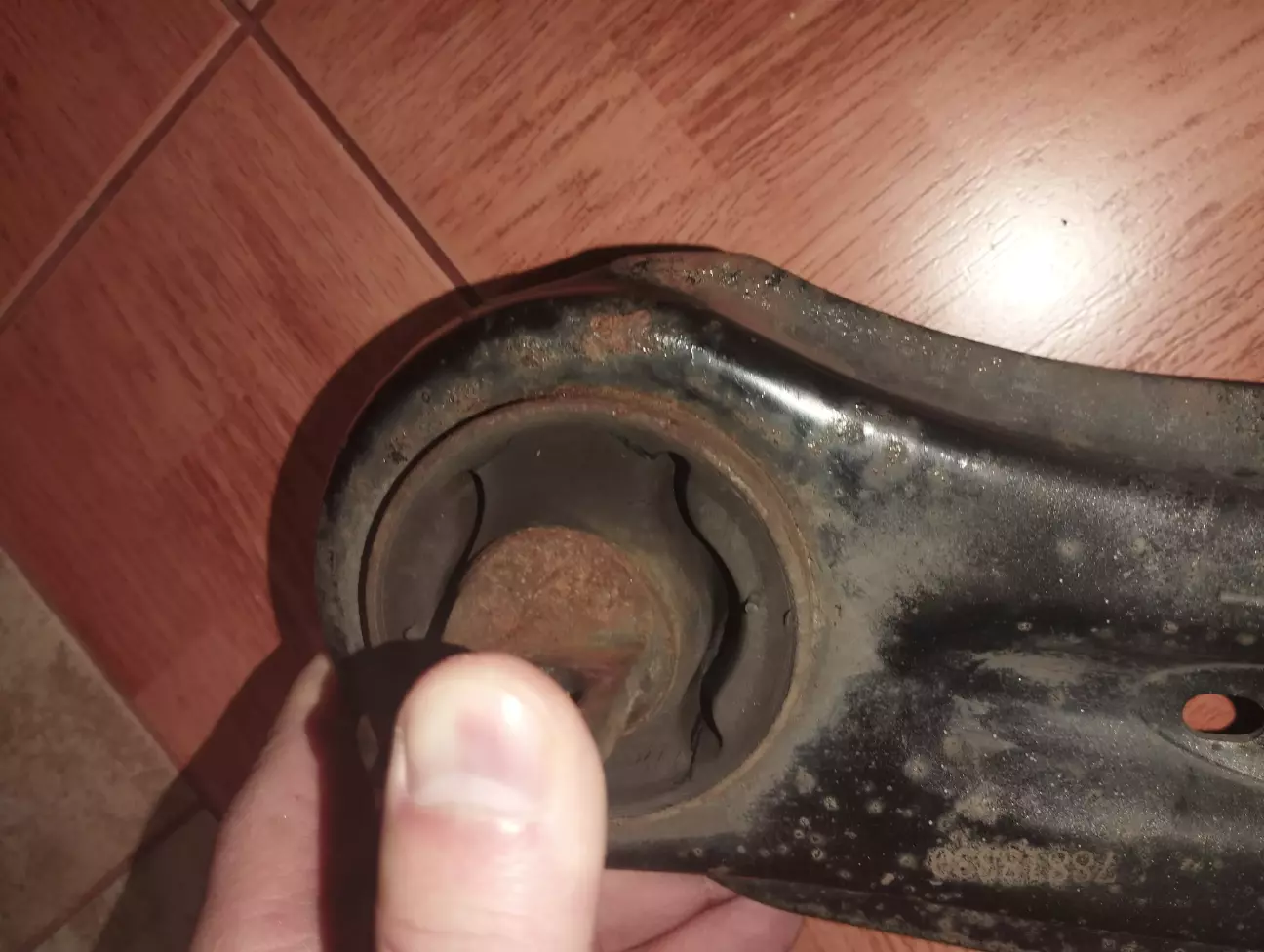 Мозг кипел, но выяснилось что все размеры идентичны, но высота наружной обоймы не такая как в стоке. Поэтому соосность отверстий относительно рычага совпадает, когда полиуретановый сайлент не запресован до упора. Согласовываю с производителем, что по их ошибке расположение сайлента в рычаге надо переделать. Отправляю за их счет размеченный маркером рычаги, и получаю назад перевтуленные как положенно сайлентблоки . Первыми на замену попросились рычаги с этими конфетами. Moog понадрывался, местами отслоения появляются по наружке, и рычаг из за этого уже бился о кузов, когда под горку задом сдаешь или ручник зажимаешь , о чем свидетельствует набитость металла на рычаге и звуки которые он издавал. А все потому, что жесткость сайлента уже утрачена из за надрывов и он держится на "соплях"