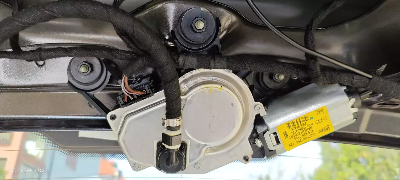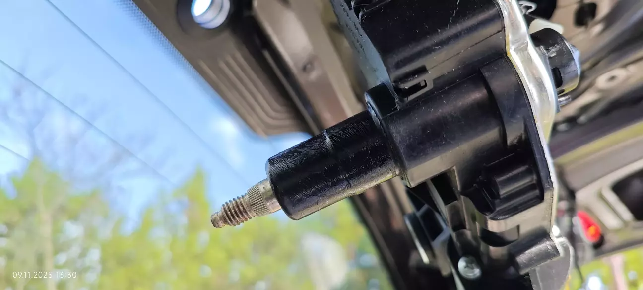 Ну и давай разбирать, снимать поводок и моторчик заднего очистителя. Трубку и штекер не трогал совсем, просто мотор вывесил на трубке.