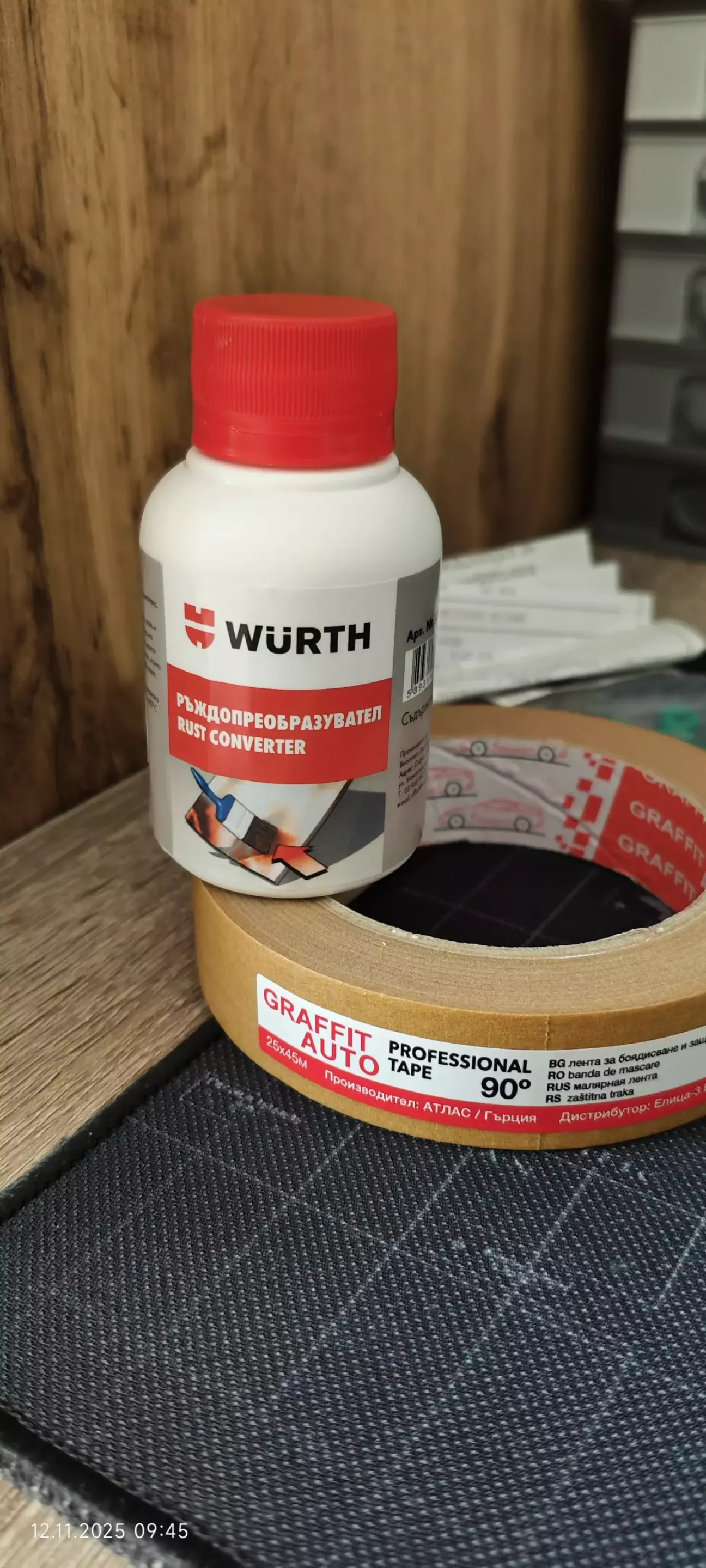 Ну и Коль влез туда, то решил обработать дверь изнутри. У меня была вот такая смесь, когда-то покупал ее, так что ею и обработал.