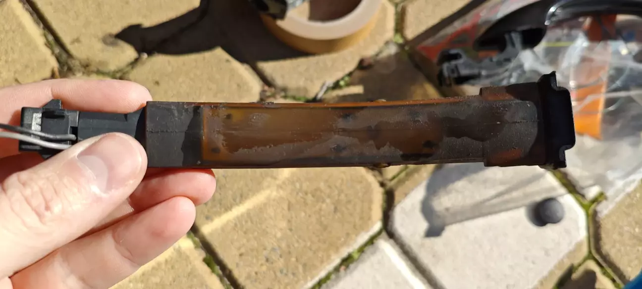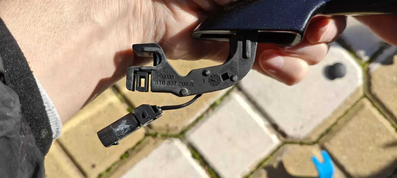 Ну и бонусом, заменил датчик в наружной ручке но уже на другой, водительской двери. Первую менял в средине лета, была ещё родная и вторая вот тоже приплыла. Тоже стояла ещё заводская, после демонтажа видны следы влаги, лопнувший корпус и окисления.