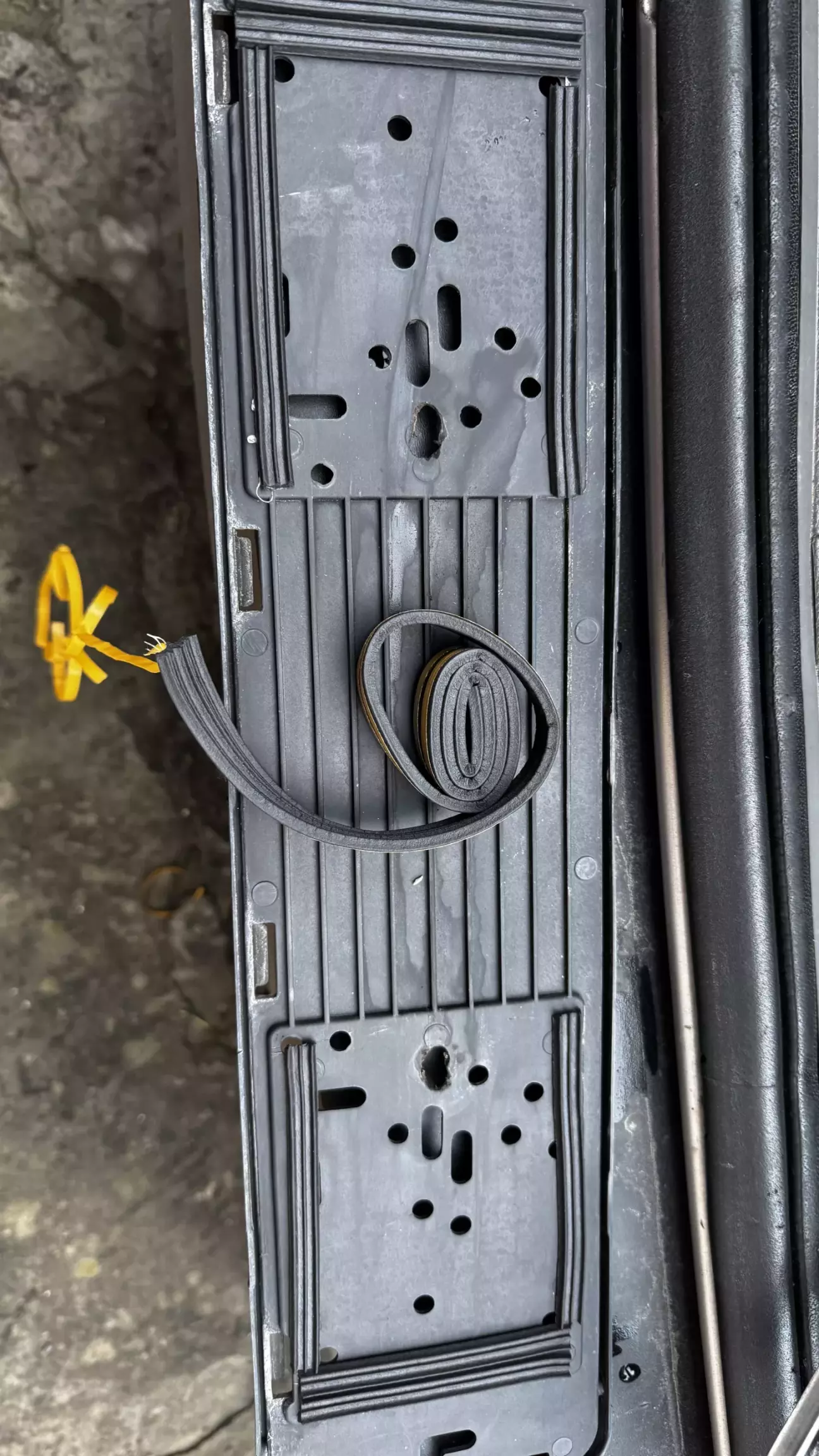 Ну і поки займався плафонами, помітив що рамка номерного знака тарабанить при закритті багажника, взяв залишки ущільнювача для дверей, проклеїв, зібрав все назад. Тепер все тихо )