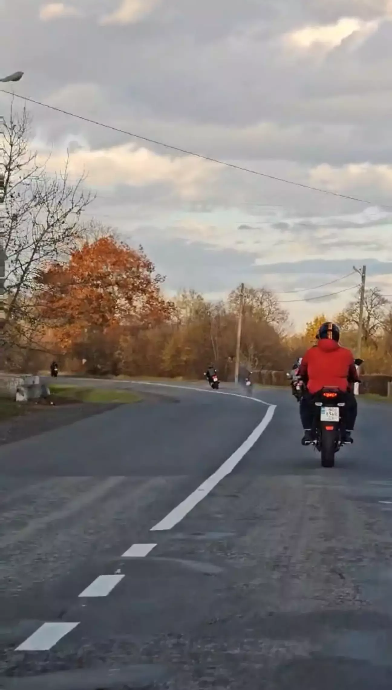 В Франківську зустріли банду смішних мотоциклістів,які насолоджувалися теплим осіннім днем і на кожному колі об’їзної ловили блуда:),потім знов зтягувались і обганяли нас.Ватажком у них був мімішний 🐝 Джміль,який показував,коли і кому обганяти,прикольна компашка,+ до карми і до настрою.