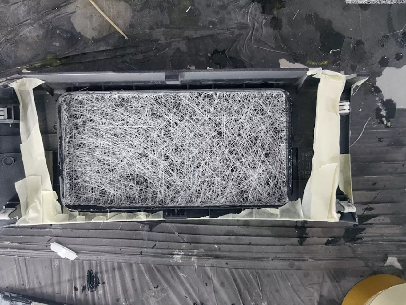 Для пробы решили затянуть 2 пластмаски с торпеды. Так как уже магнитола 1DIN была куплена то решили делать все по красивому. Да бы не было никаких зазоров решили все сделать с 0.