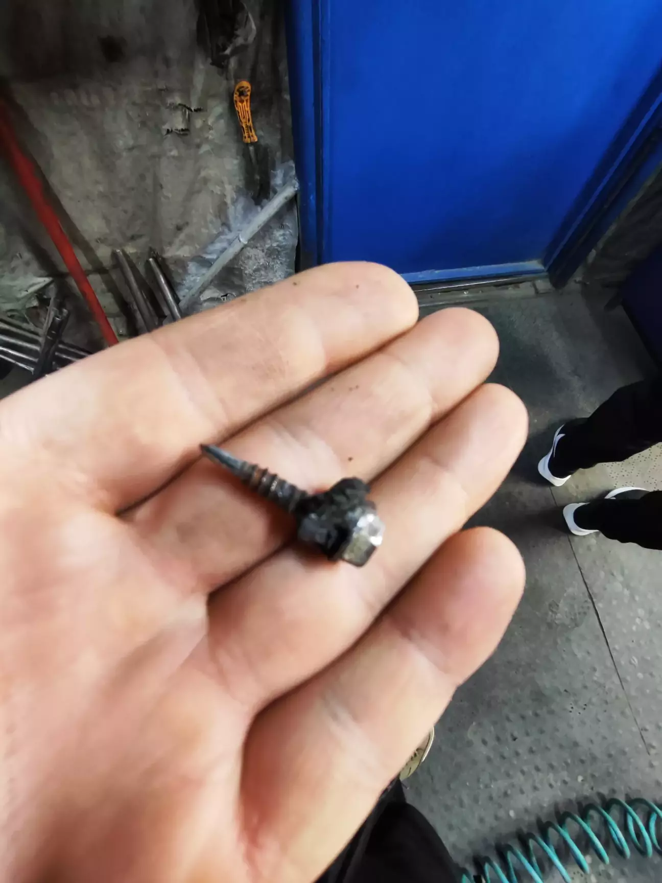 Заклеїли колесо і гоу додому. Після 1300 км вирішив зробити повторне балансування бо була вібрація, мене майстер попередив про це, причина нова резина. І бачимо ще одного винуватця пошкодження другого колеса ((( Одразу його заклеїли