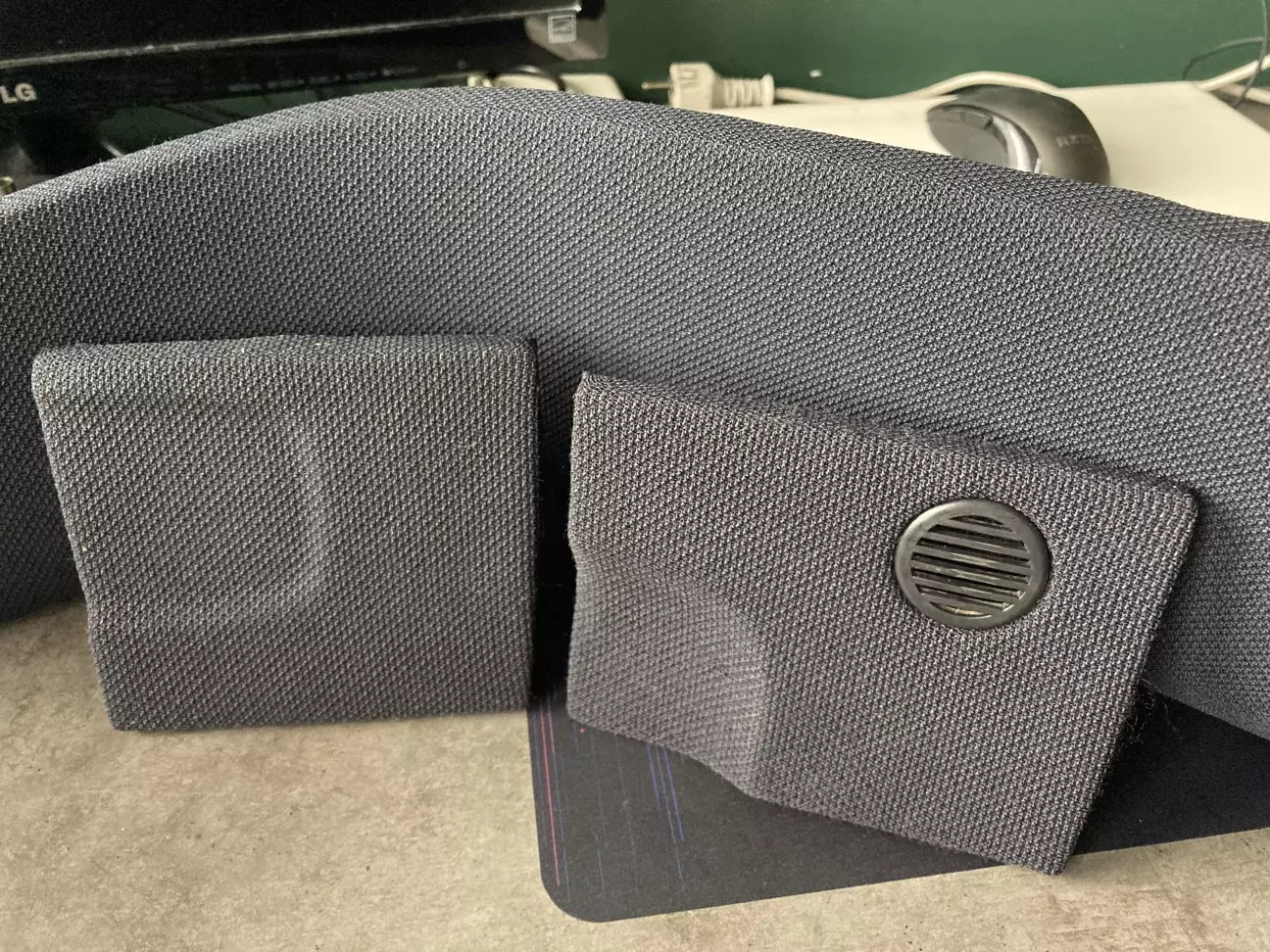 Для того чтобы снять консоль, надо сначала демонтировать боковые обшивки которые обтянуты тканью. За многие годы, до меня, их видимо никто не чистил, потому что выглядели они серыми, в то время как при снятии стало отчетливо видно что они должны быть синими.