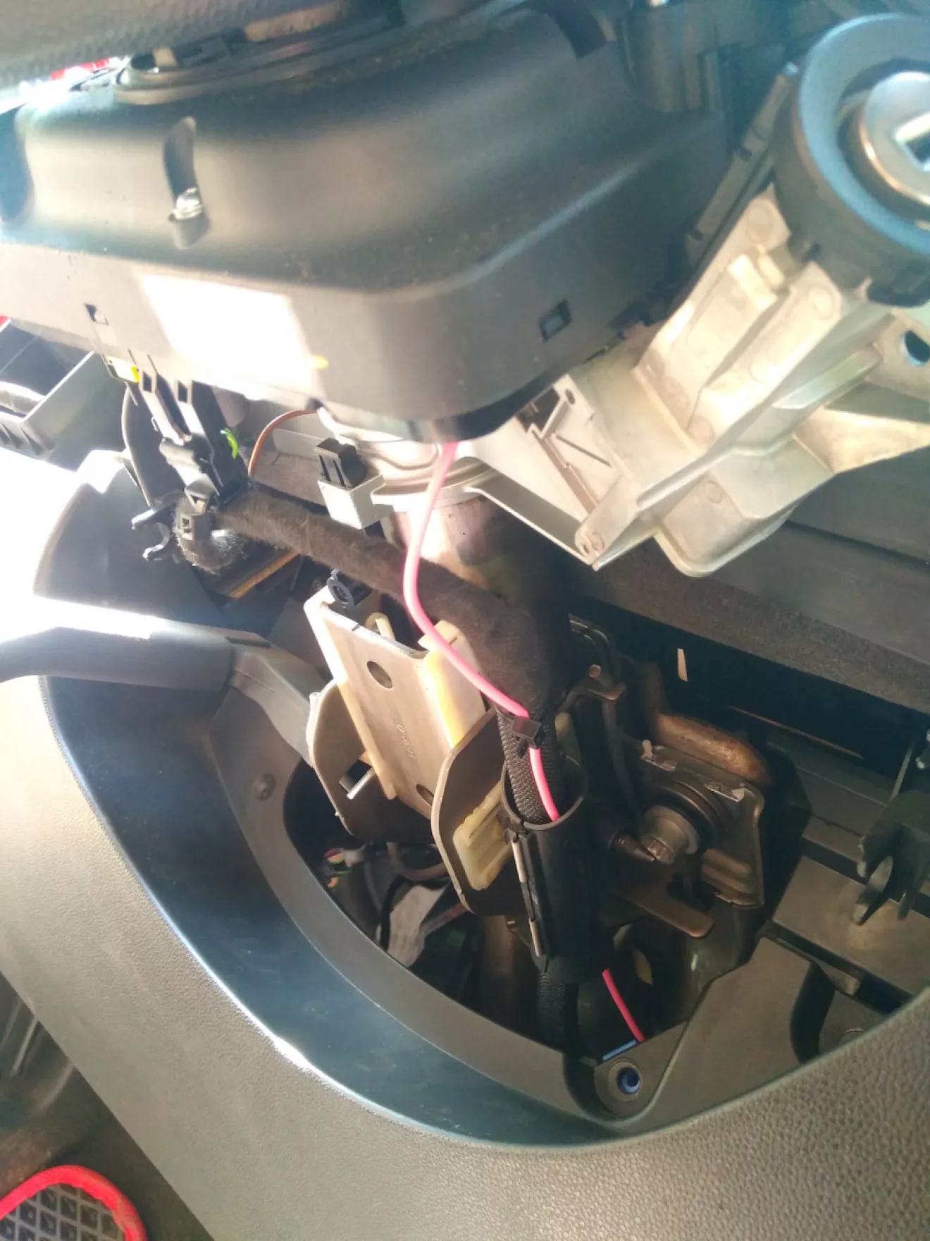 Подключили, + и — взяли оттуда, с замка взяли сигнал, на выход деле подключил платку DC-DC с 12В на 5В, в общем типа как юсб зарядка вышла…Подключил к ней блютуз модуль и провод для AUX тоже кинул под пластиком