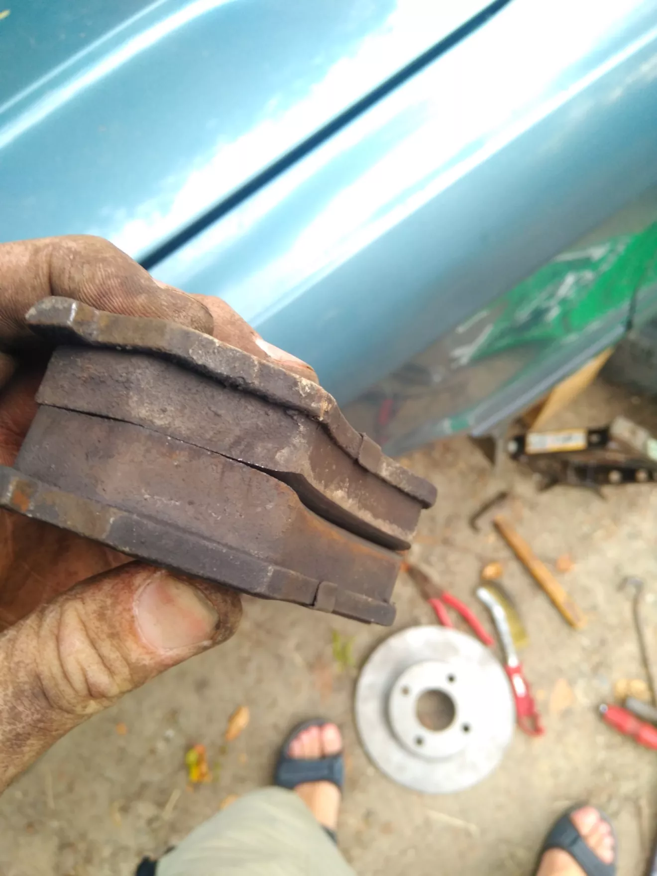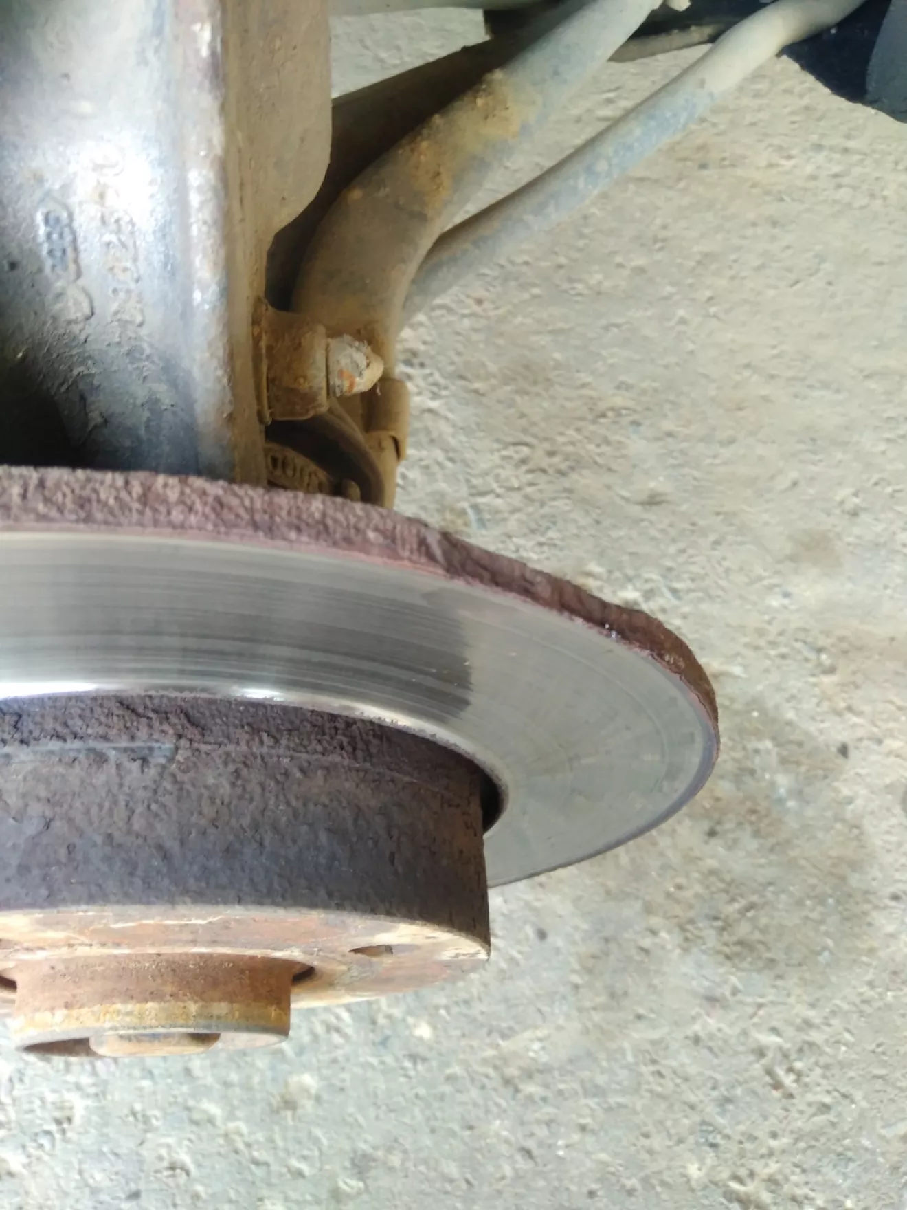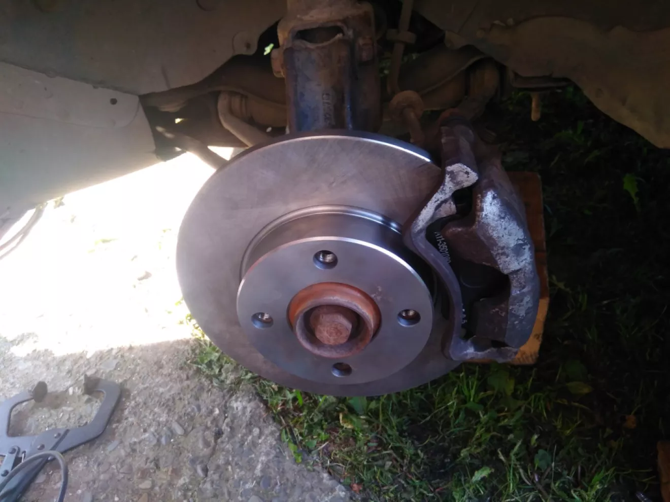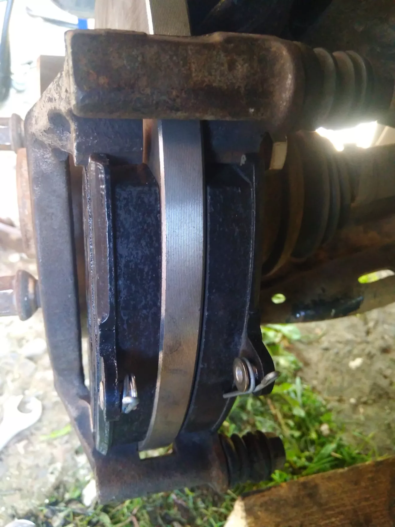И так, прикупил новые дисочки и новые колодки, начал менять. Вот что получилось