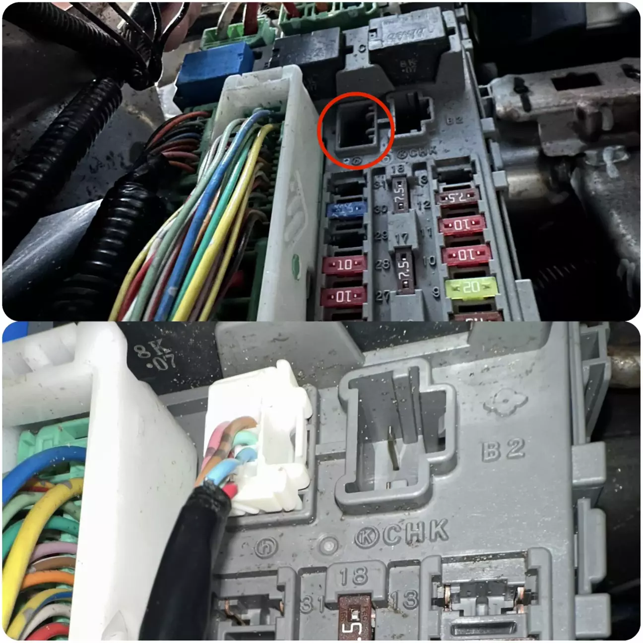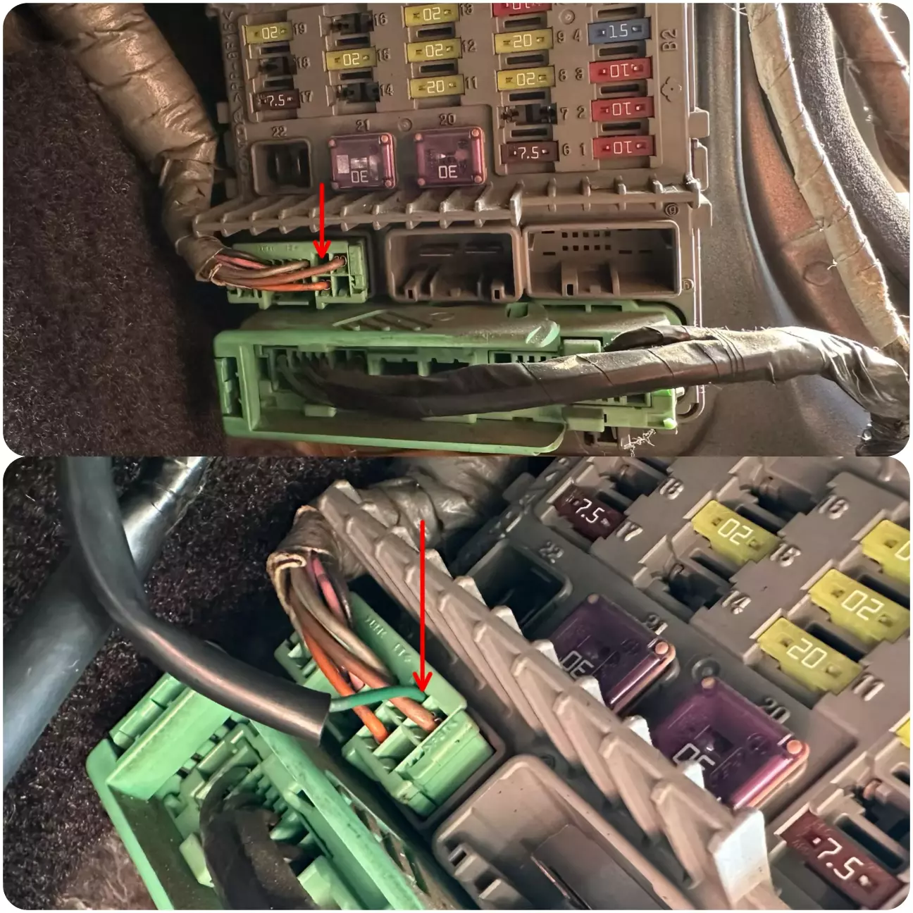 Фішка підключається в лівий блок запобіжників що у водія в ногах там їх 2 однакових за формою, наша ліва (помилитись неможливо) :