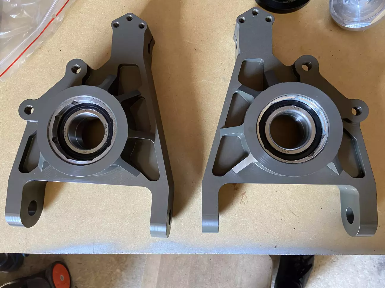 Посадка під підшипник виконана з натягом 2 сотки, щоб не пошкодити анодне покриття при запресовці, нагрів хаб до 200 градусів, та легко вставив підшипник і затягнув гайками, до речі гайки одна з лівою, друга з правою різьбою.
