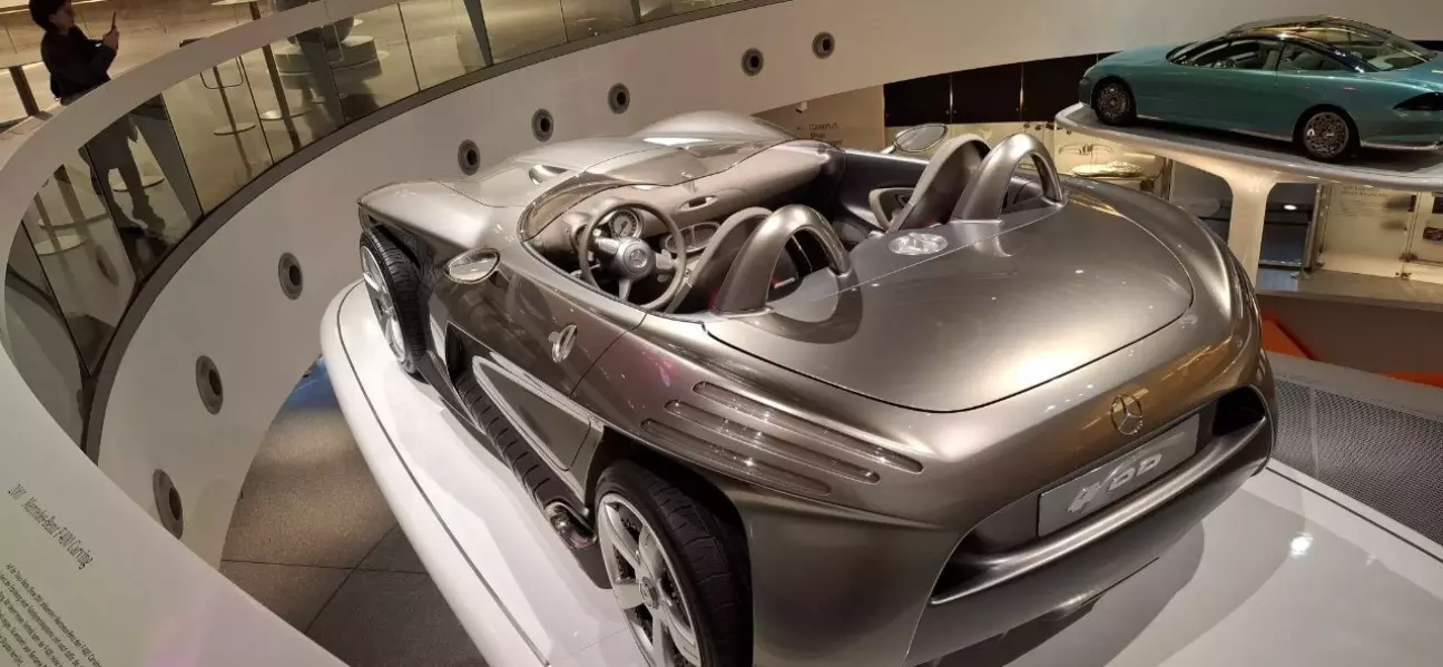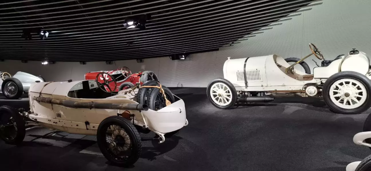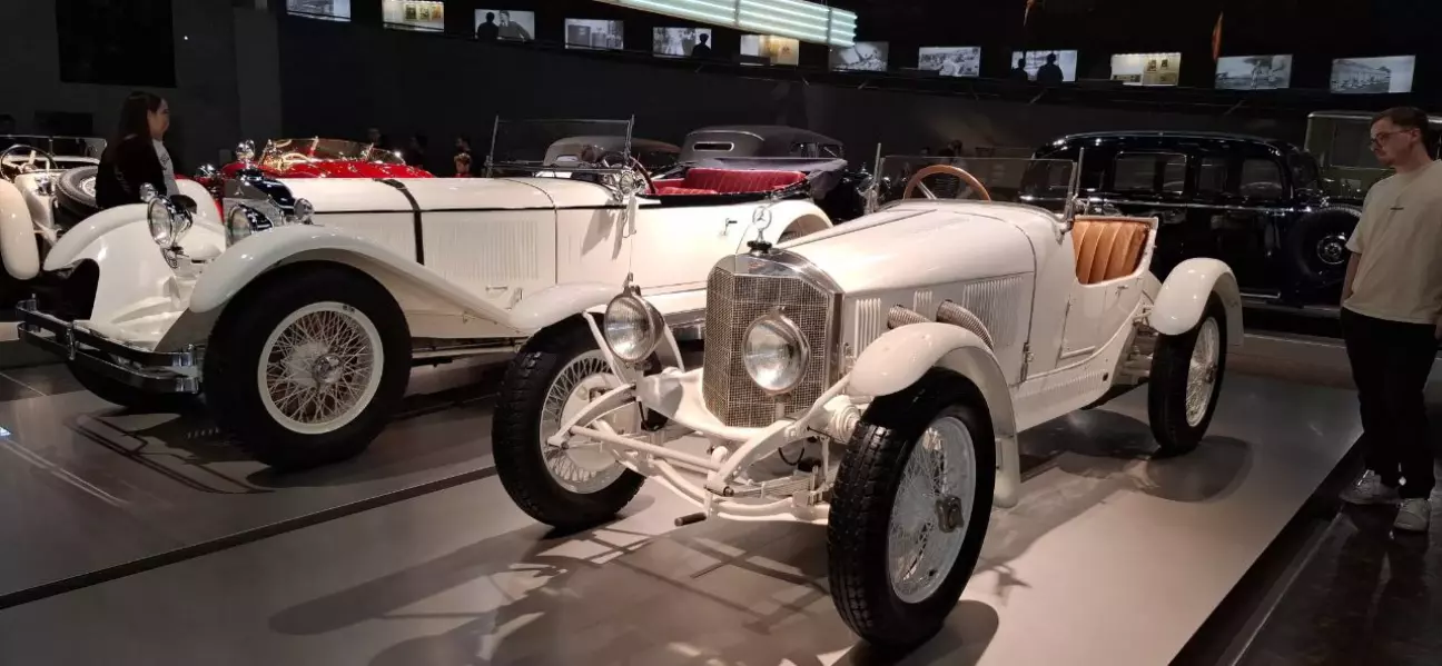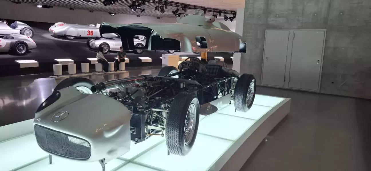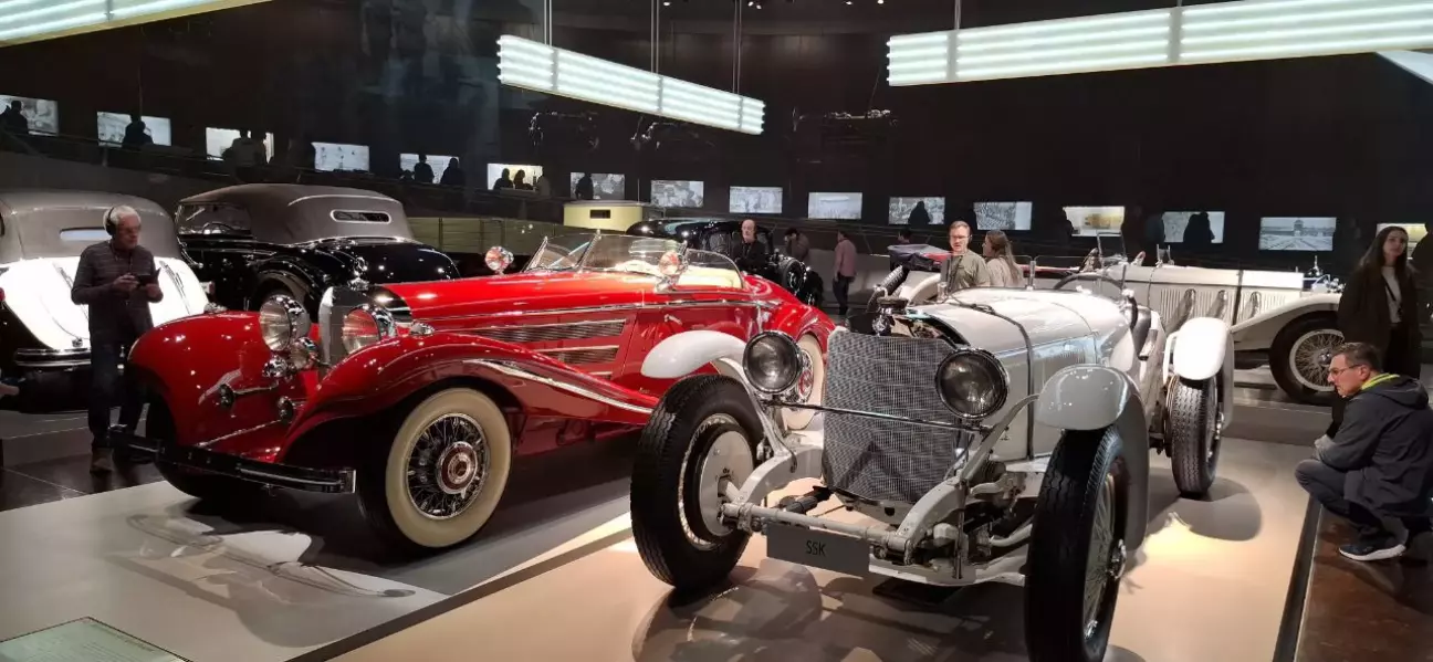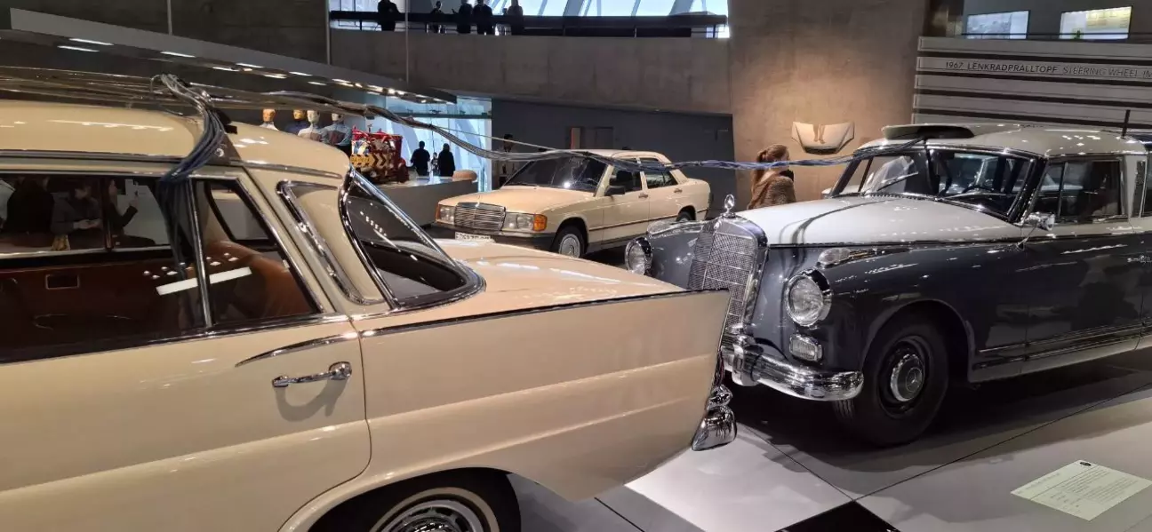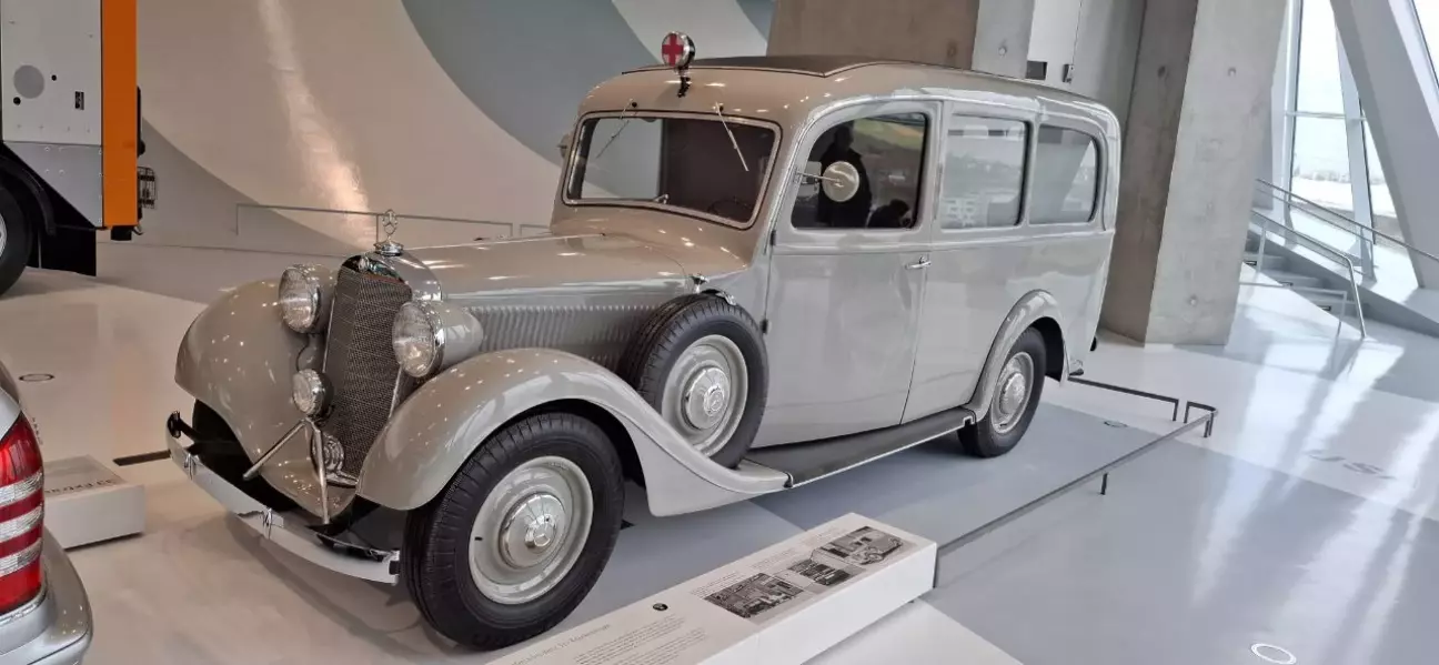 Придбали квітки в музей по 16 евро. В відгукав читав що можна пійти до адміністратора, сказати що українці та пройти безкоштовно. Я прошу вибачення, але це не для мене. Тим більш я сам працюю, заробляю гроші та не збираюсь принижуватись за такі нюанси. Після купівлі квітків нам видали навушники та аудіогіди. Це був першій музей , в який ми потрапили з такою послугою. Огляд починається з 7 поверху, куди групу єкскурсантів доставляє ліфт космічного виду з дизайном 50 років минулого століття. тут починається історія створення автомобільних виробів Мерседес, починаючи з білої лошаді. (ЇЇ не фотографував, бо вважаю що як вона виглядає всі й так розуміють))) Далі зал де розміщені самі перші авто Даймлера.