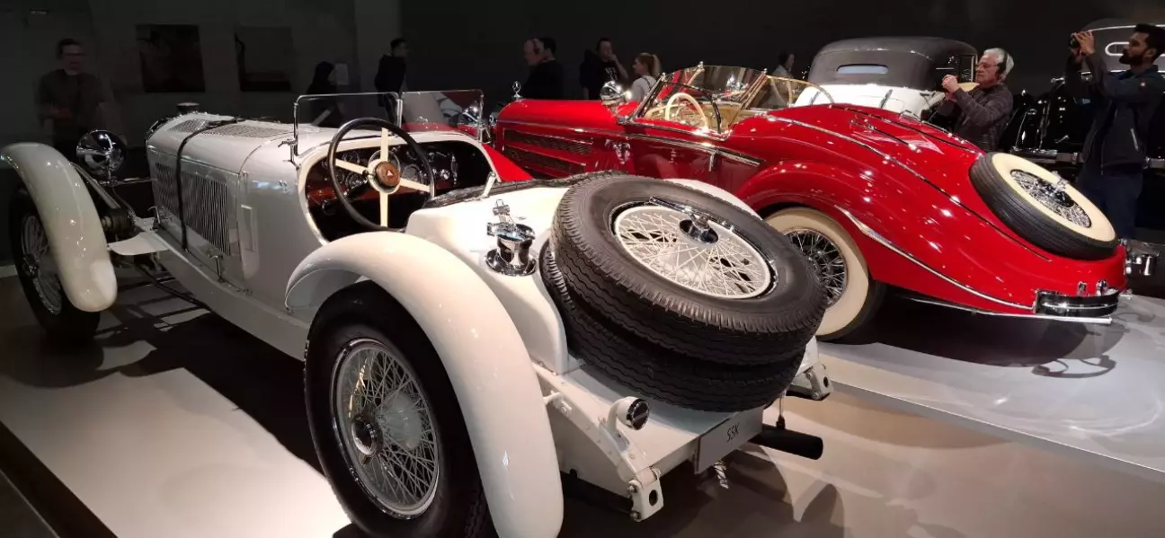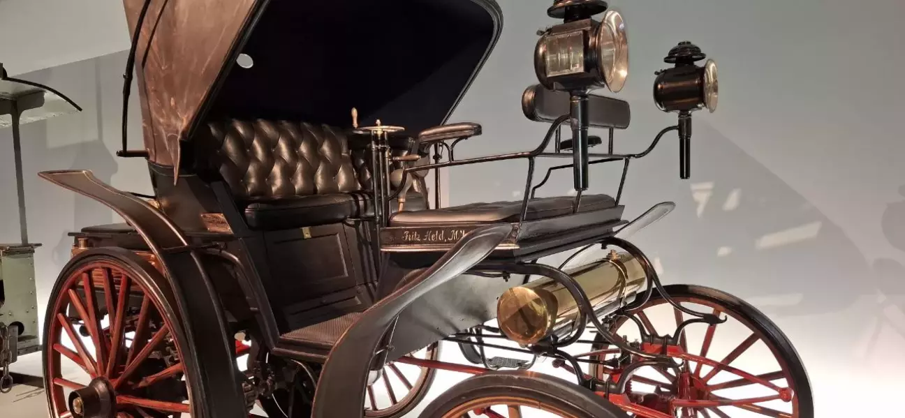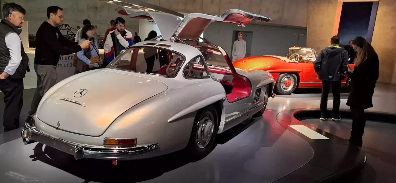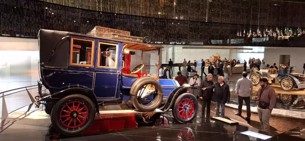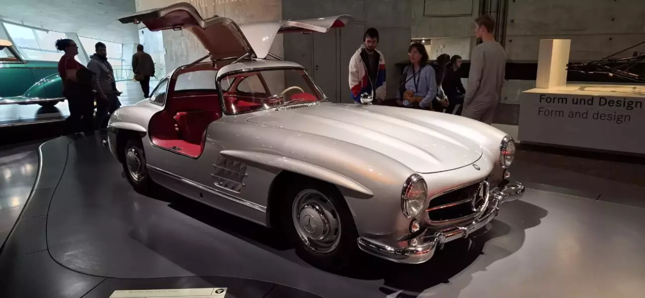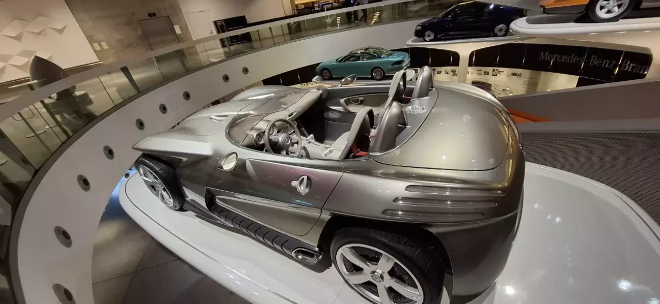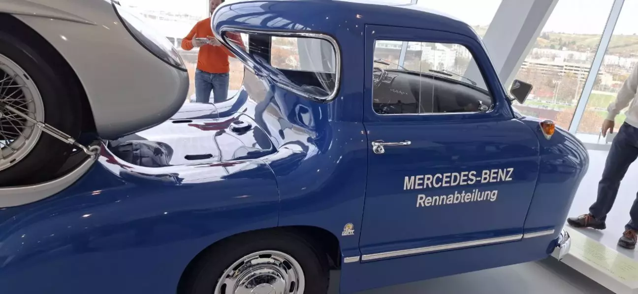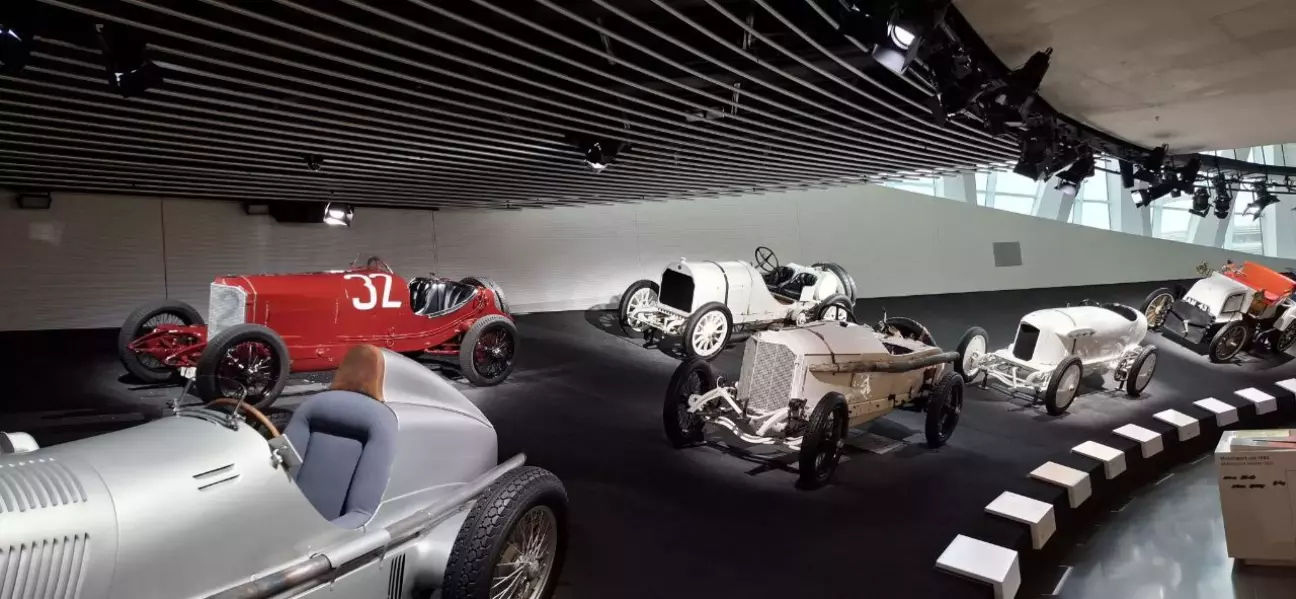 Придбали квітки в музей по 16 евро. В відгукав читав що можна пійти до адміністратора, сказати що українці та пройти безкоштовно. Я прошу вибачення, але це не для мене. Тим більш я сам працюю, заробляю гроші та не збираюсь принижуватись за такі нюанси. Після купівлі квітків нам видали навушники та аудіогіди. Це був першій музей , в який ми потрапили з такою послугою. Огляд починається з 7 поверху, куди групу єкскурсантів доставляє ліфт космічного виду з дизайном 50 років минулого століття. тут починається історія створення автомобільних виробів Мерседес, починаючи з білої лошаді. (ЇЇ не фотографував, бо вважаю що як вона виглядає всі й так розуміють))) Далі зал де розміщені самі перші авто Даймлера.