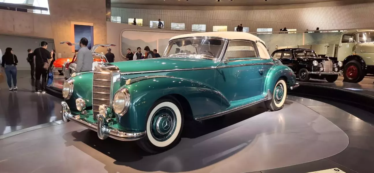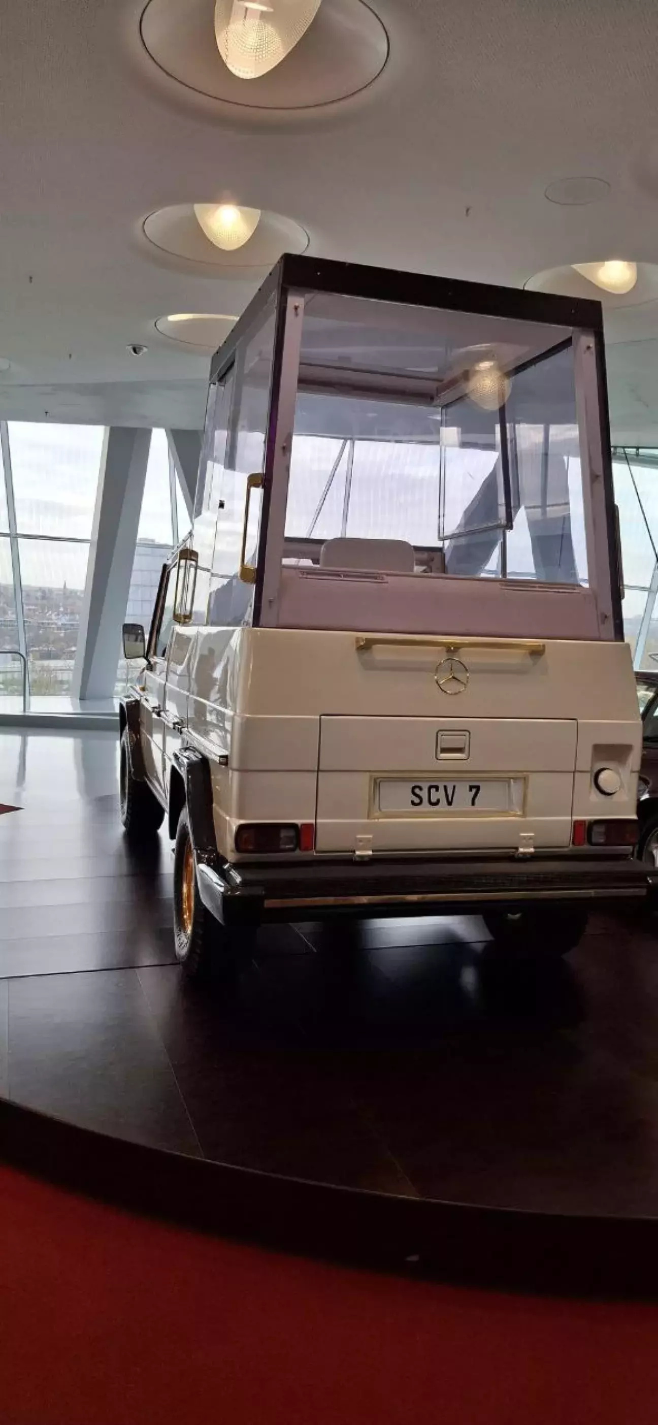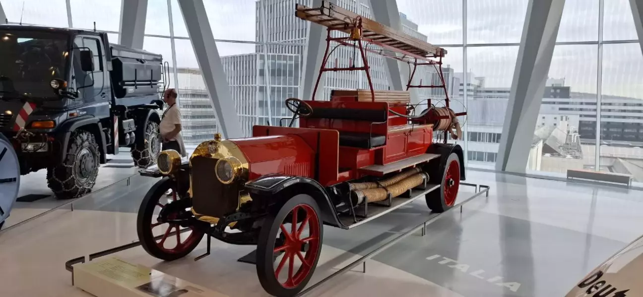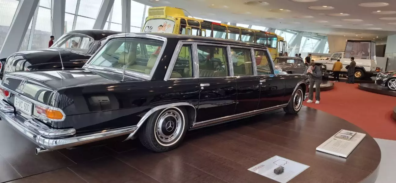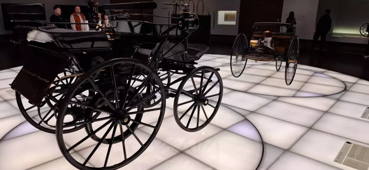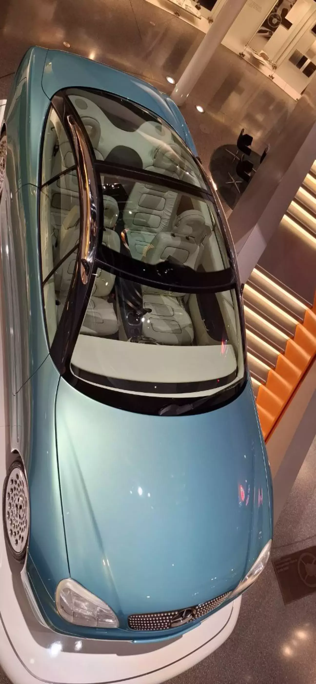 Придбали квітки в музей по 16 евро. В відгукав читав що можна пійти до адміністратора, сказати що українці та пройти безкоштовно. Я прошу вибачення, але це не для мене. Тим більш я сам працюю, заробляю гроші та не збираюсь принижуватись за такі нюанси. Після купівлі квітків нам видали навушники та аудіогіди. Це був першій музей , в який ми потрапили з такою послугою. Огляд починається з 7 поверху, куди групу єкскурсантів доставляє ліфт космічного виду з дизайном 50 років минулого століття. тут починається історія створення автомобільних виробів Мерседес, починаючи з білої лошаді. (ЇЇ не фотографував, бо вважаю що як вона виглядає всі й так розуміють))) Далі зал де розміщені самі перші авто Даймлера.