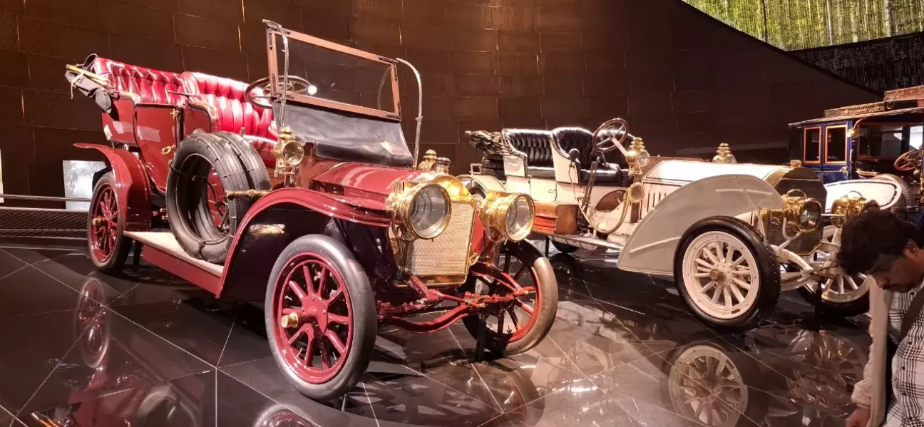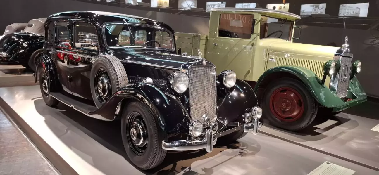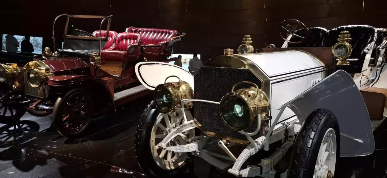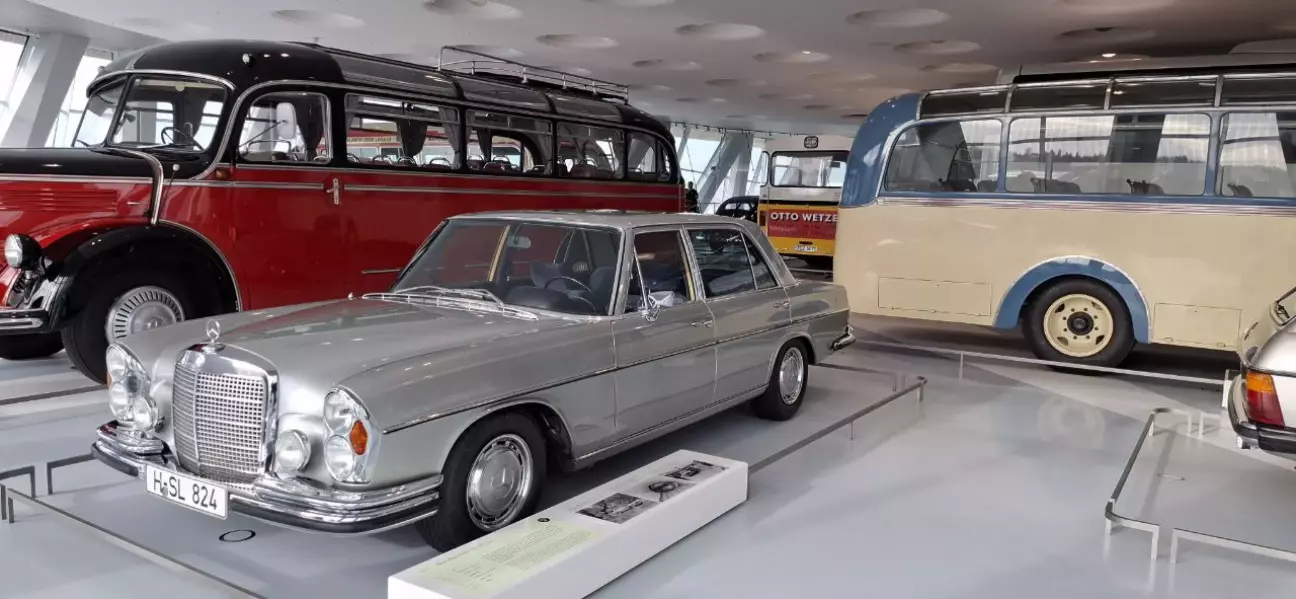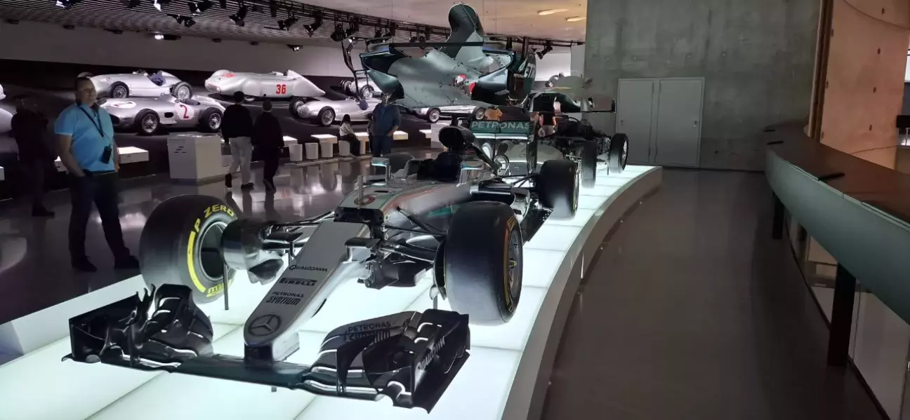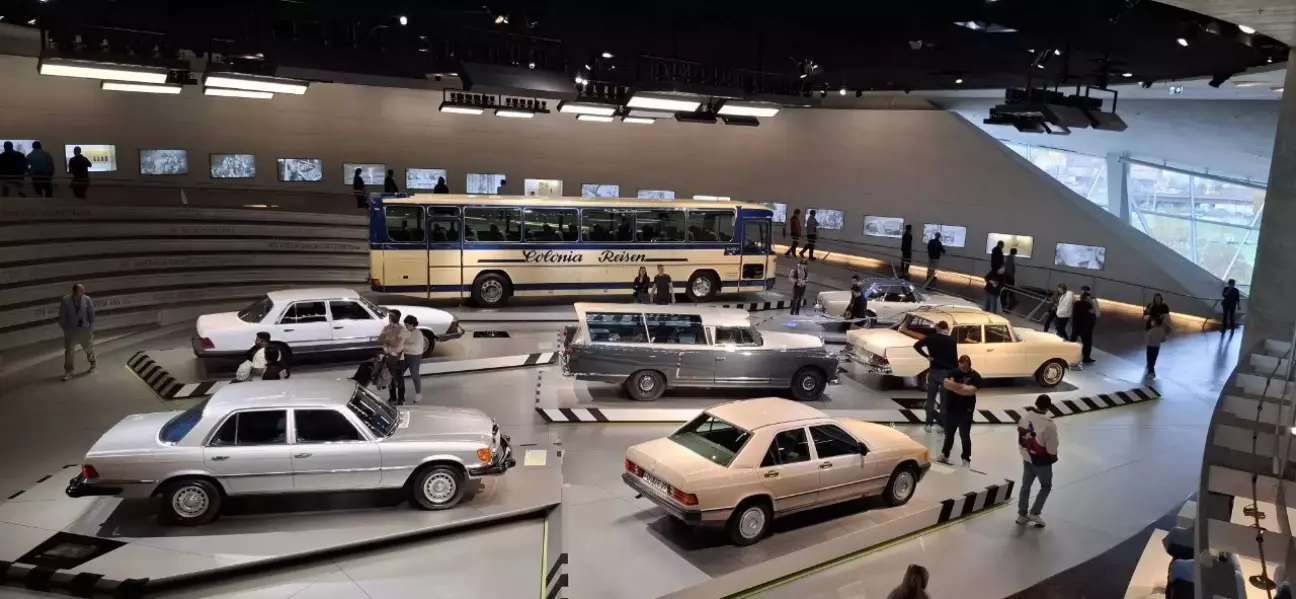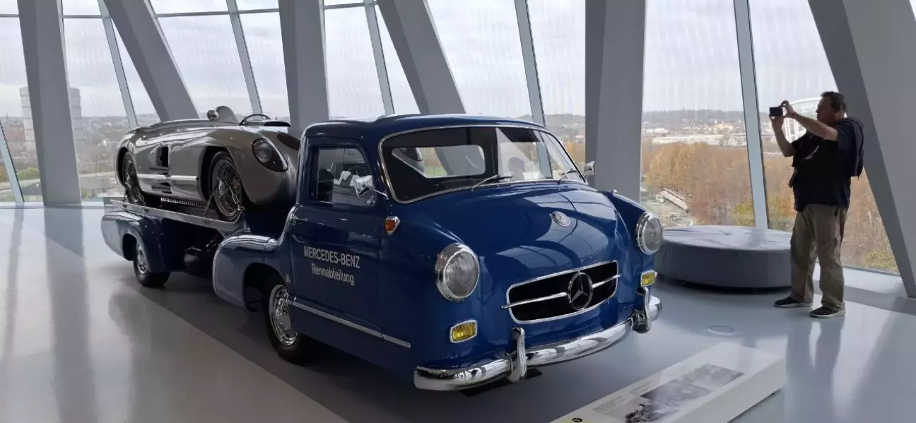 Придбали квітки в музей по 16 евро. В відгукав читав що можна пійти до адміністратора, сказати що українці та пройти безкоштовно. Я прошу вибачення, але це не для мене. Тим більш я сам працюю, заробляю гроші та не збираюсь принижуватись за такі нюанси. Після купівлі квітків нам видали навушники та аудіогіди. Це був першій музей , в який ми потрапили з такою послугою. Огляд починається з 7 поверху, куди групу єкскурсантів доставляє ліфт космічного виду з дизайном 50 років минулого століття. тут починається історія створення автомобільних виробів Мерседес, починаючи з білої лошаді. (ЇЇ не фотографував, бо вважаю що як вона виглядає всі й так розуміють))) Далі зал де розміщені самі перші авто Даймлера.