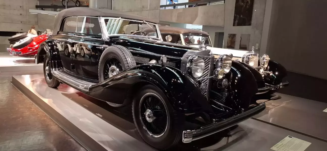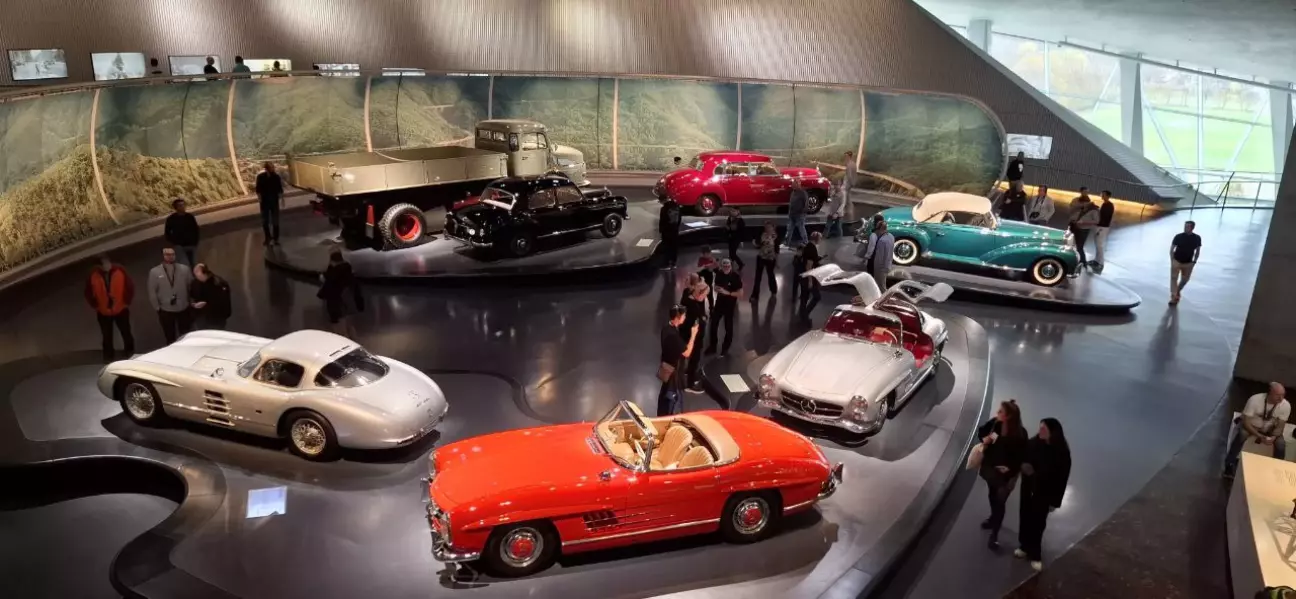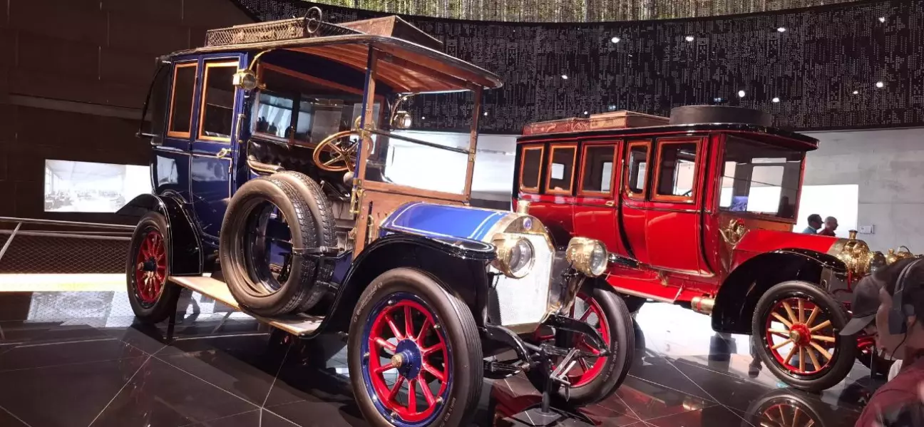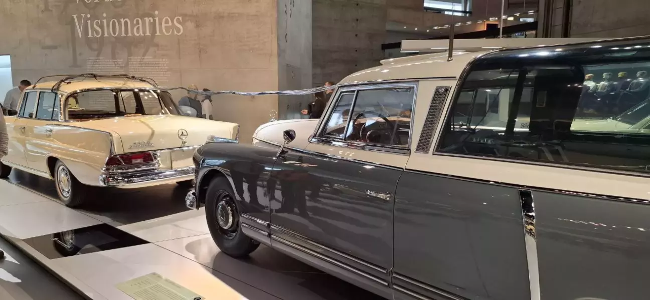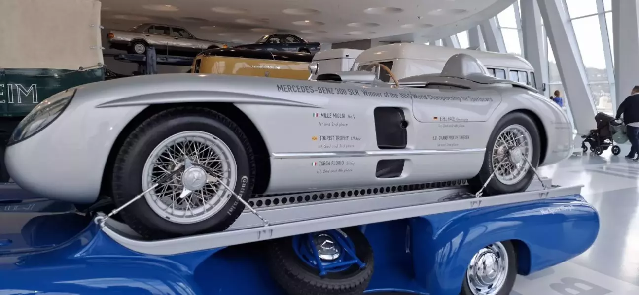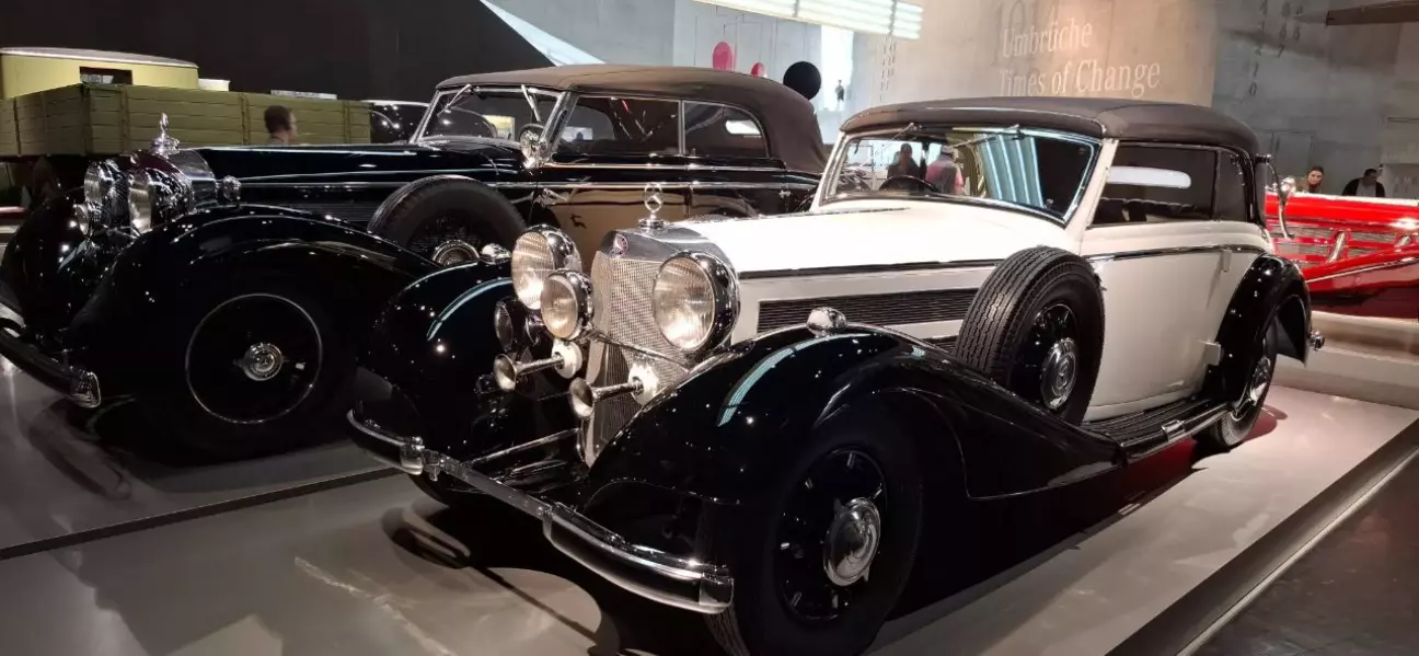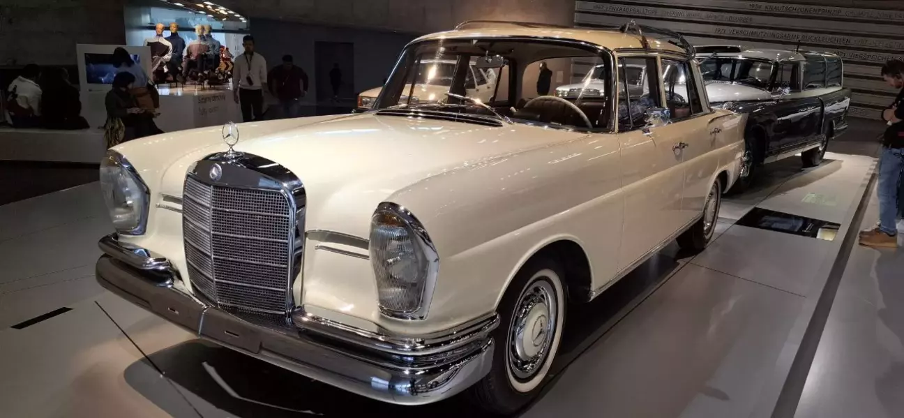 Придбали квітки в музей по 16 евро. В відгукав читав що можна пійти до адміністратора, сказати що українці та пройти безкоштовно. Я прошу вибачення, але це не для мене. Тим більш я сам працюю, заробляю гроші та не збираюсь принижуватись за такі нюанси. Після купівлі квітків нам видали навушники та аудіогіди. Це був першій музей , в який ми потрапили з такою послугою. Огляд починається з 7 поверху, куди групу єкскурсантів доставляє ліфт космічного виду з дизайном 50 років минулого століття. тут починається історія створення автомобільних виробів Мерседес, починаючи з білої лошаді. (ЇЇ не фотографував, бо вважаю що як вона виглядає всі й так розуміють))) Далі зал де розміщені самі перші авто Даймлера.