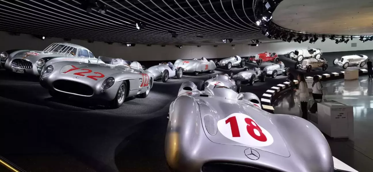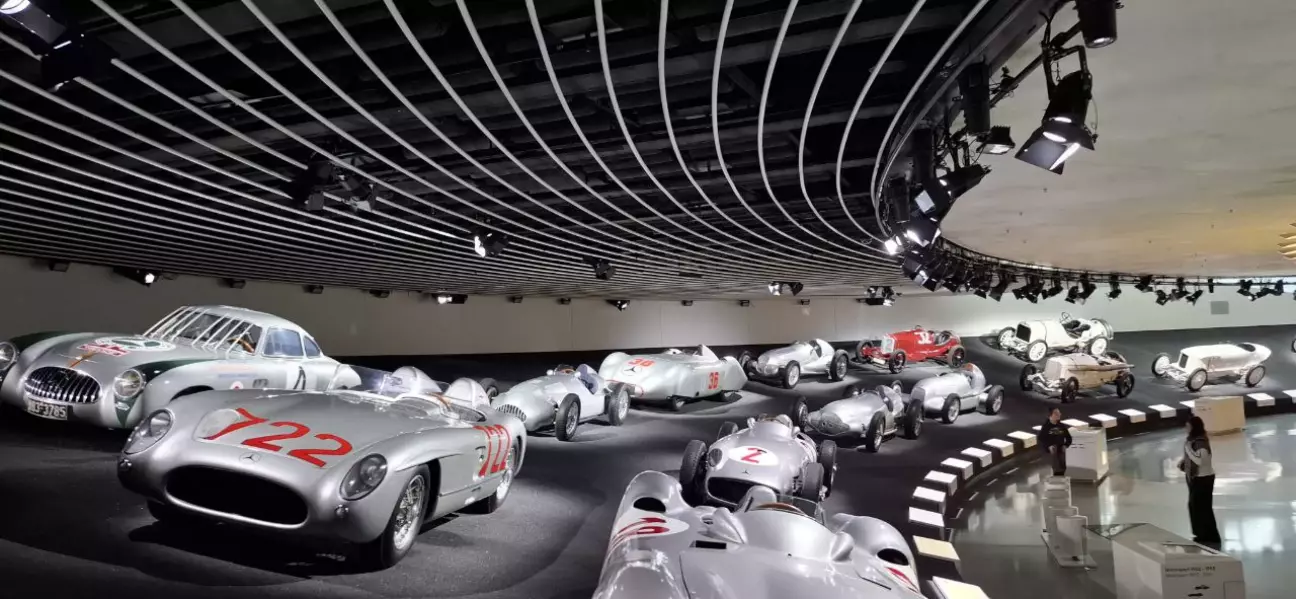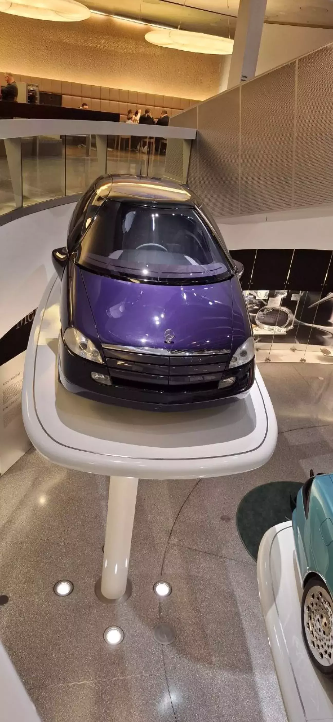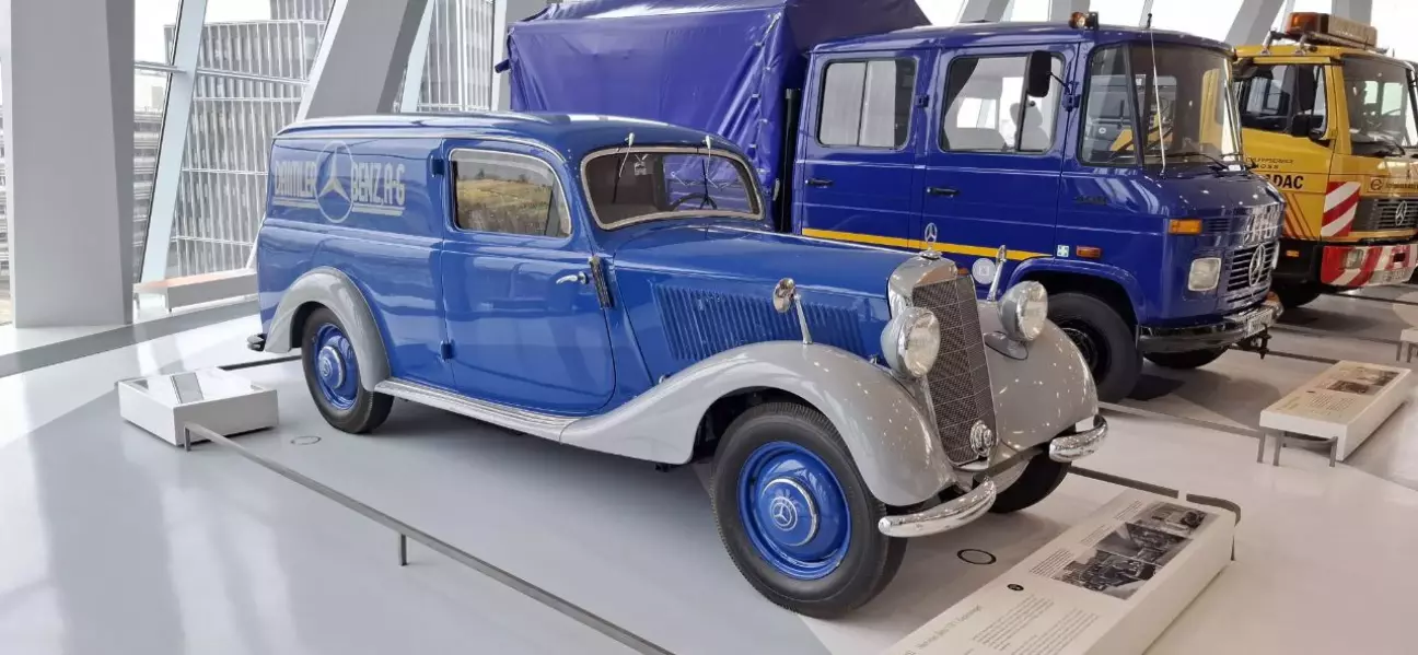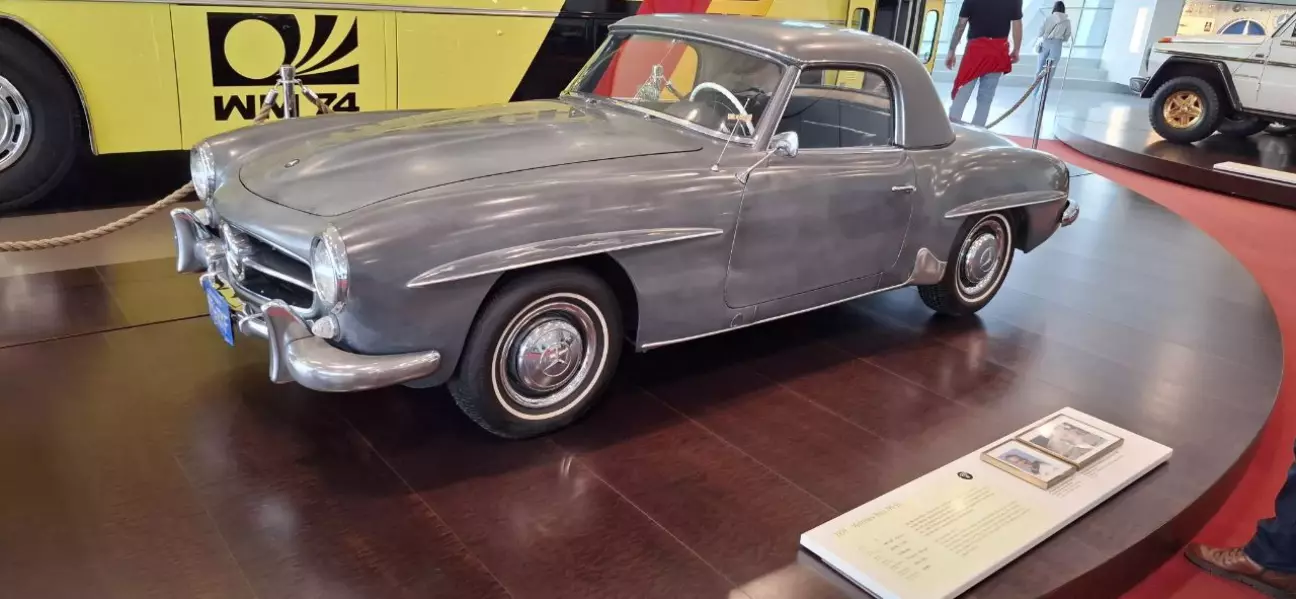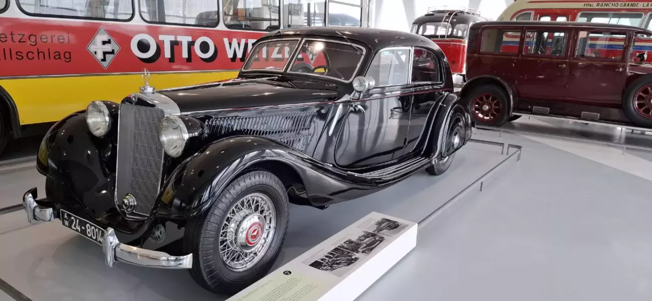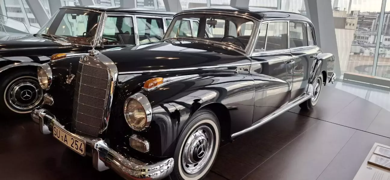 Придбали квітки в музей по 16 евро. В відгукав читав що можна пійти до адміністратора, сказати що українці та пройти безкоштовно. Я прошу вибачення, але це не для мене. Тим більш я сам працюю, заробляю гроші та не збираюсь принижуватись за такі нюанси. Після купівлі квітків нам видали навушники та аудіогіди. Це був першій музей , в який ми потрапили з такою послугою. Огляд починається з 7 поверху, куди групу єкскурсантів доставляє ліфт космічного виду з дизайном 50 років минулого століття. тут починається історія створення автомобільних виробів Мерседес, починаючи з білої лошаді. (ЇЇ не фотографував, бо вважаю що як вона виглядає всі й так розуміють))) Далі зал де розміщені самі перші авто Даймлера.
