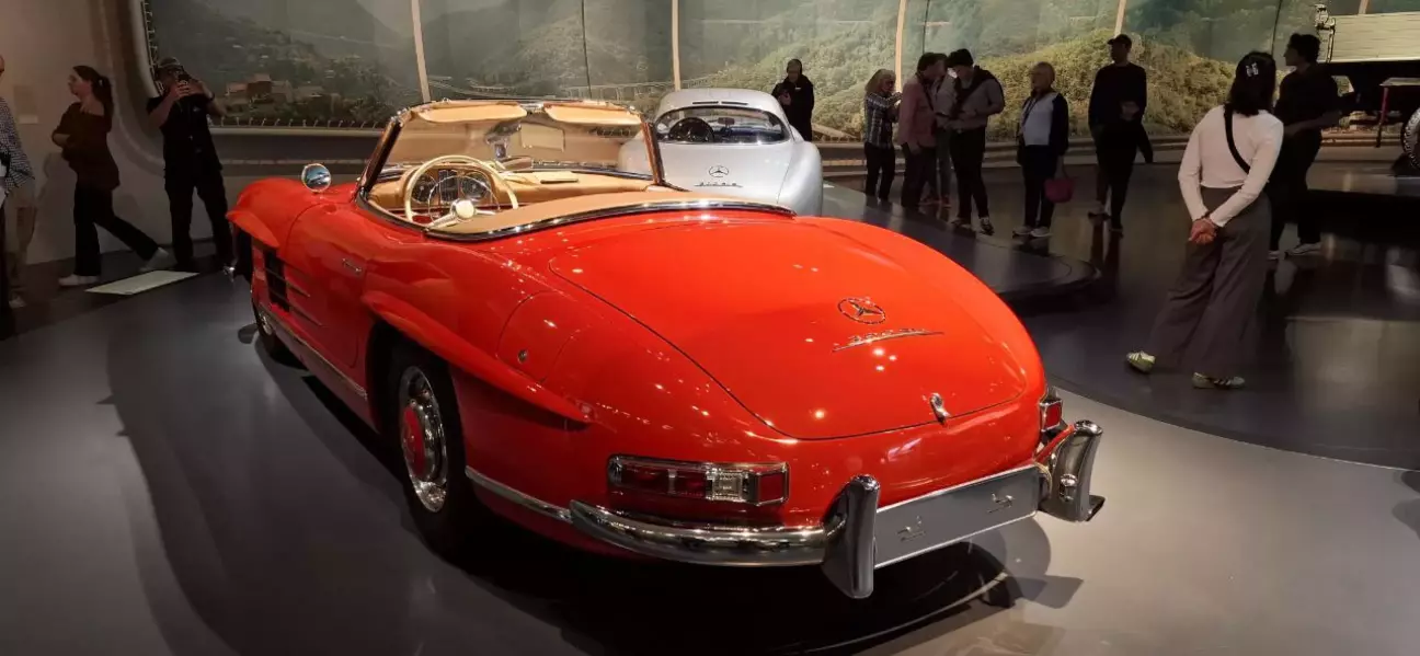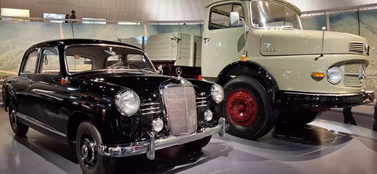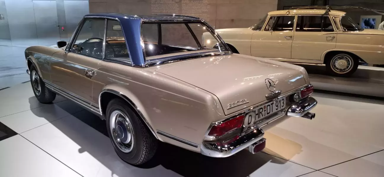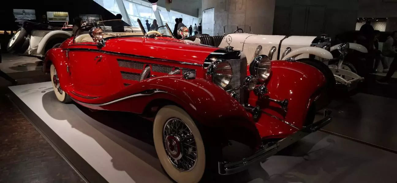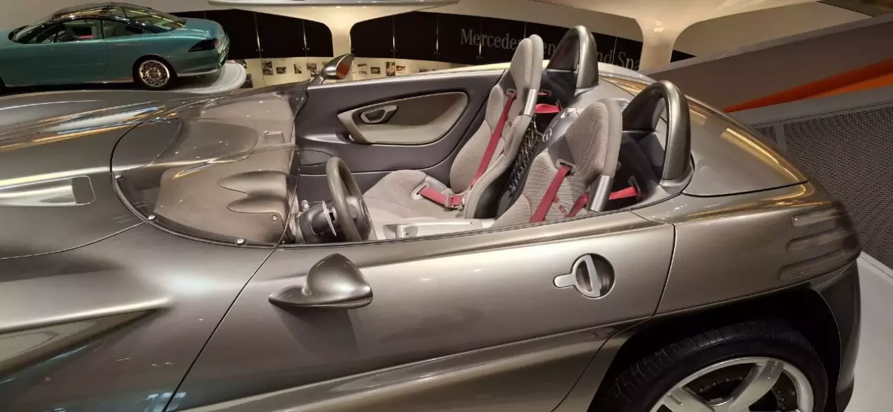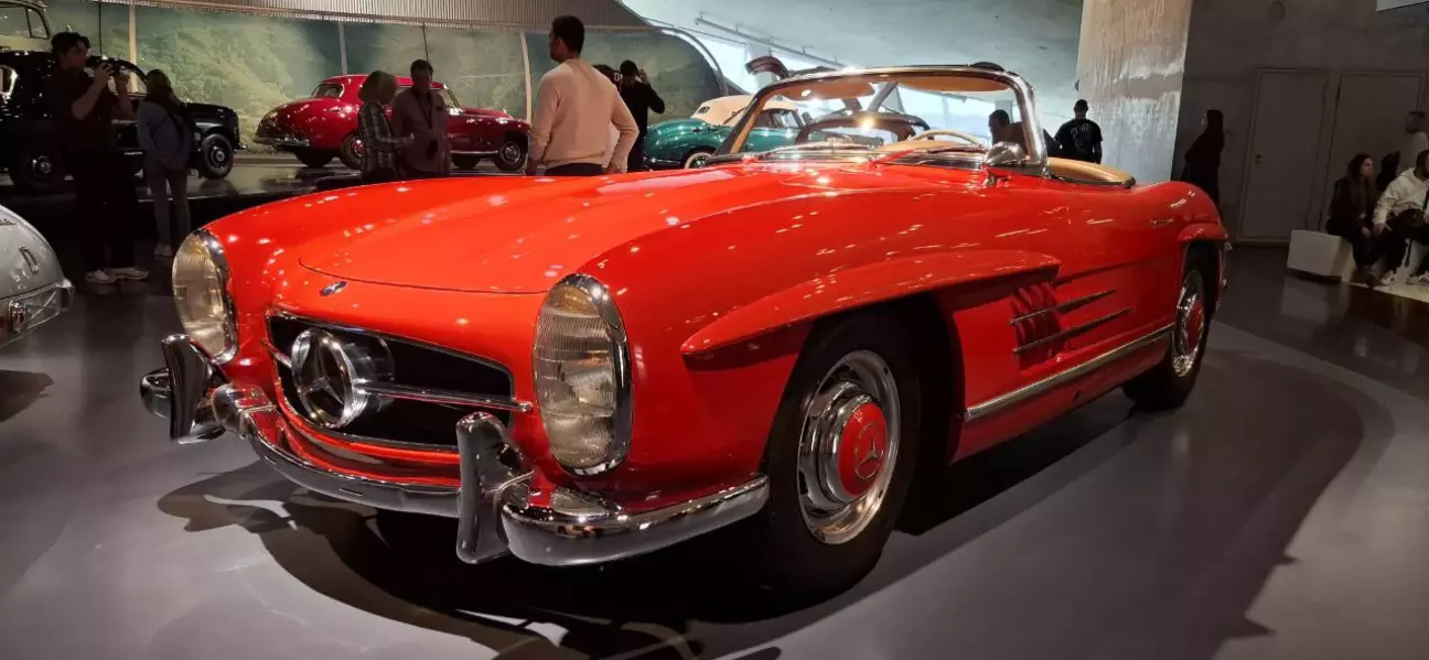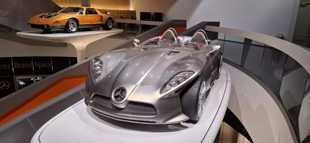 Придбали квітки в музей по 16 евро. В відгукав читав що можна пійти до адміністратора, сказати що українці та пройти безкоштовно. Я прошу вибачення, але це не для мене. Тим більш я сам працюю, заробляю гроші та не збираюсь принижуватись за такі нюанси. Після купівлі квітків нам видали навушники та аудіогіди. Це був першій музей , в який ми потрапили з такою послугою. Огляд починається з 7 поверху, куди групу єкскурсантів доставляє ліфт космічного виду з дизайном 50 років минулого століття. тут починається історія створення автомобільних виробів Мерседес, починаючи з білої лошаді. (ЇЇ не фотографував, бо вважаю що як вона виглядає всі й так розуміють))) Далі зал де розміщені самі перші авто Даймлера.