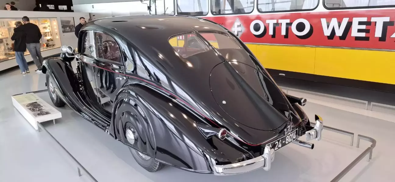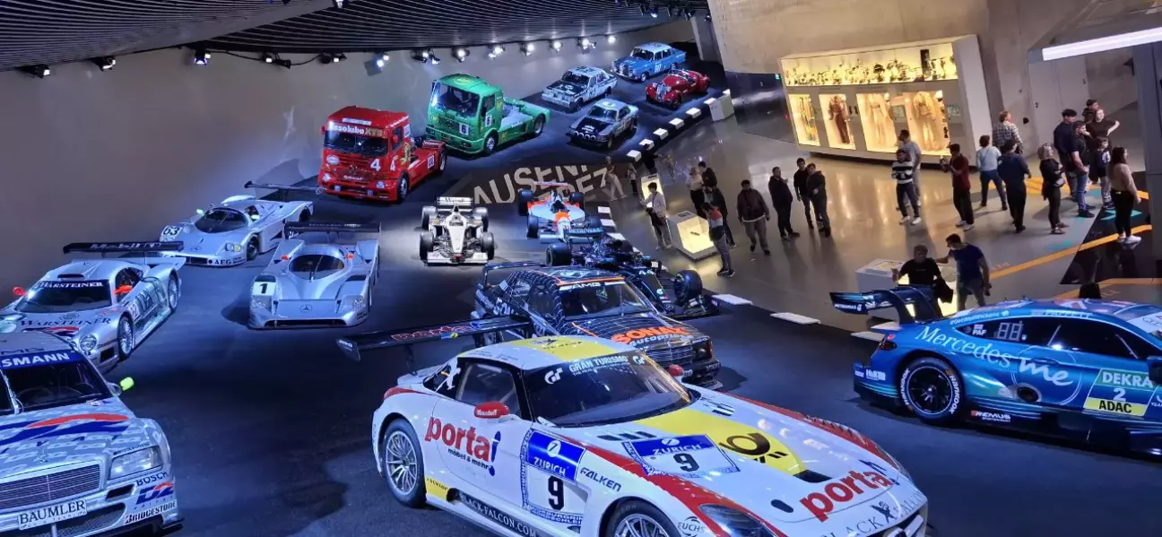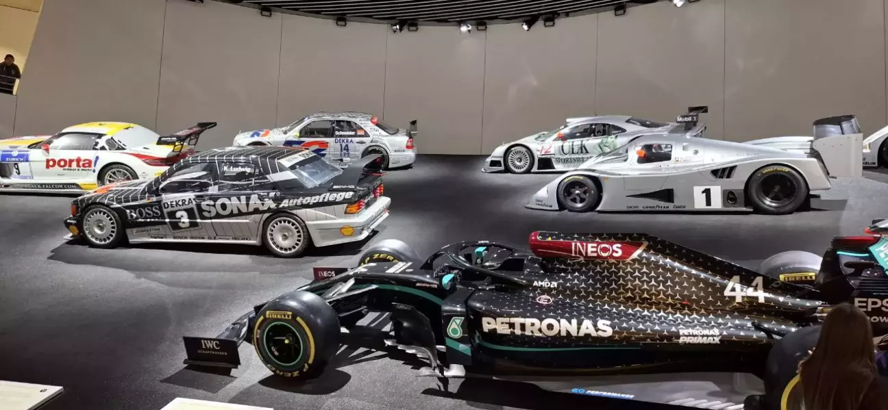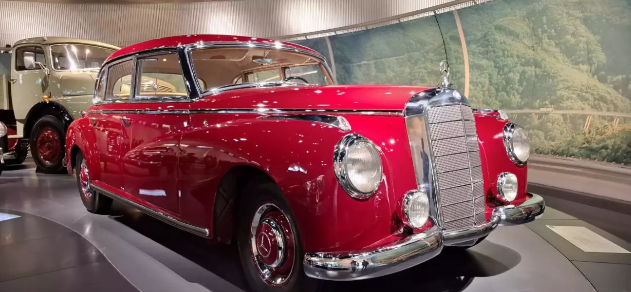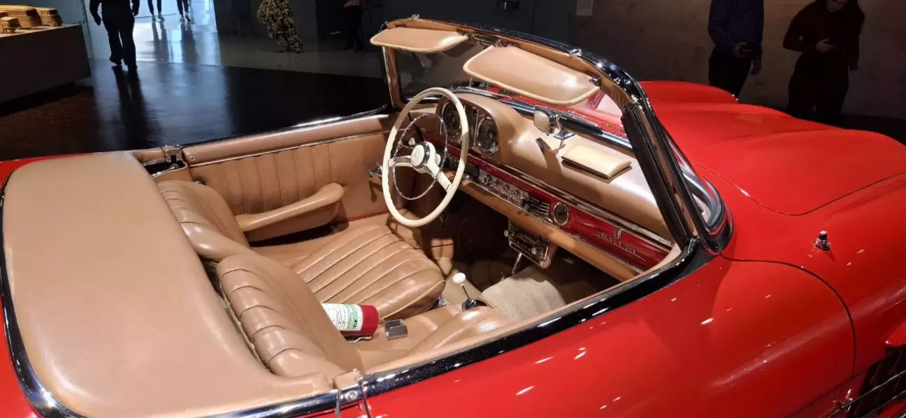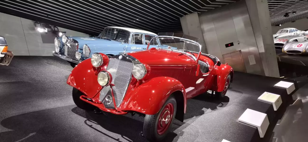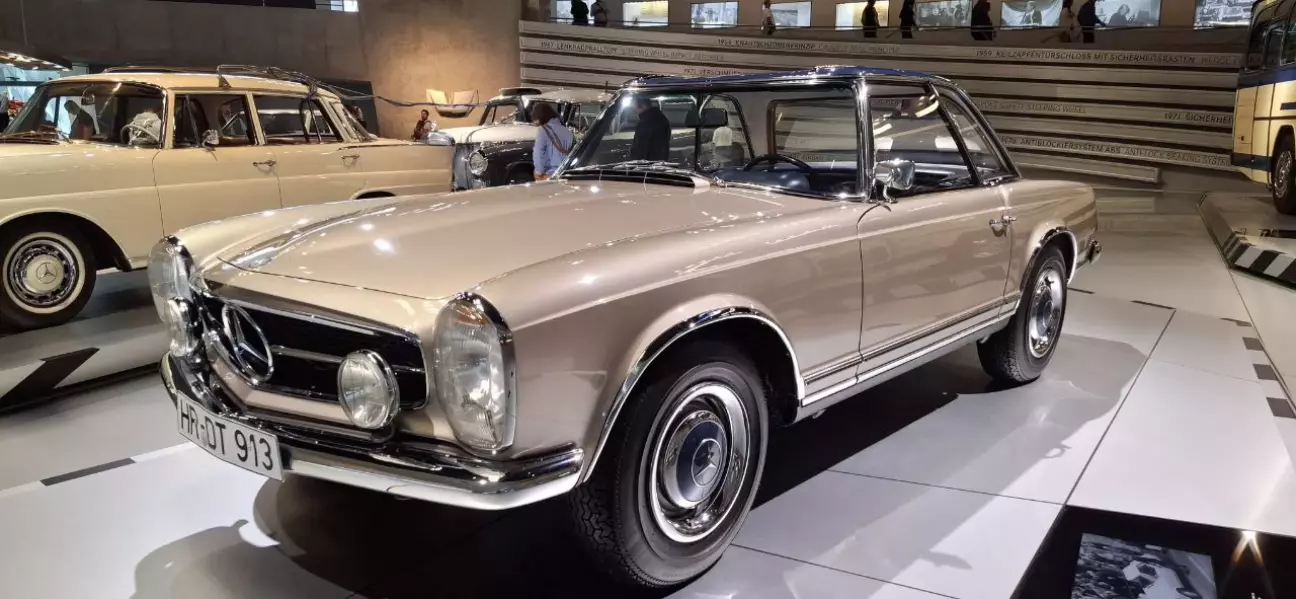 Придбали квітки в музей по 16 евро. В відгукав читав що можна пійти до адміністратора, сказати що українці та пройти безкоштовно. Я прошу вибачення, але це не для мене. Тим більш я сам працюю, заробляю гроші та не збираюсь принижуватись за такі нюанси. Після купівлі квітків нам видали навушники та аудіогіди. Це був першій музей , в який ми потрапили з такою послугою. Огляд починається з 7 поверху, куди групу єкскурсантів доставляє ліфт космічного виду з дизайном 50 років минулого століття. тут починається історія створення автомобільних виробів Мерседес, починаючи з білої лошаді. (ЇЇ не фотографував, бо вважаю що як вона виглядає всі й так розуміють))) Далі зал де розміщені самі перші авто Даймлера.