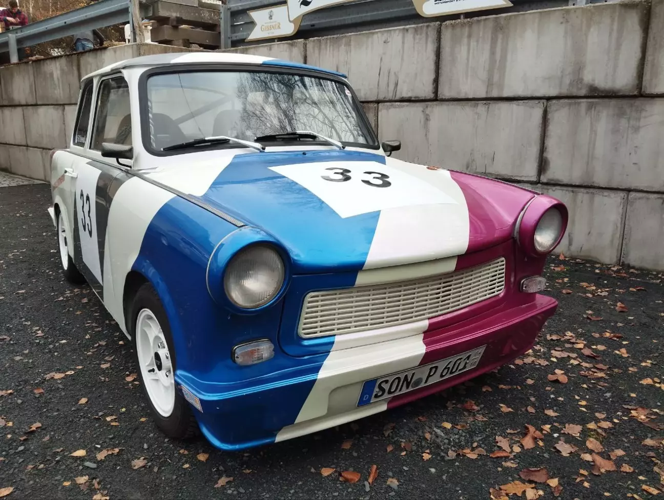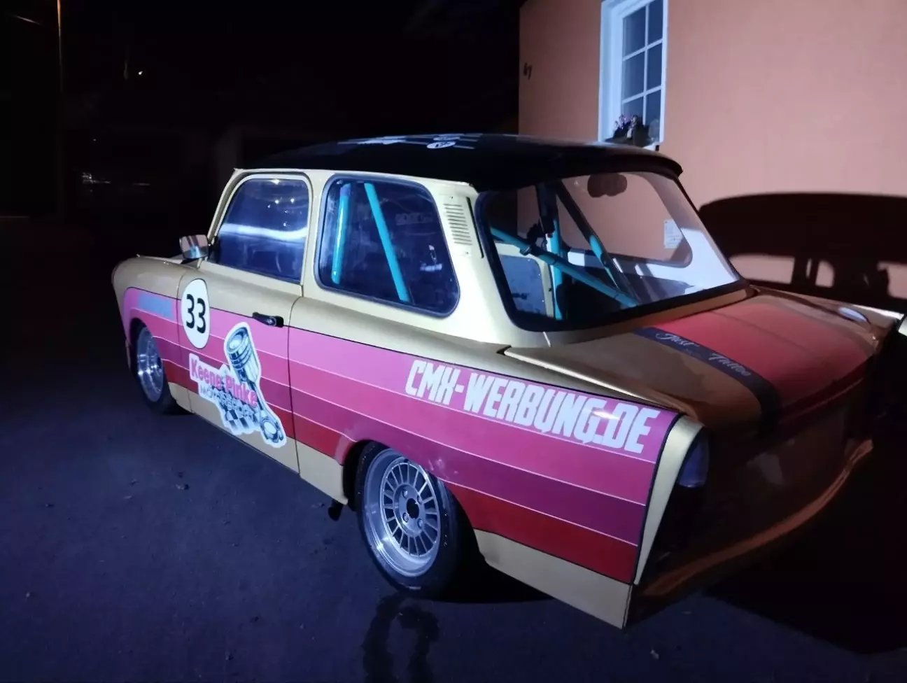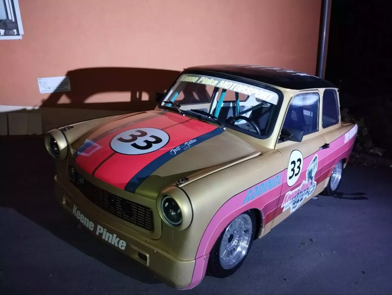 Заправив повний бак. Та повернувся до дому в очикуванні наступного дня. А ту така несподіванка. А саме - біля мого дому є тематичний ресторан з авто уклоном. Господар молодий парняга, дуже позитивний. Саме цікаве що це його ресторанчик працює лише декілька разів на рік. Саме так - на рік. Я так розумію що його арендують на якісь свята. Але дуже душевне місце, як то кажуть "атмосферне". В них жива рок-музика. Люди грають та співають на відкритому майданчику, біля ресторану. Але в цей раз господар виставив на відкритому майданчику замість столиків - три автівки. Ммм .... Я ніколи не вважав що Трабант, цей мотоцикл з платиковим кузовом - може бути гоночним авто.