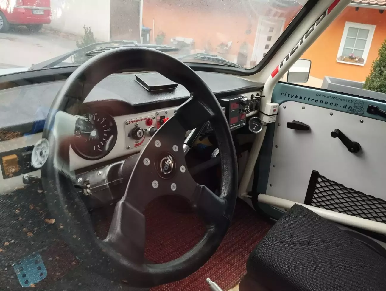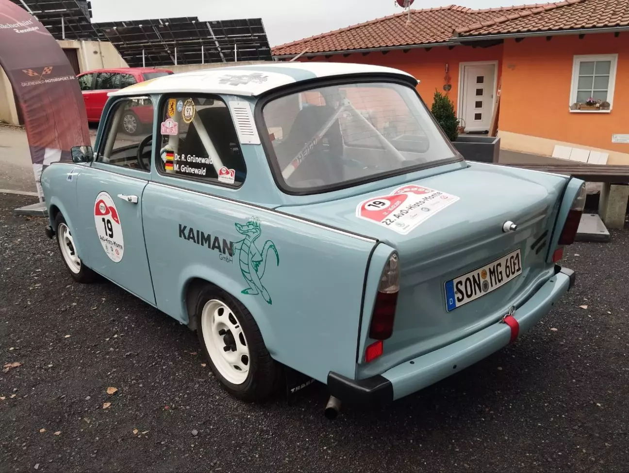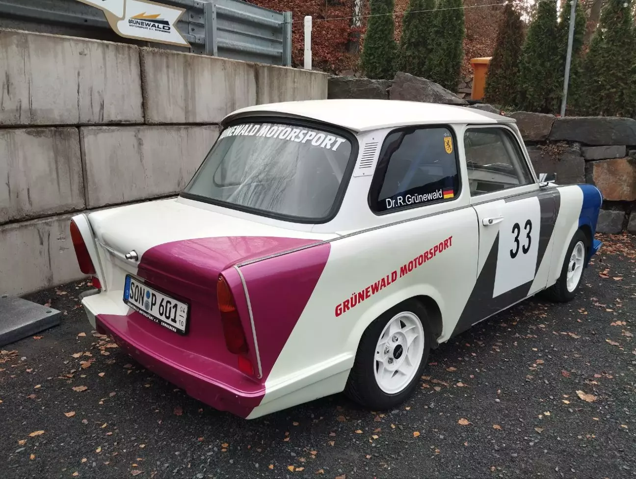 Заправив повний бак. Та повернувся до дому в очикуванні наступного дня. А ту така несподіванка. А саме - біля мого дому є тематичний ресторан з авто уклоном. Господар молодий парняга, дуже позитивний. Саме цікаве що це його ресторанчик працює лише декілька разів на рік. Саме так - на рік. Я так розумію що його арендують на якісь свята. Але дуже душевне місце, як то кажуть "атмосферне". В них жива рок-музика. Люди грають та співають на відкритому майданчику, біля ресторану. Але в цей раз господар виставив на відкритому майданчику замість столиків - три автівки. Ммм .... Я ніколи не вважав що Трабант, цей мотоцикл з платиковим кузовом - може бути гоночним авто.