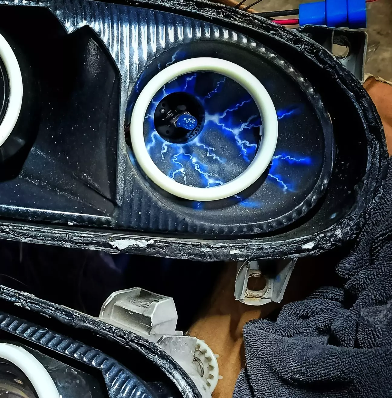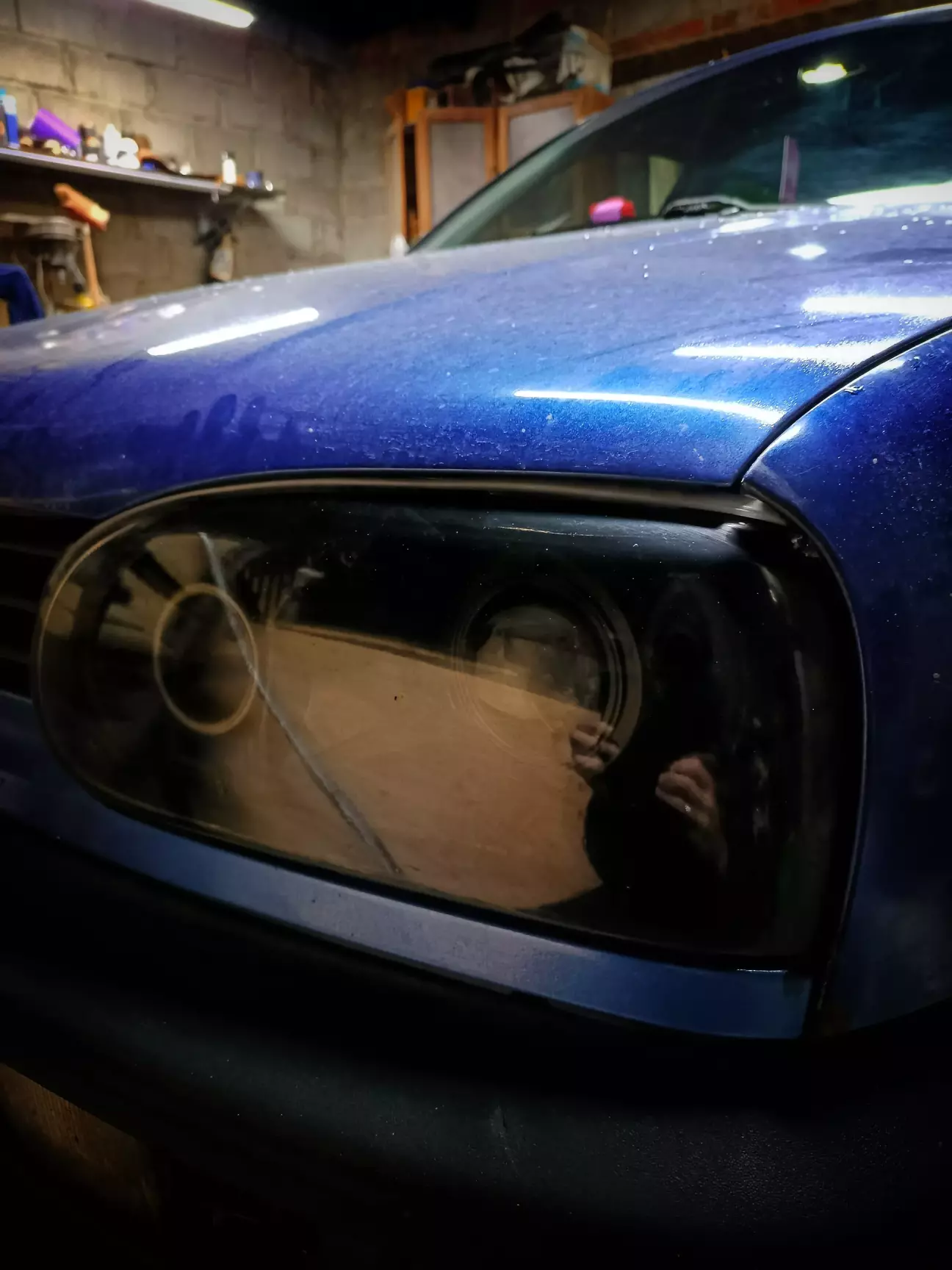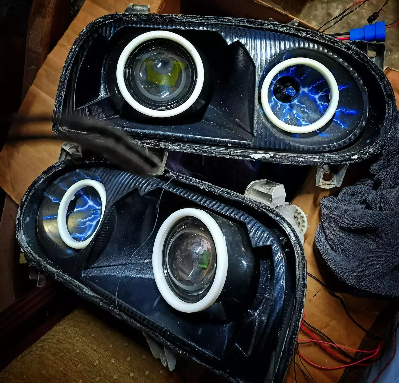 Пришлось снимать фары распоковывать и собирать все по новой. Оказалось что одно из регулировочных креплений рассыпалось и фара светила вниз, ну так как фары разобранные и установлены маски на линзу(оказалось на них есть крепление под ангельские глазки) то начинаем глобальные перемены в тени облике...