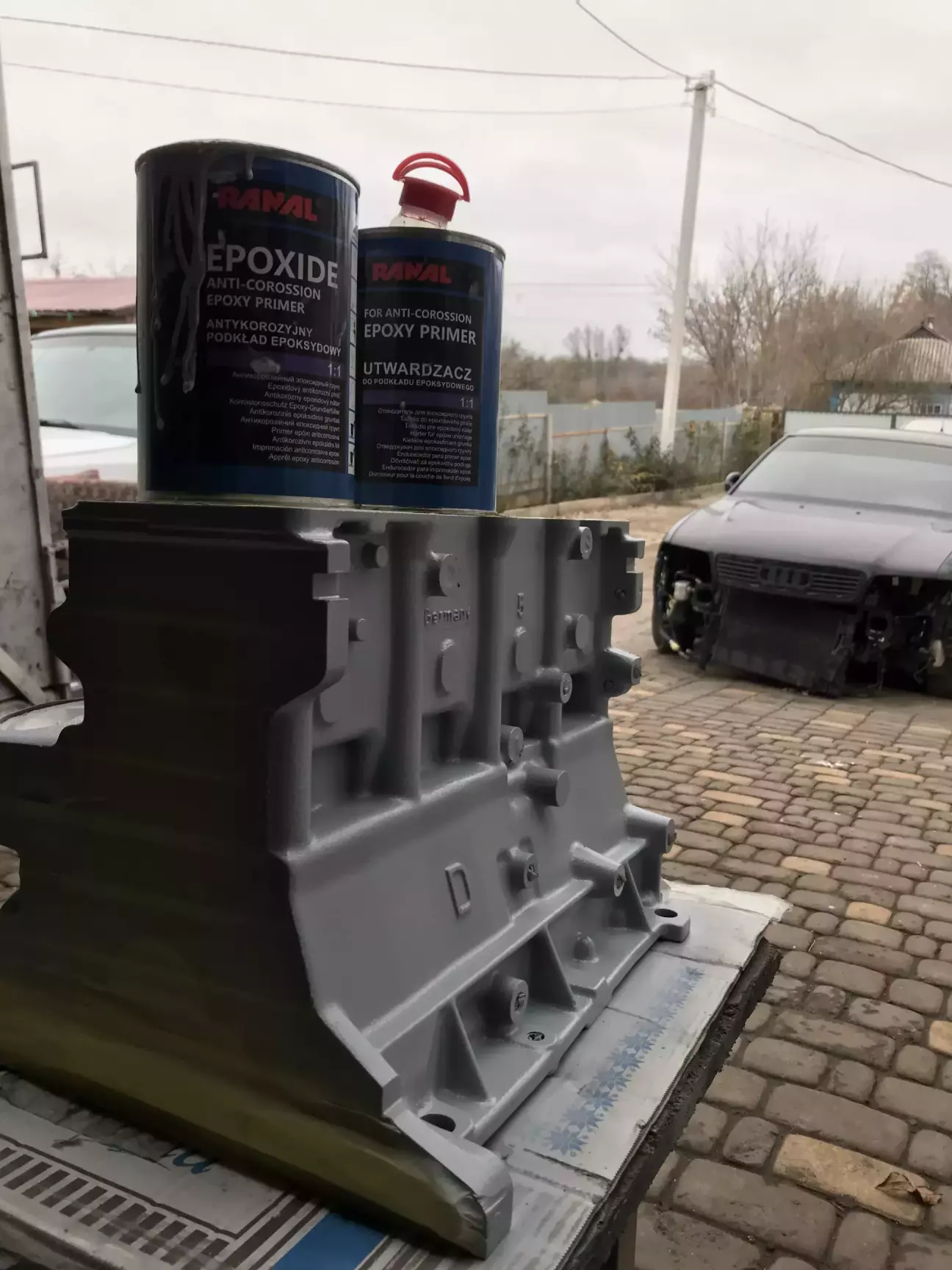 Вриваємось в роботу і бистренько готуємо блок до малярних робіт! 🔨 Беремо дрель, купу металевих щіток, можливо трохи наждачного паперу, і шуруємо! 💥 Після цього обливаємо все перетворювачем ржавчини і чекаємо приблизно дві години. ⏳