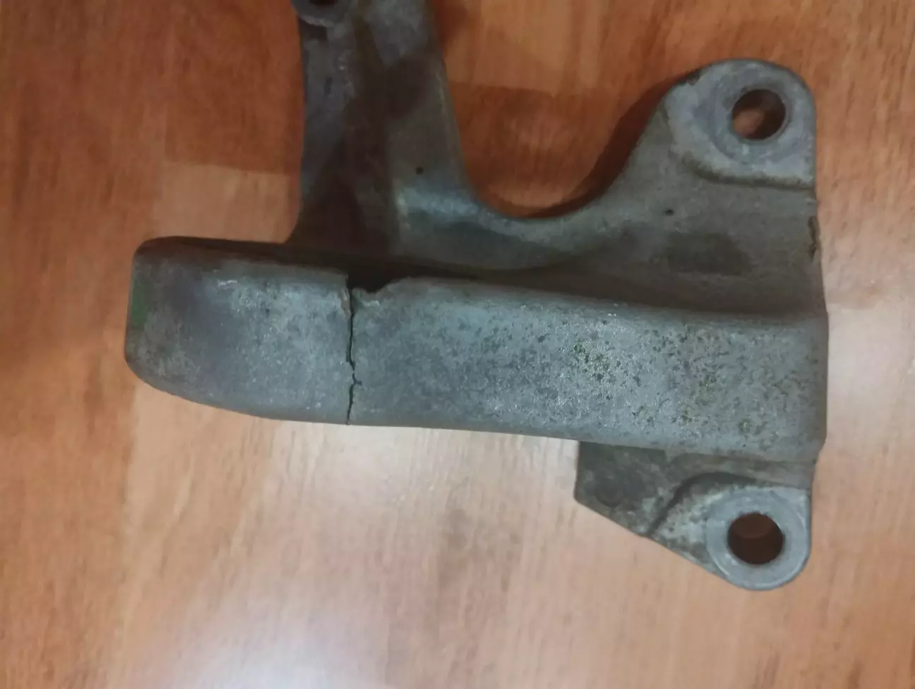 Вина однозначно криворуких мастеров с сто. А вот какого менно выяснить не удастся ибо эти манипуляции были в разных местах. Вобщем из за трещины, прослаб подшипник и вращался по наружке отчего вытер посадочное и люфтил отруки со стуком. На ходу ничего не проявлялось. При установке выяснилось, что деталь явно китайщина. Потому как, три плоскости посадочных в одном горизонте, а в оригинале одно ухо крепежа в другой плоскости, так как под него ложится толстый кронштейн крепления катализатора.