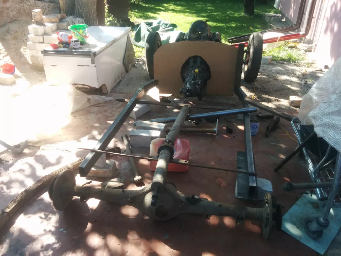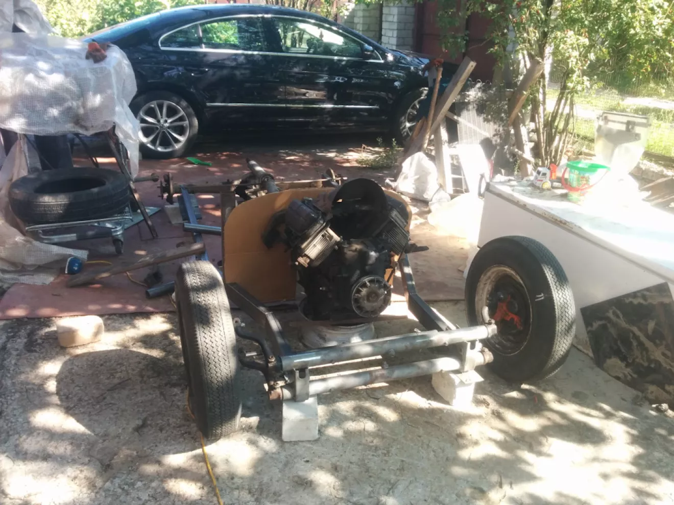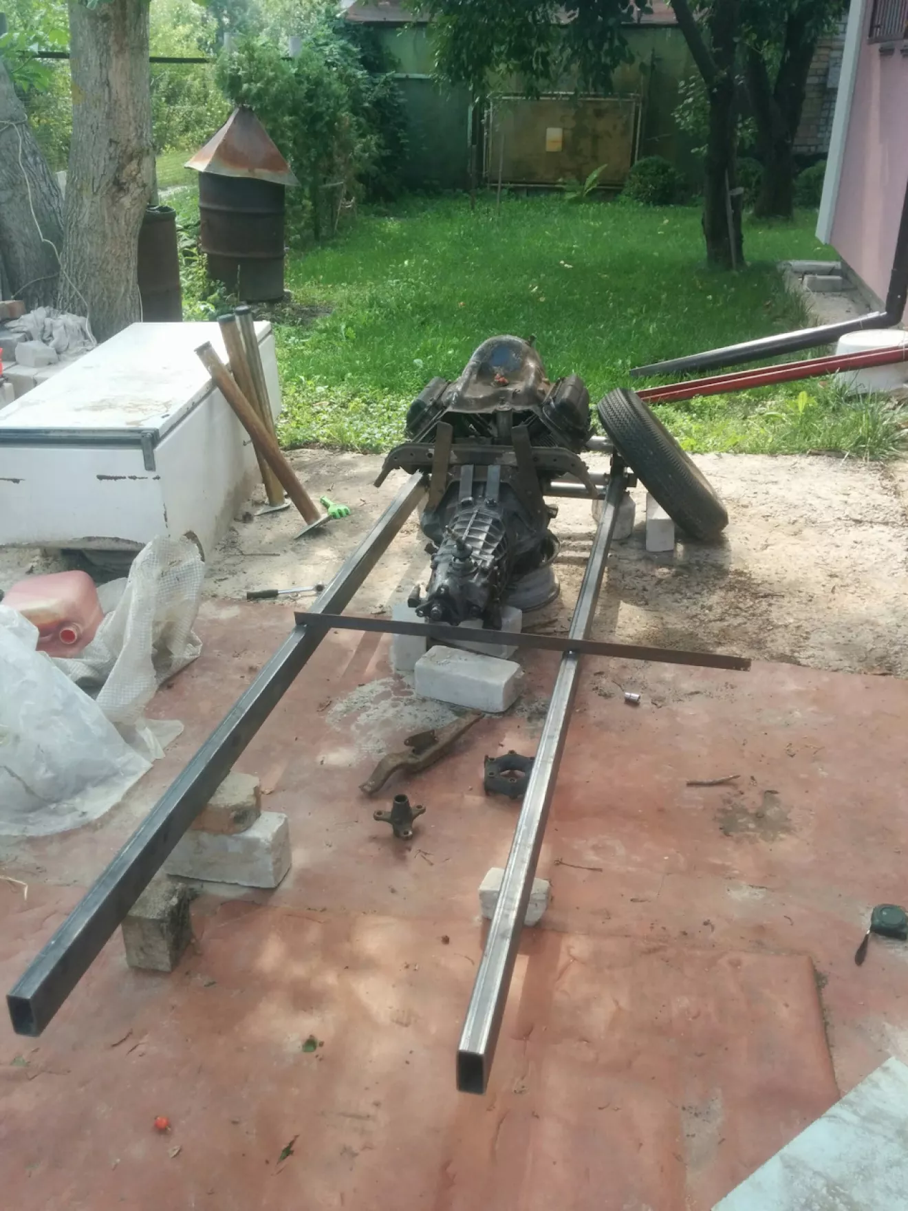 Рабочую неделю в городе было чем заняться, поиски необходимых комплектующих, коробки, карданов, моста, колес. Уже на следующих выходных необходимо было задать формы рамы, сделать арку моторного щита и после этого, появилось отдаленное подобие машины