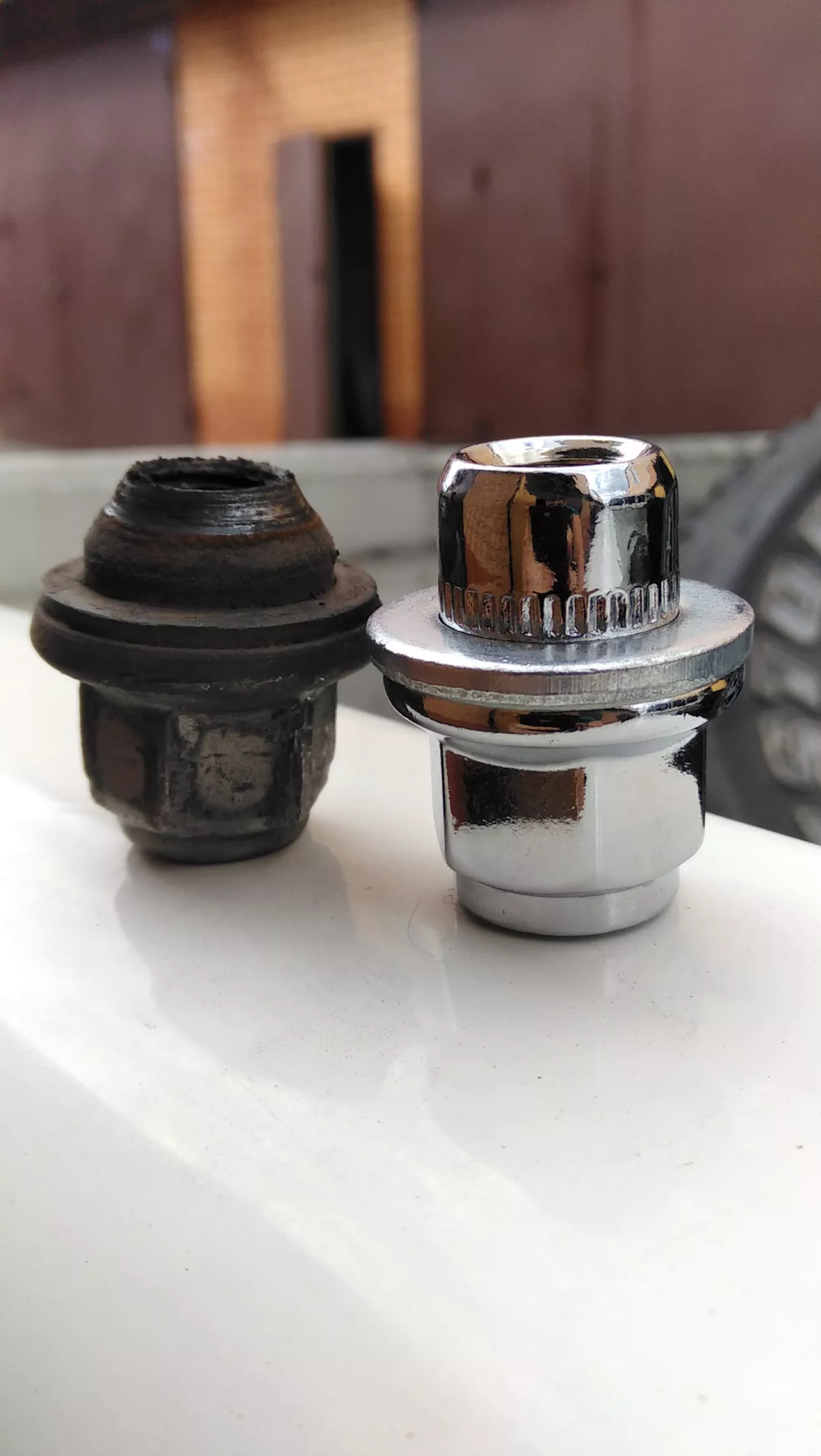 С начала ждал, потом красил, теперь вот поставить не могу. В общем какие должны быть гайки для этих дисков? Мои штамповки держит вот такой образец
