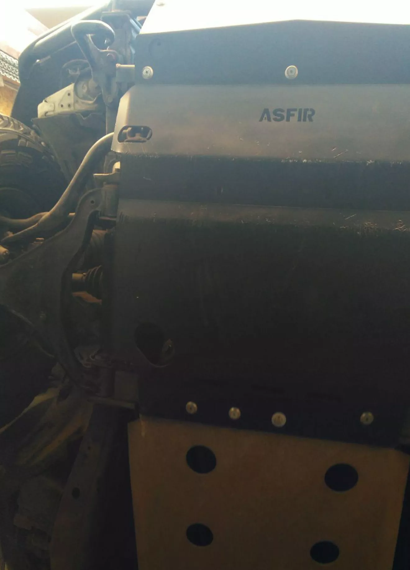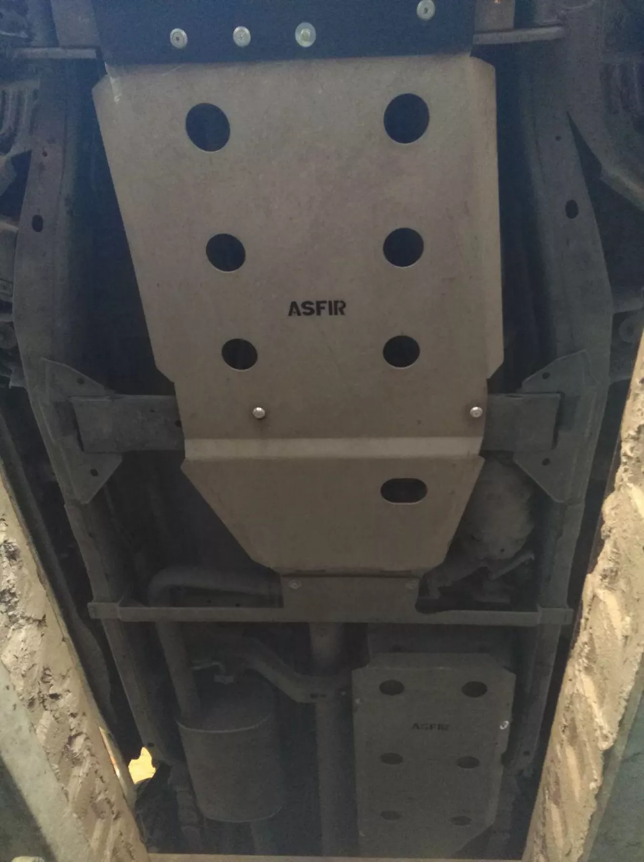 Думаю каждого владельца пикапа при выезде на бездор, немного беспокоит длинная колесная база, и каждый перевал, пень, или камень может очутится где? правильно, в топливном баке, во всяком случае у навары. Да, он очень хреново размещен, именно по этому туда куда едут другие, я ехать боюсь. Долго меня мучили мысли о изготовлении защиты бака (как минимум), но процесс это весьма трудоемкий и неудобный, начиная с выбора материала, выдумывания рабочей конструкции и в конце концов кучи примерок, с поднятыми руками дело весьма не благодарное. Тут проскочила объява о продаже комплекта защиты (поддон, КПП и бак), сначала ценник был в районе 400$, позже 300, и в конце концов я ее дождался, 200 американских президентов и она мчится почтой ко мне. Защита фирмы Asfir