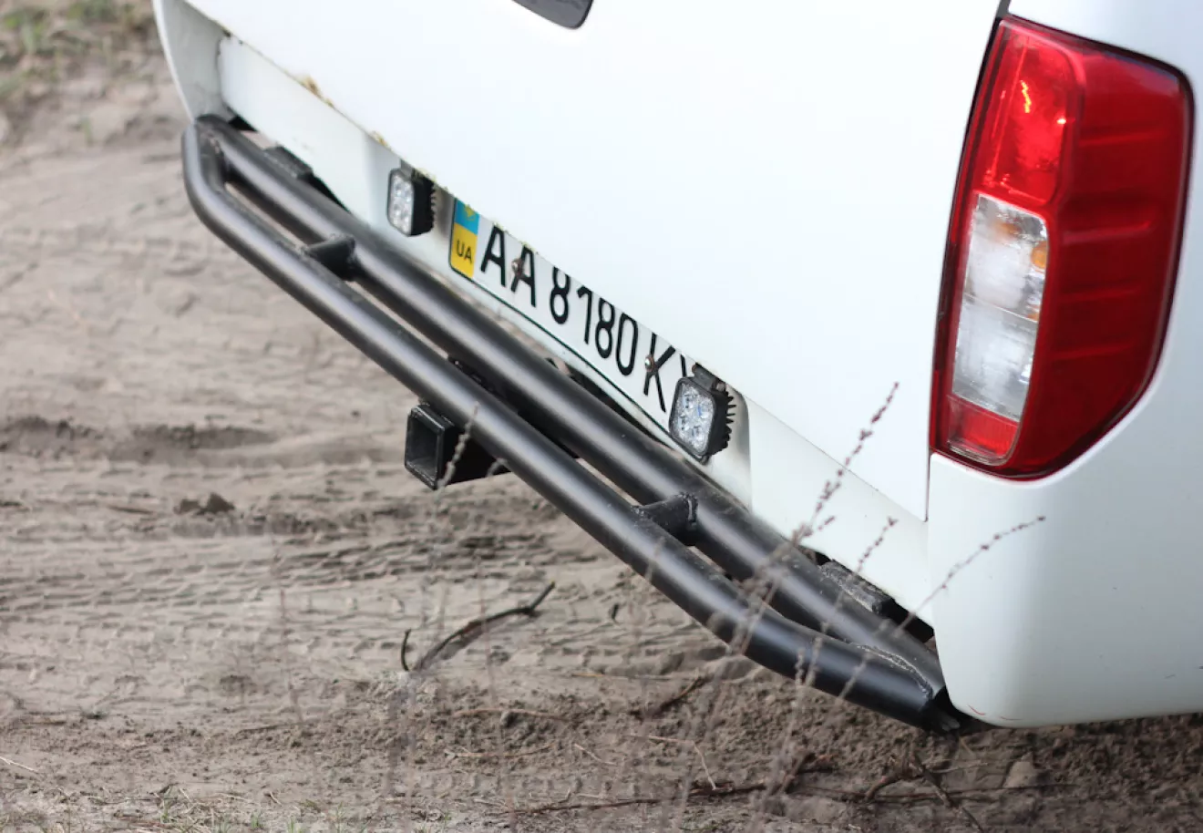 Так как по пустыне мне не носится, и длинноходной подвеской в ближайшее время обзавестись не светит, решил начать с замены заднего бампера, он у меня с момента покупки имел вид обыкновенной 60ой трубы под которой располагался штатный фаркоп, при и так довольно большом заднем свесе, под кузовом еще сантиметров на 15 свисало прицепное, которым я постоянно садился и зарывался, планировалось использовать так же одиночную трубу только поднять ее выше и вместо штатного сделать прицепное под американский квадрат, который к слову мне так и не удалось найти, и его так же я сварил сам