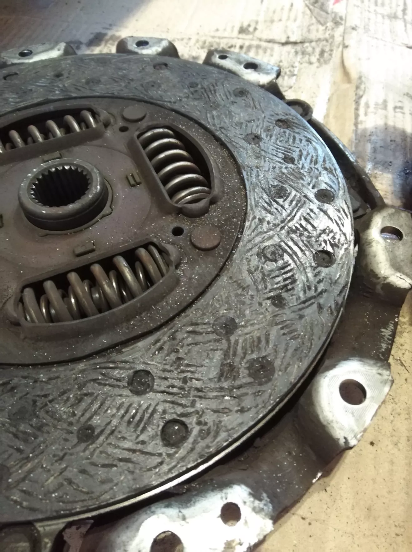 Диск сцепления. Номера не совпадают, внешний осмотр не показал каких либо различий. Хотя все по размерам все сходится, 250мм наружный диаметр и 45мм ширина накладки, больше нечего замерить не удалось. На самом диске не написано ничего.