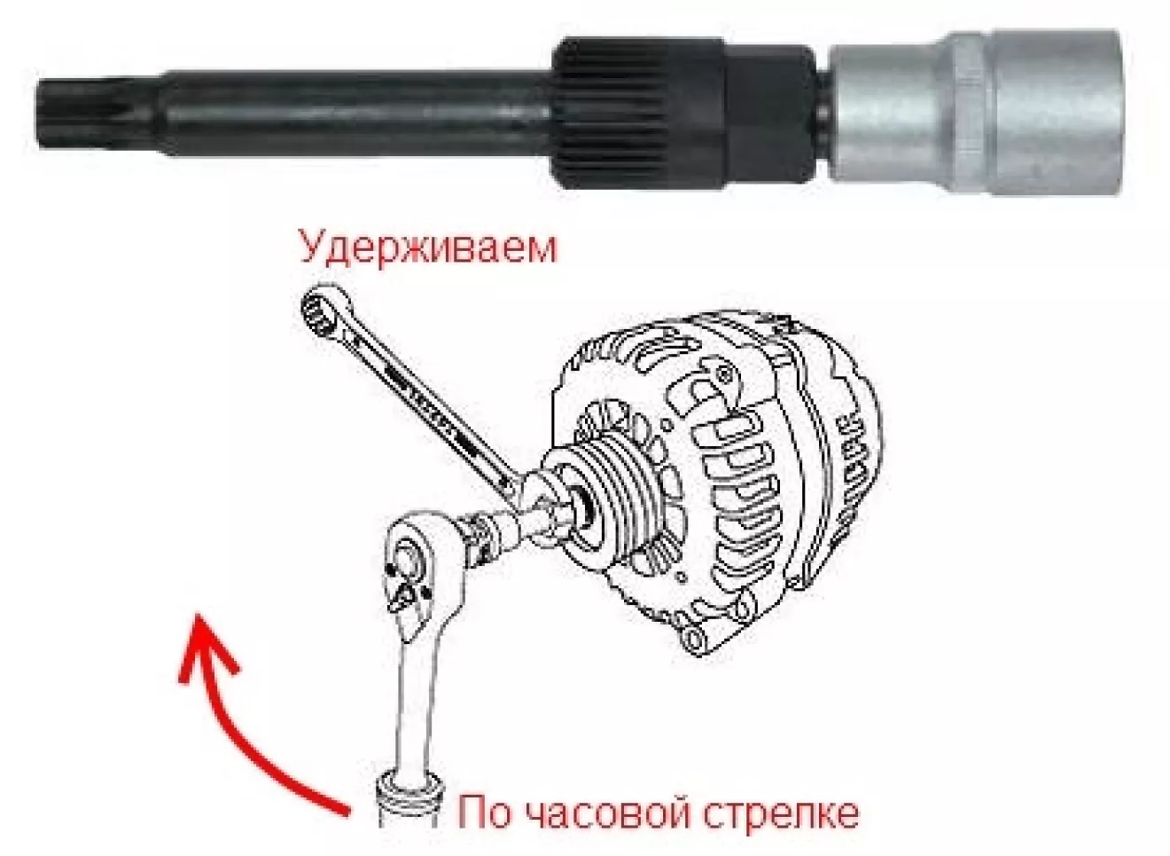 — ослабил ремень генератора и скинул ремень со шкива генератора, натяжитель под ключ накидной 14мм, ролик натяжителя ослабить тем же на 14.