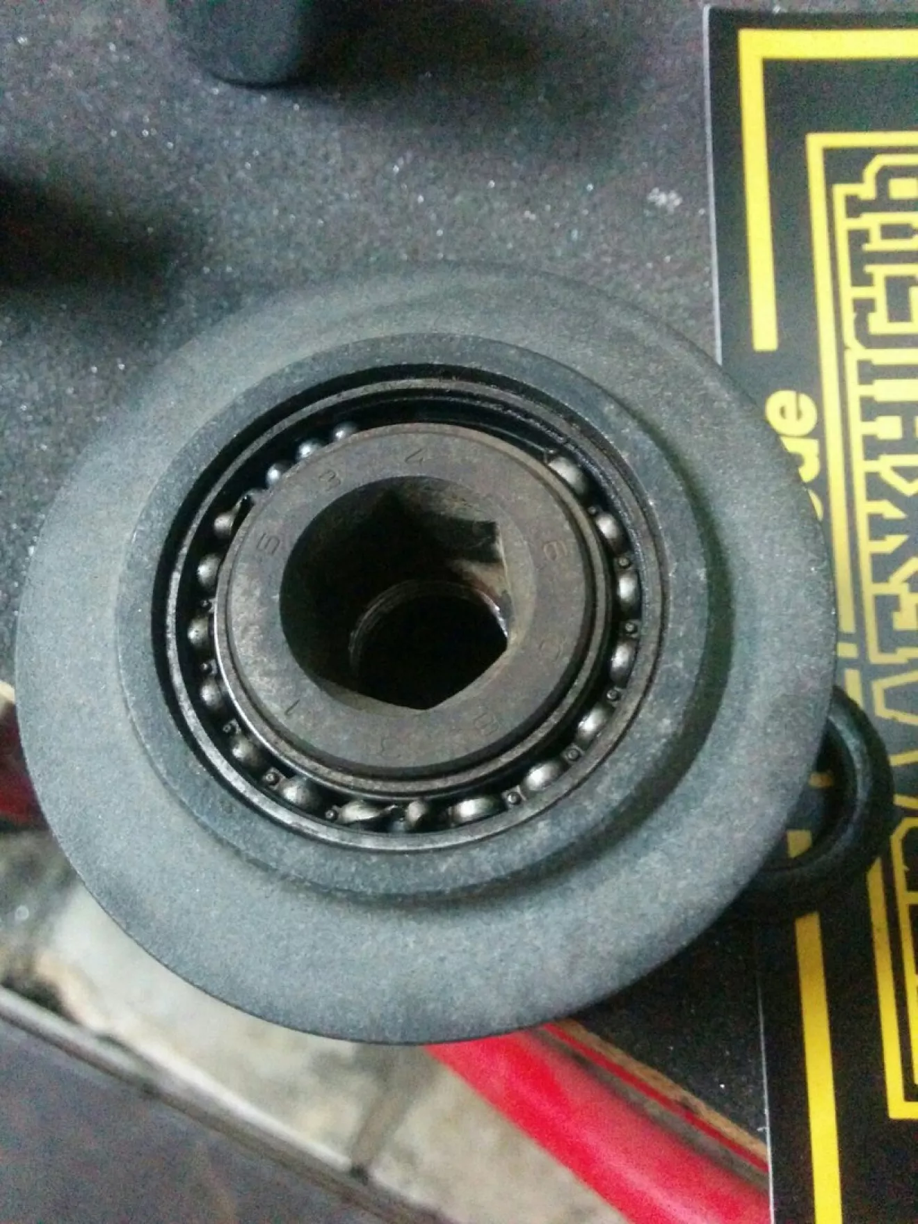 и с полтыка открутил шкив, снял шайбу с вала ( для установки муфты фирмы INA, нужно снять шайбу которая находится под старой муфтой) и таким же образом, только при помощи уже другой "спецальной" головки для обгонной муфты генератора