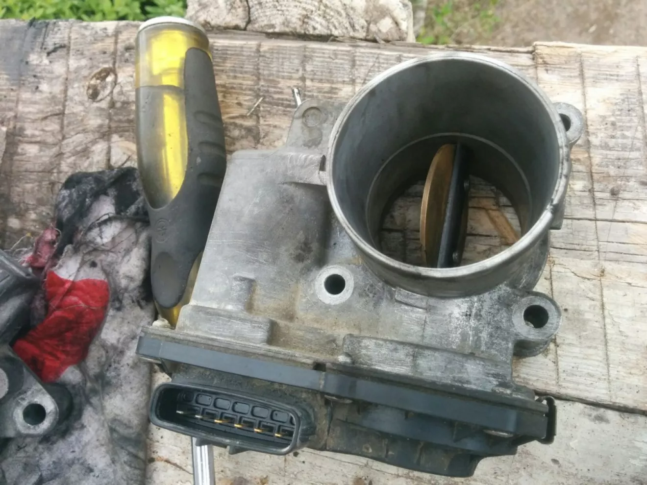 В самом клапане загрязнений было не много, по сравнению со всем остальным, почистил отложил в сторону. Тут мне под руку и дроссель попался, и его помыл за компанию.