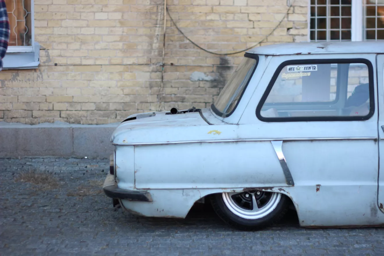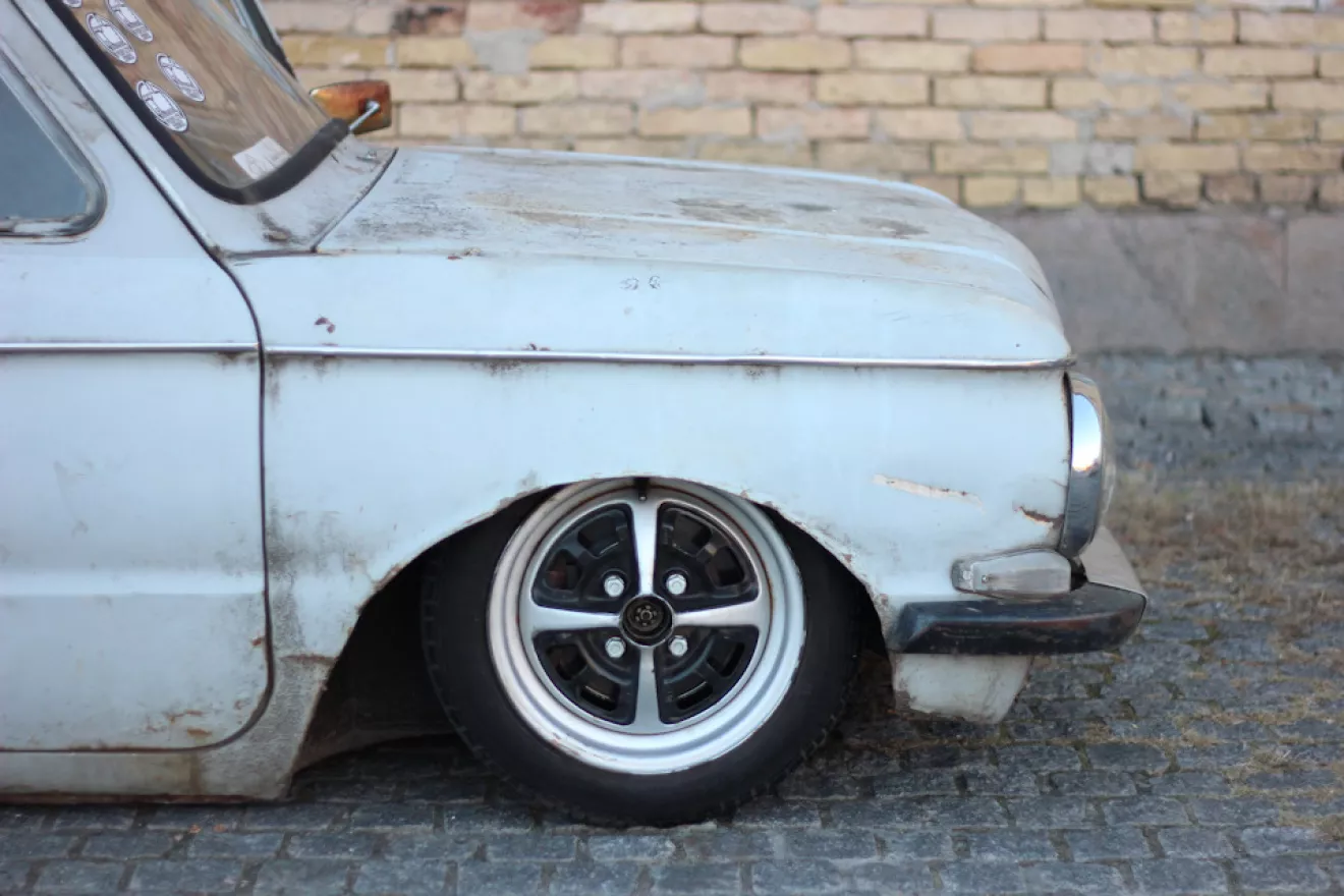 Вот такой вид приобрел "старик" после перехода на новые колеса. Диски Opel manta 13x6j Резина 135\70 r13 теперь уже вкруг. Очень просится на передок резина еще меньше.