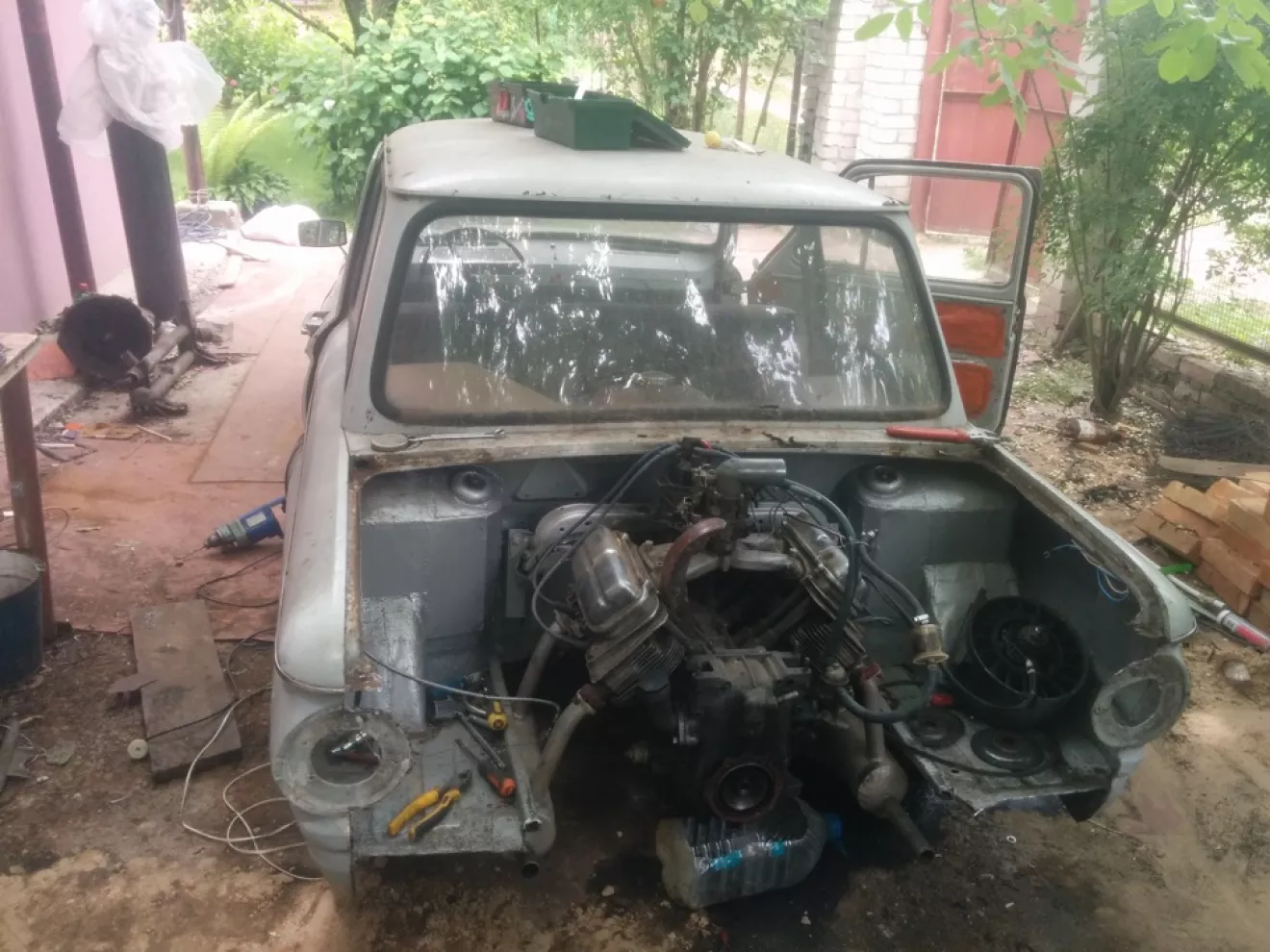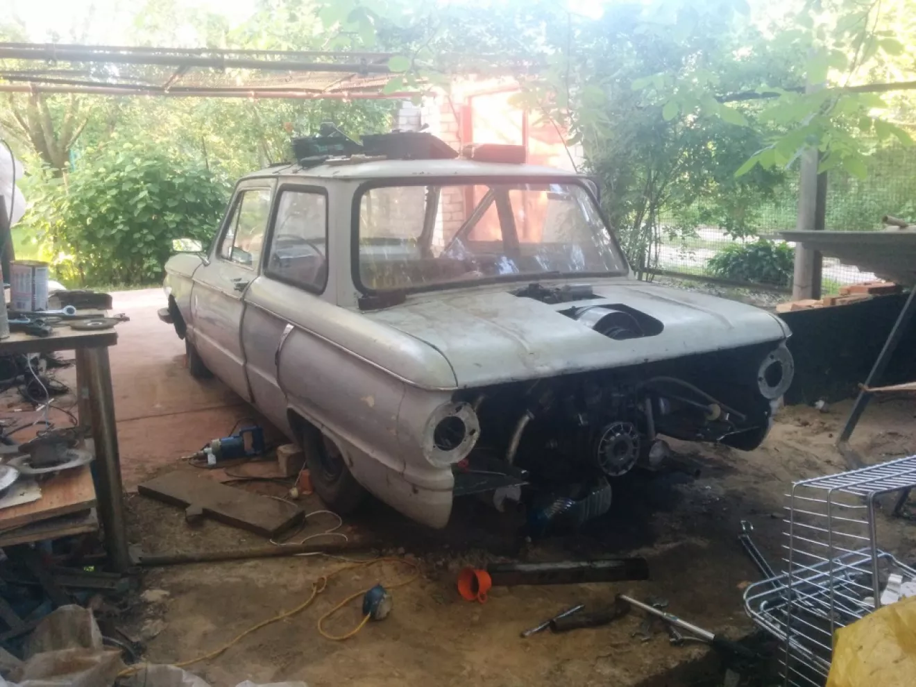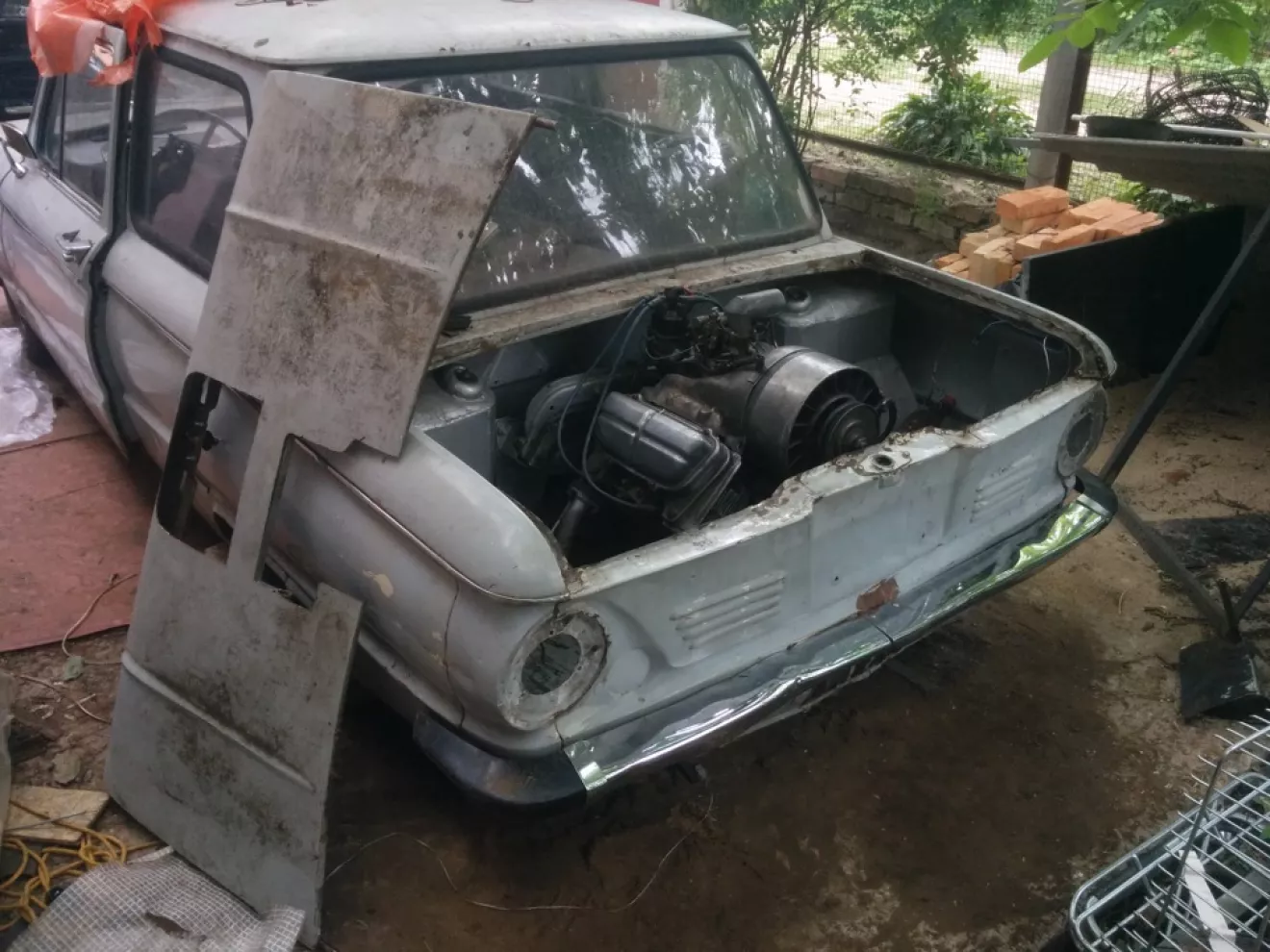 Все ЗАЗоводы рано или поздно сталкиваются с какой либо поломкой в моторном отсеке, и всех рано или поздно посещала мысль о том, насколько было бы удобнее копошится с движком не мешай этому задний фартух. Так вот, меня эта мысль посетила еще при первом демонтаже мотора, но все никак рука не подымалась. В очередной раз я прикинул, как удобно снимать мотор, чистить его, или элементарно — снять центрифугу, что и толкнуло меня на это дело. Несколько часов я мудохался пытаясь открутить маслоочиститель, после того как третий раз ключ соскочил и со всего маху я бился рукой от фартух, мне под руку попала болгарка и ювелирно вырезала кусок 44х летнего кузова (тут должны меня полить гомном комнатные реставраторы).