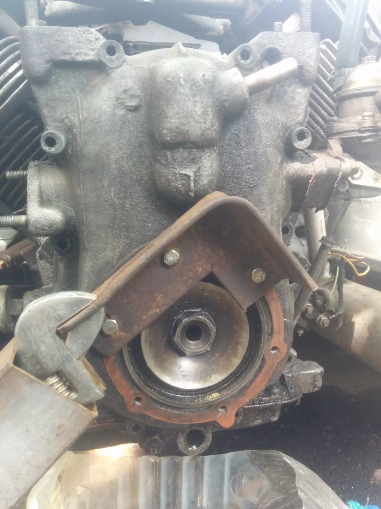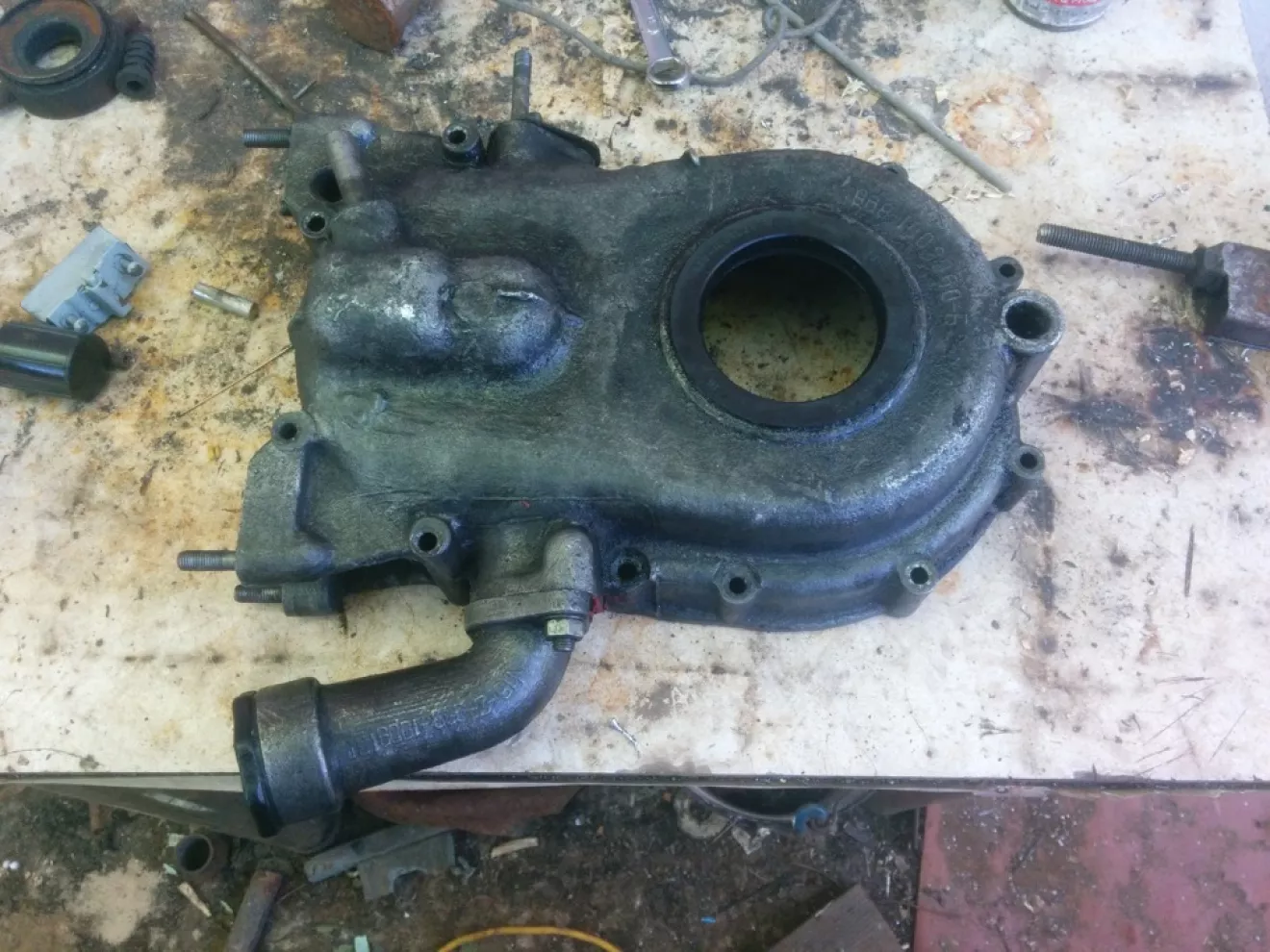 казалось бы…глупо, но сработало, я приложился и болт поддался. Откручиваем болт, снимаем корпус центрифуги с маслоотражателем. Дальше откручиваем 10 болтов (под ключ на 10) крышки шестерен (за ранее слить масло, ибо побежыт из под крышки).