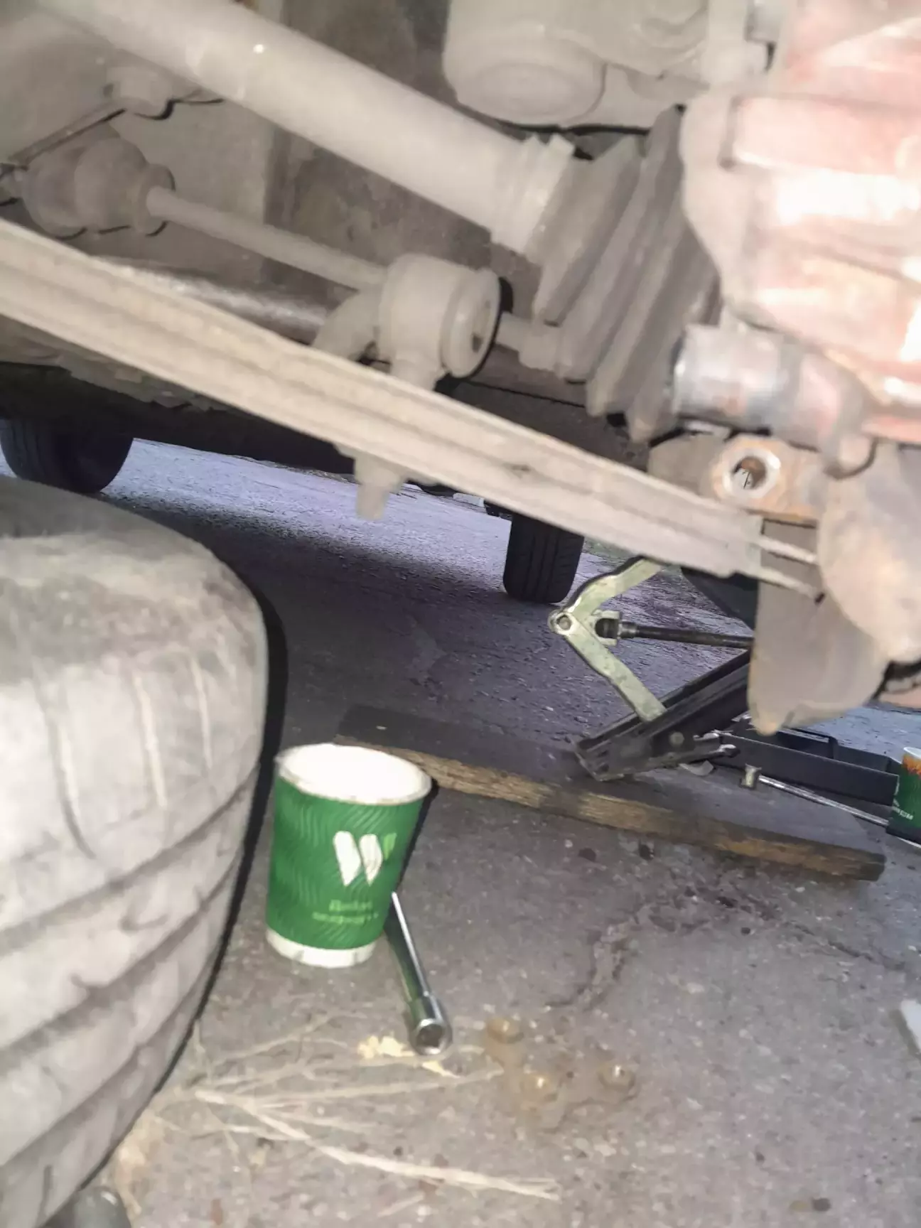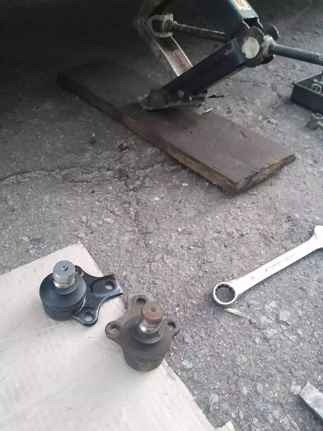 Сторонній стук в підвісці виявився мертвою шаровою. Для заміни від'єднати рульвий накінечник, відкрутити три нижні болтика і верхній.