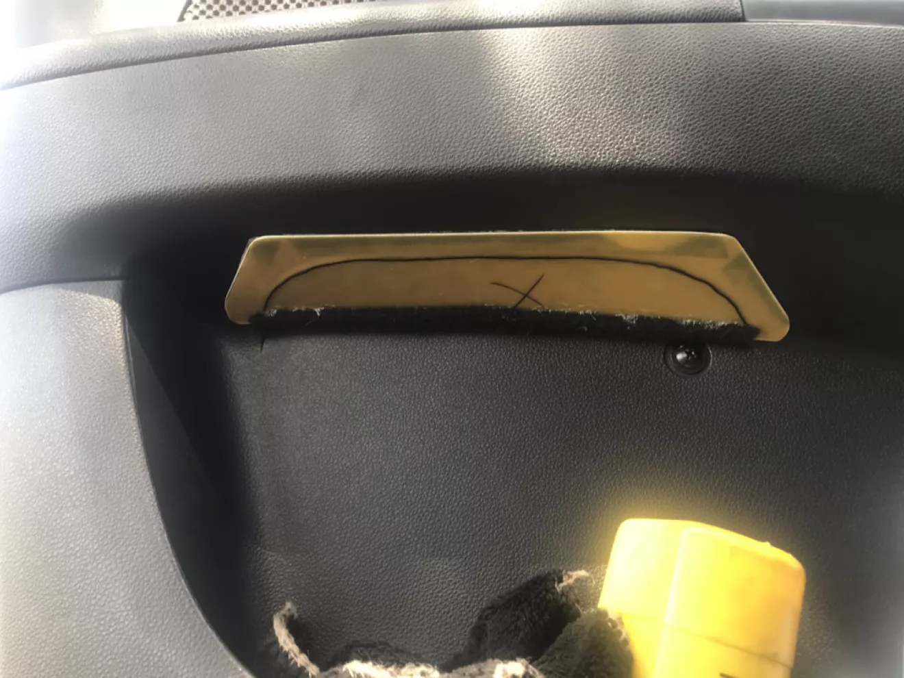 Когда-то на просторах Алиэкспресс находил вставки в ручки дверей превращающие оные в карман, но цена за четыре пластмасски душила жаба. А вещь удобная, во многих машинах ручки имеют дно. Мой шеф катаясь на Лексусе к этому привык и садясь ко мне закинул по привычке туда своё яблоко, а оно бац и в нишу двери. И решил я, что-то сделать. Взял тонкий пластик 1мм, чтобы легко гнулся (взял в огромном количестве у меня на работе Стэф). Внутреннюю часть по форме проема наклеил карпет, а по краям ЗМовский скотч акриловый (💪). Результат на фото.
