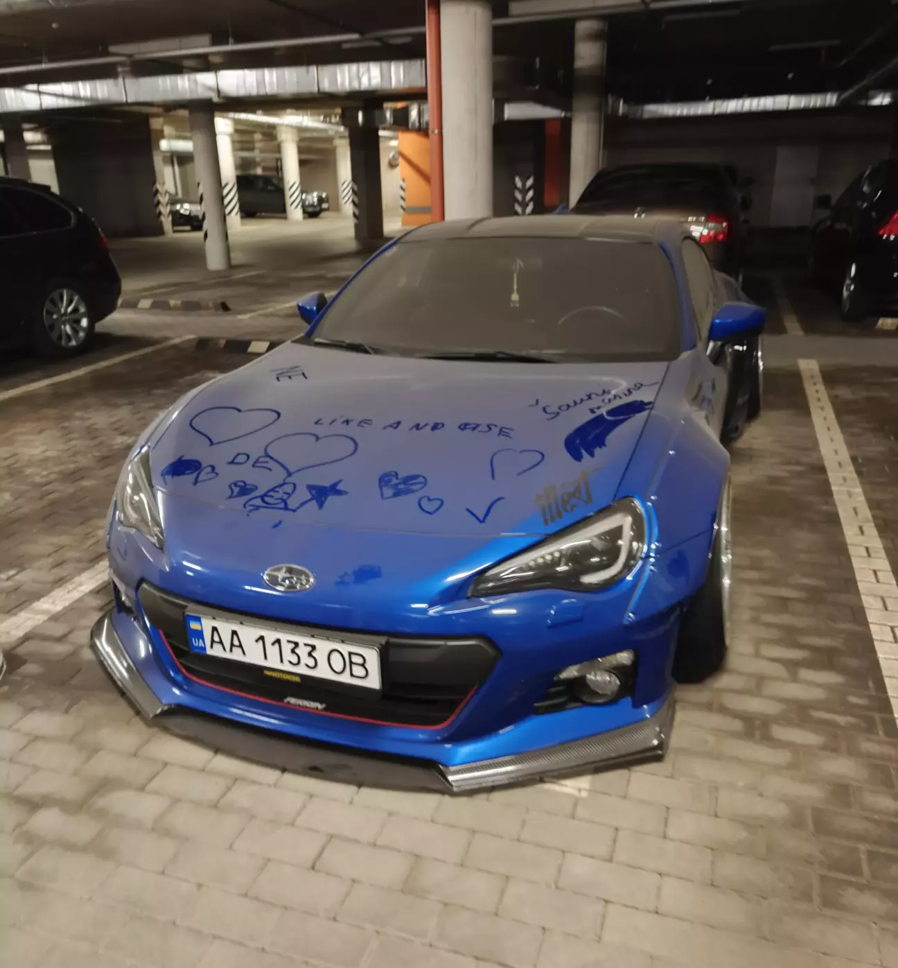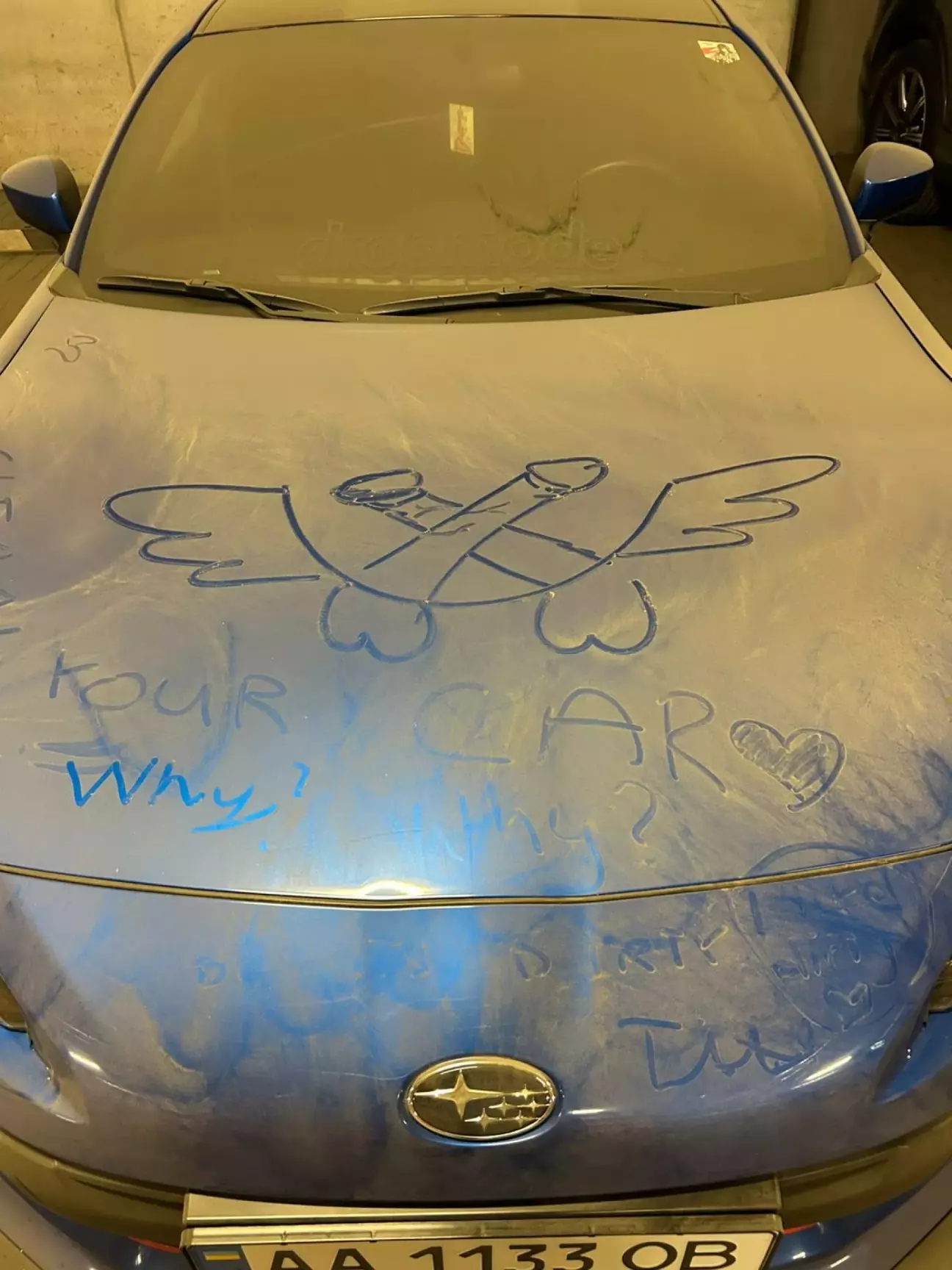 А от більш визиваючий малюнок залишили 2 прибиральники паркінгу, за що їх було звинувачено та все це виставлено у групі власників паркомісць. Чим для них це повернулось я не знаю якщо чесно.