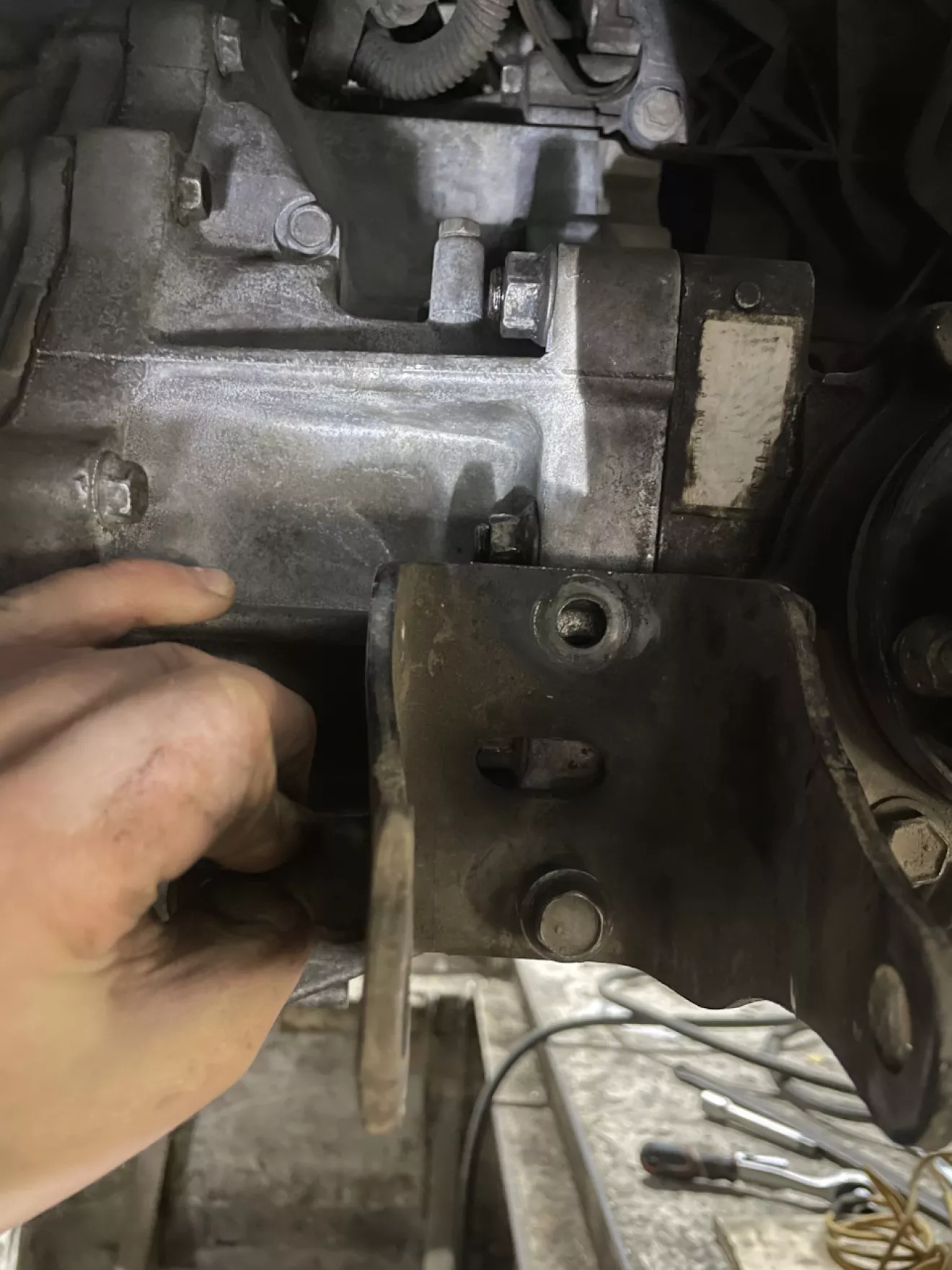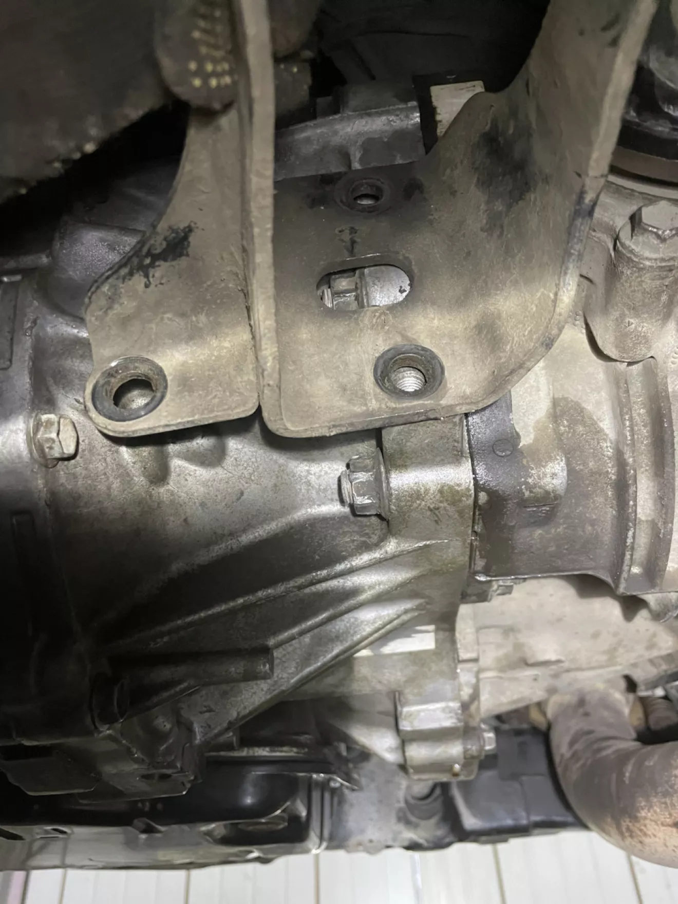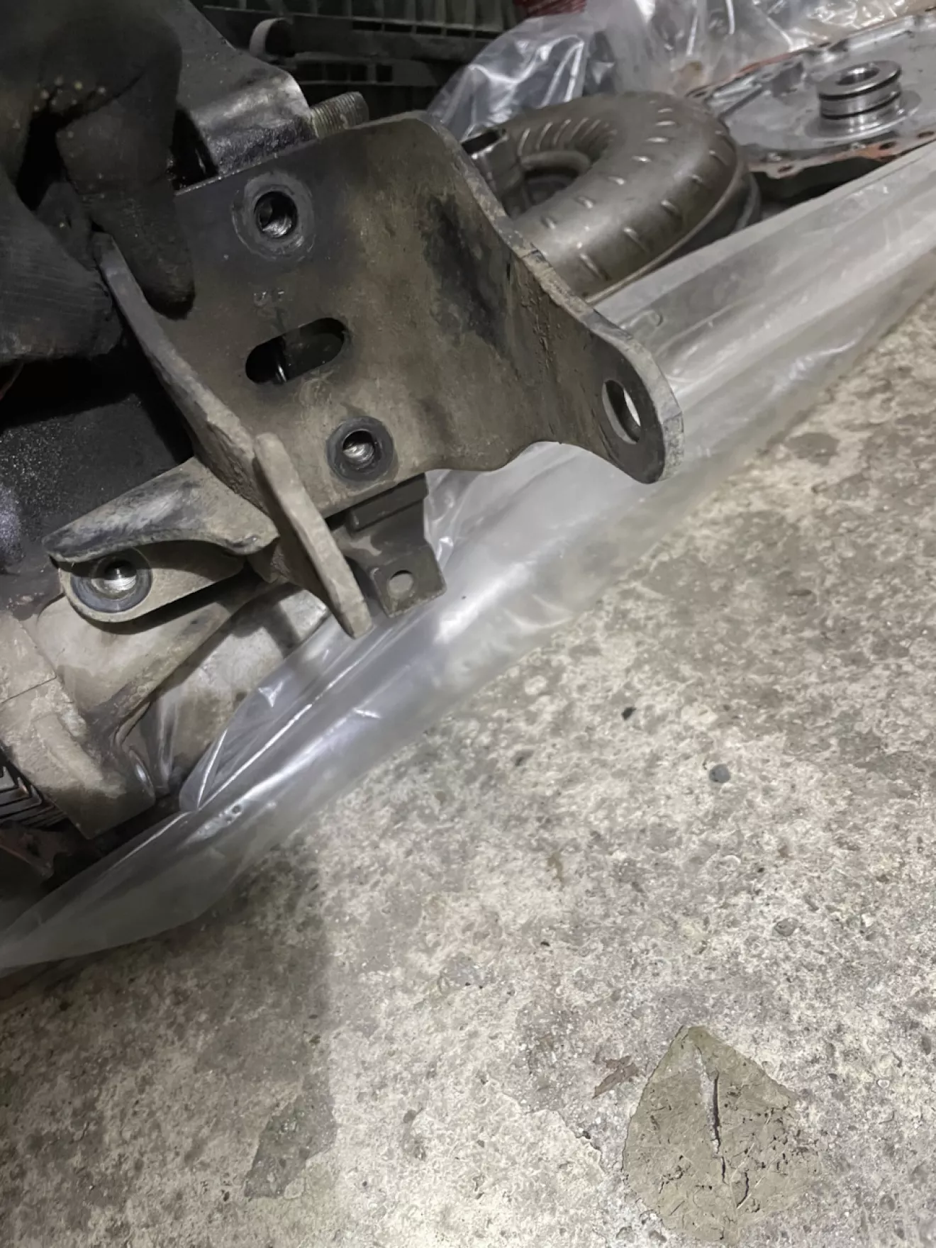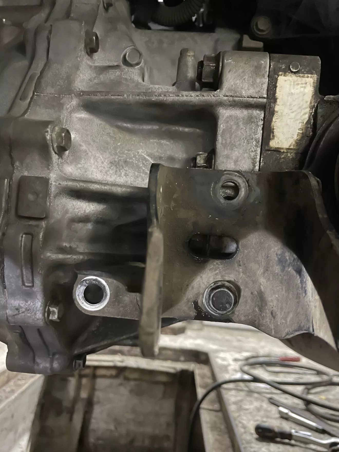 Короче. Когда дело дошло до задней опоры, я заметил то — что кронштейн подушки не подходит по отверстиям на колоколе, на АКПП с 2,4.