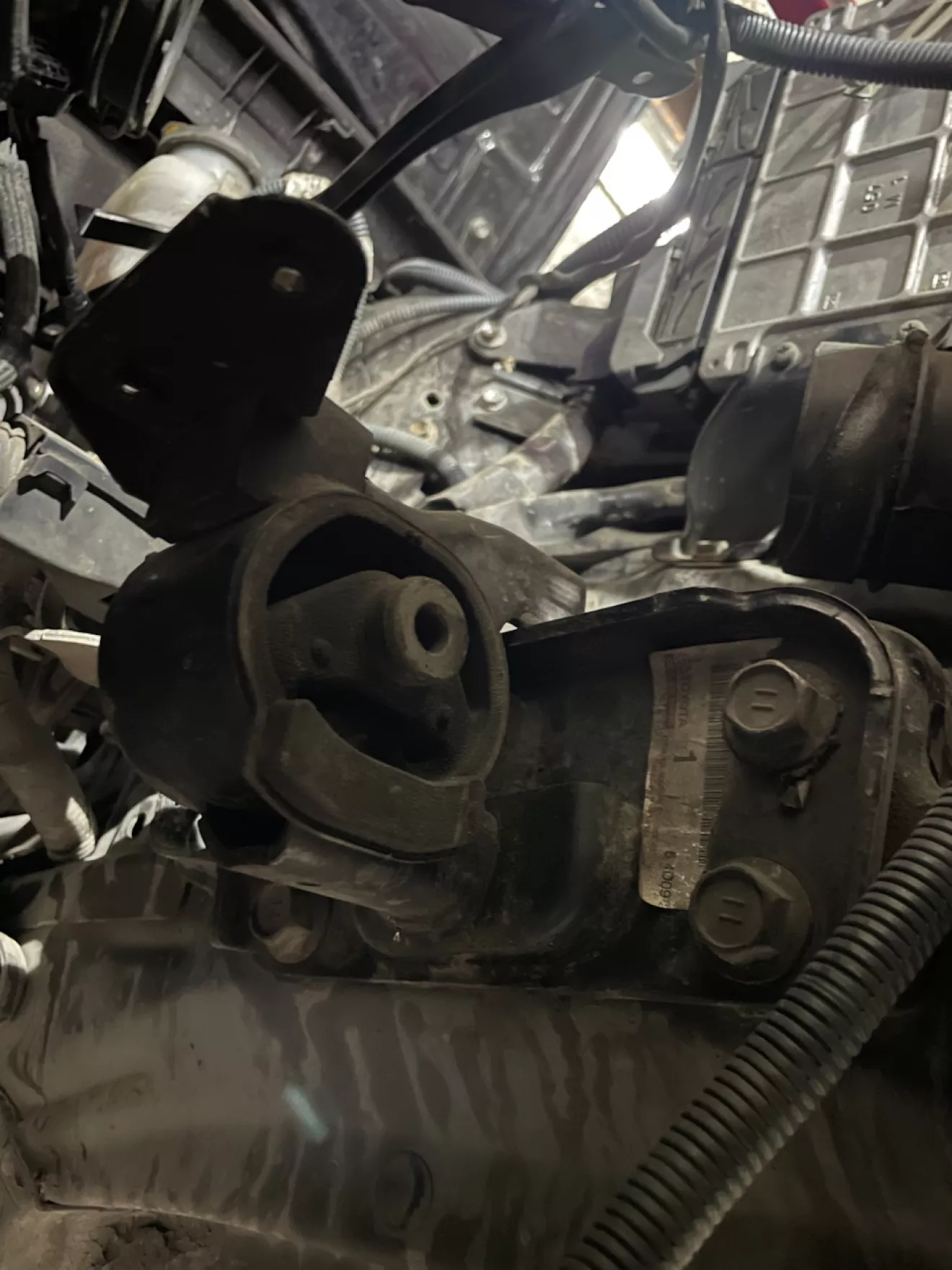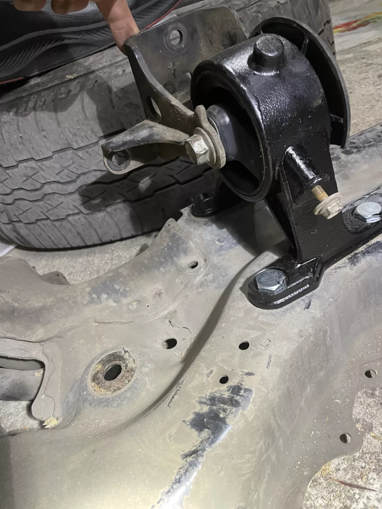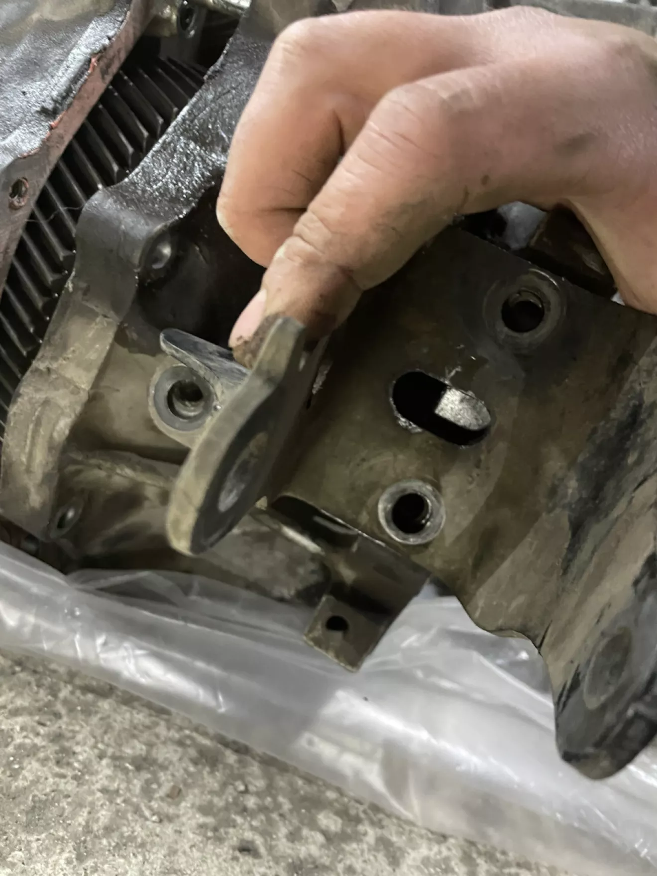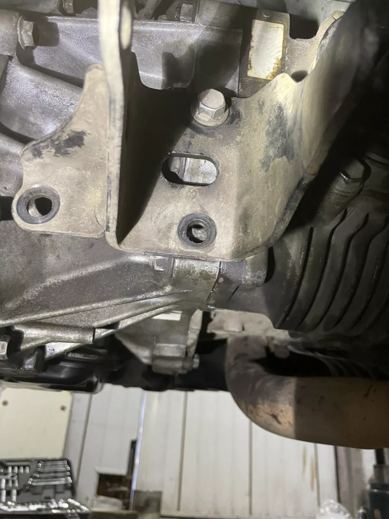 Короче. Когда дело дошло до задней опоры, я заметил то — что кронштейн подушки не подходит по отверстиям на колоколе, на АКПП с 2,4.