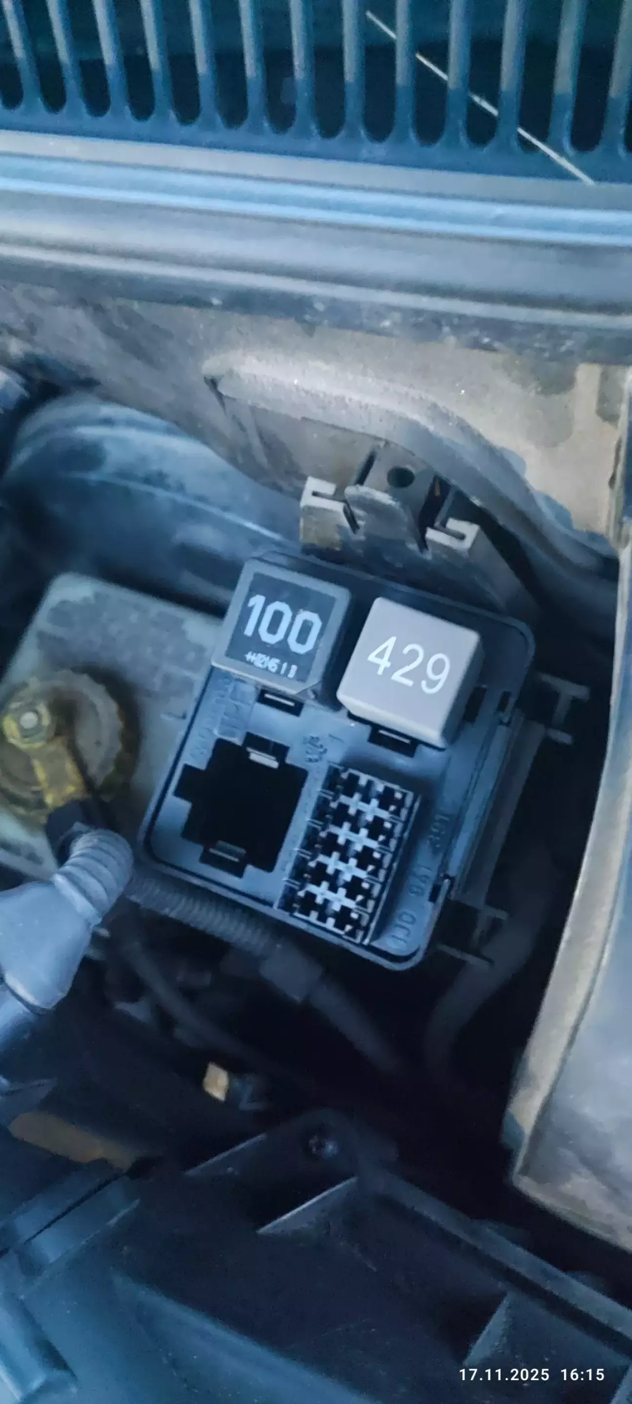 Прийшло реле, пішов ставить в авто. Для тих, хто не в курсі, це реле встановлено в чорній коробочці, яка закріплена на моторному щиту біля ВПТ. Відкриваю я її - і о боже, там стоїть 429 реле 😵💫😵💫😵💫. What a fuck.... Закриваю кришку назад, замовляю 429 реле, а це повертаю назад.