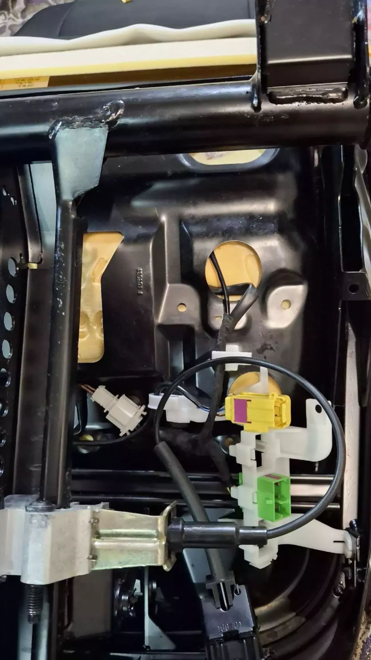 На фото видно мою ідею монтаж. Але все ж поясню: відстебнути обшивку сидінь на стику спинки та нижньої частини, відстібнути першу пластикову паличку на низу, далі просто запихнути рукою підігрів до середини сидіння до другої армуючої палички. Відповідно точно те ж саме роблю із спинкою, там навіть простіше, лише розстебнути стик обшивки внизу спинку і запихнути мат на своє місце. Це справедливо лише для сидінь як у мене, велюр та шкіра в прольоті, там без майже повного зняття обшивки не вийде.