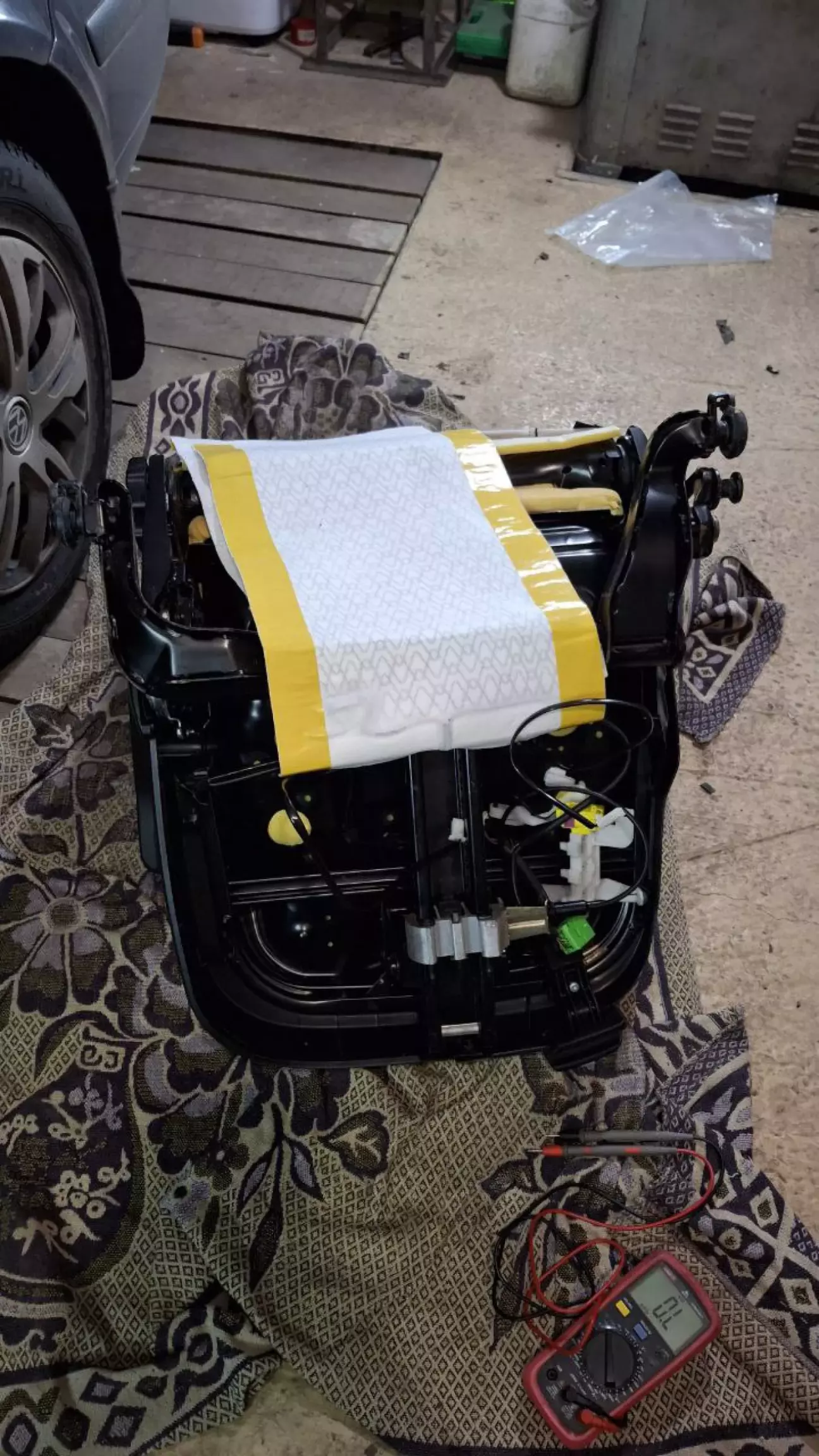 Далі приступив до спарювання нових матів та проводки сидіння: